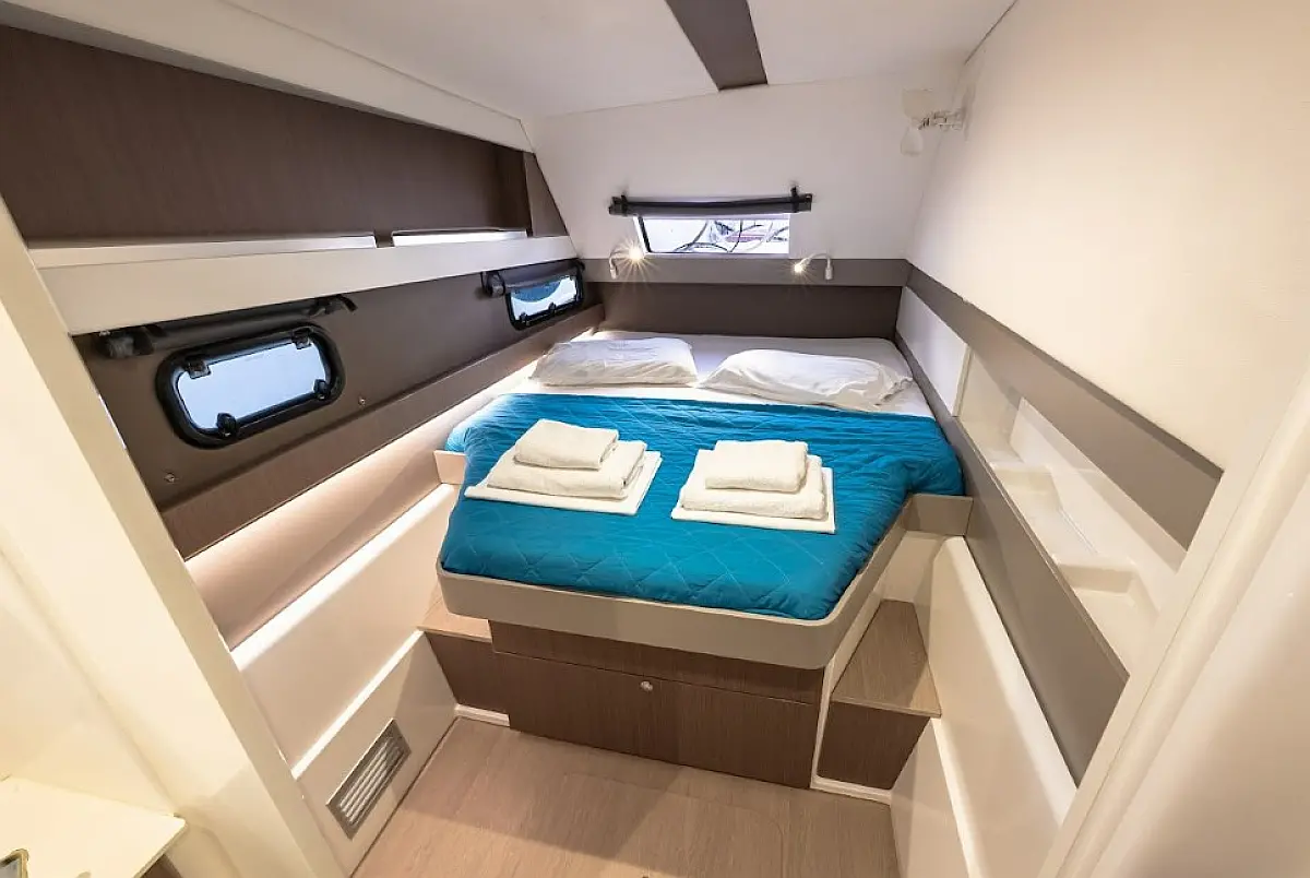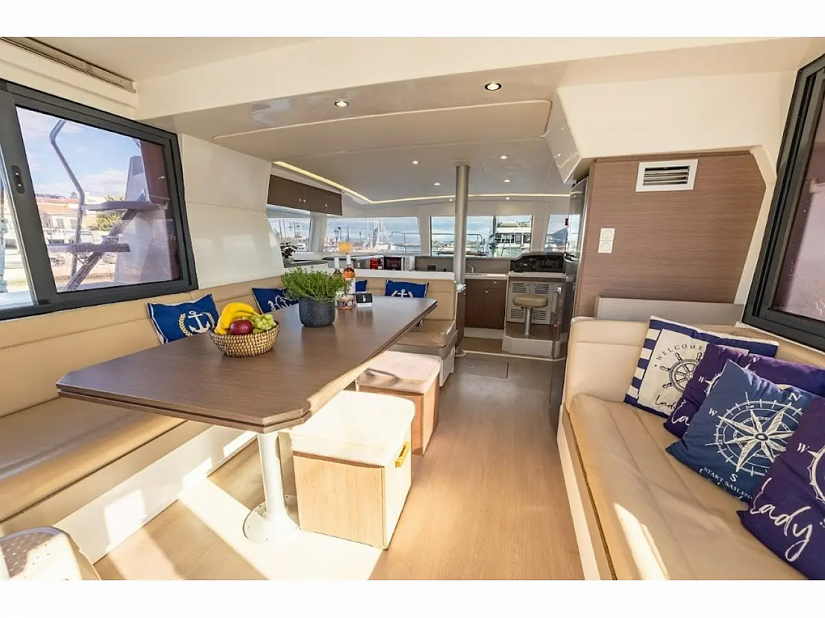 Skipper (+Provisions(provided by clients or payable as an extra 30€/day) Payable on spot in cash only.Damage waiver obligatory to be added on skippered charters)