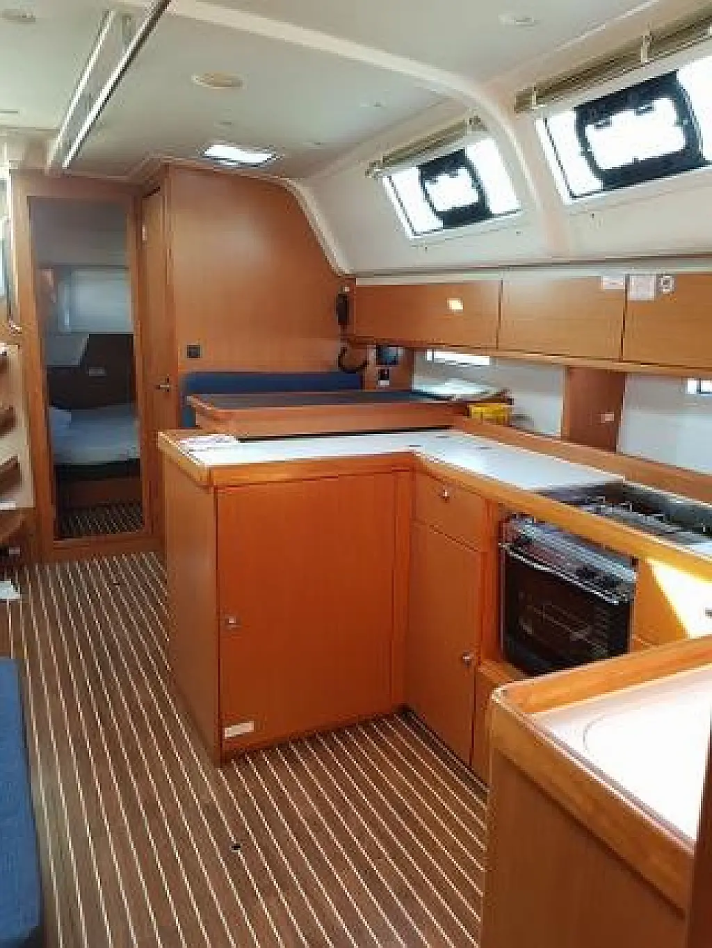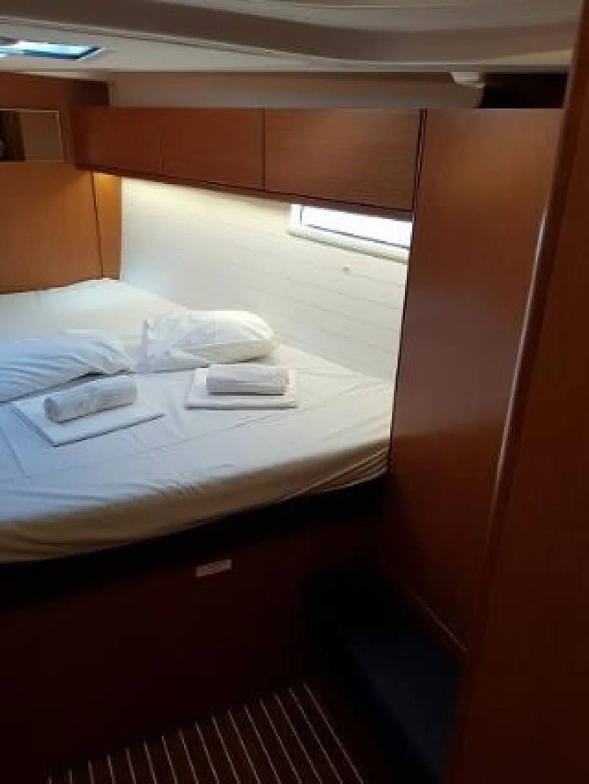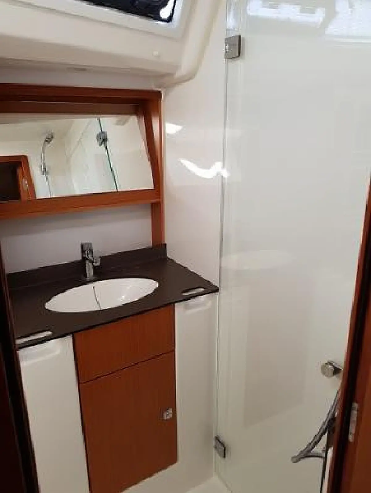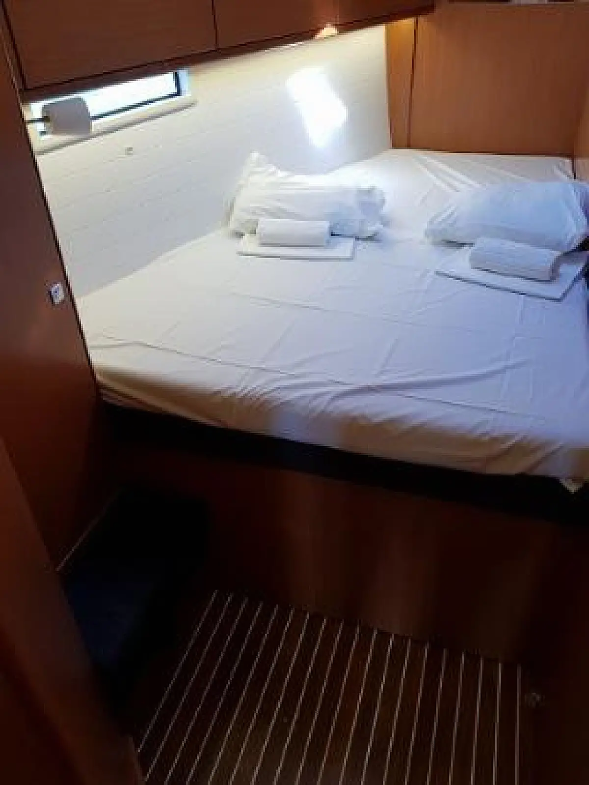 Bimini , Swimming platform , Sprayhood , Teak Cockpit , Dinghy , Outboard engine , Cockpit cushions , Refrigerator , Cockpit speakers , Wi-Fi & Internet , Solar Panels , Heating