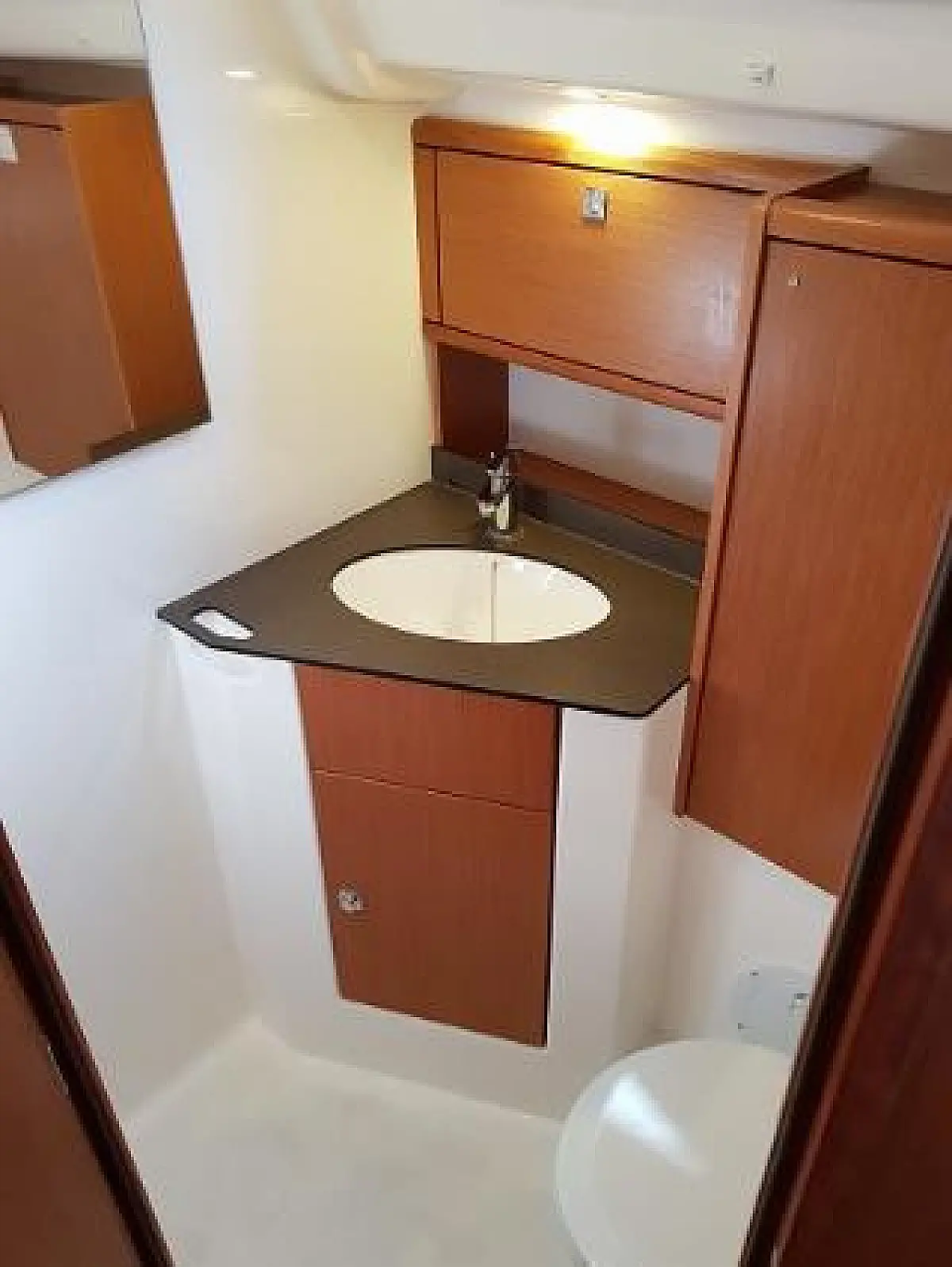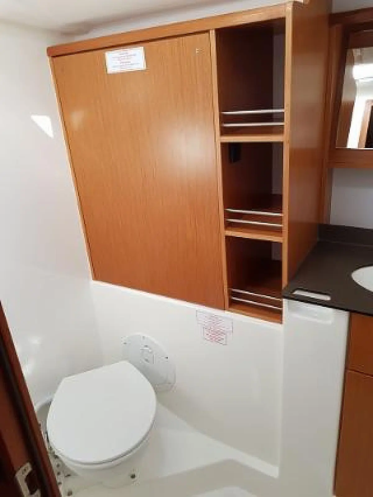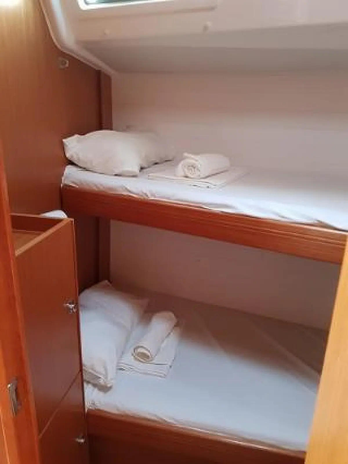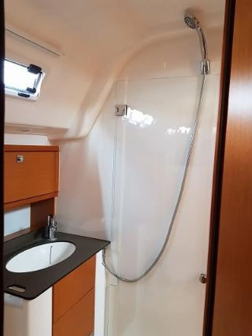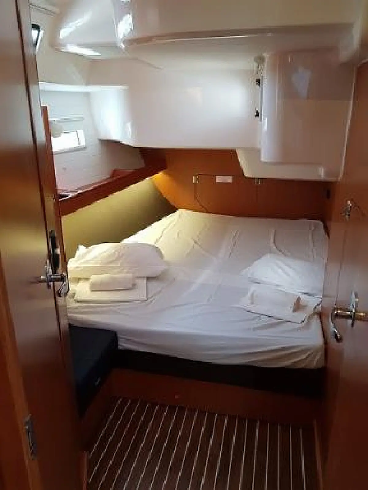Bimini , Swimming platform , Sprayhood , Teak Cockpit , Dinghy , Outboard engine , Cockpit cushions , Refrigerator , Cockpit speakers , Wi-Fi & Internet , Solar Panels , Heating