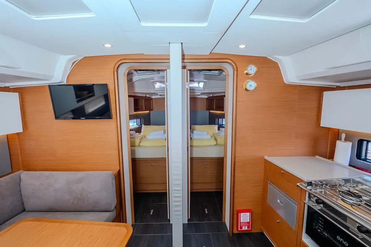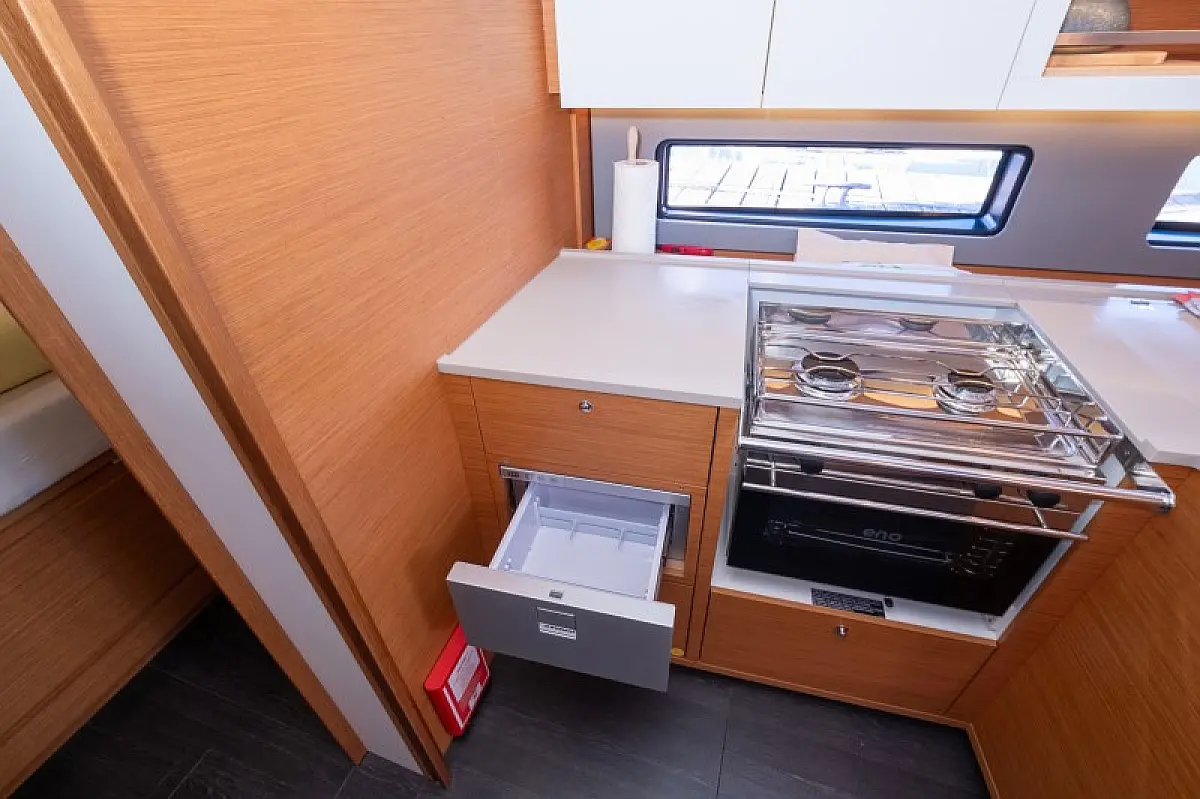 Barbecue grill in cockpit , Refrigerator , Cockpit cushions , Sprayhood , Outboard engine , Dinghy , Wi-Fi & Internet