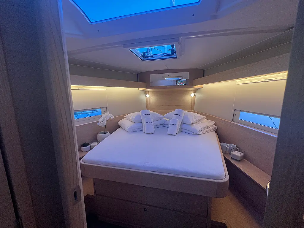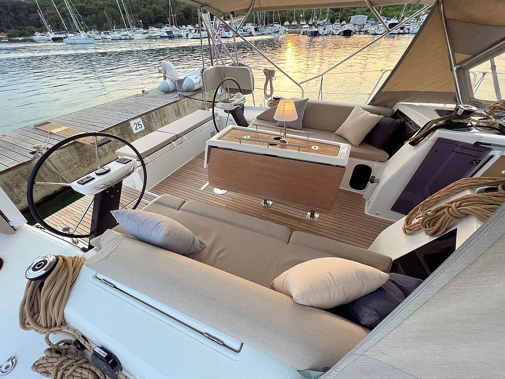 Cockpit speakers , Holding tank , Bimini , Cockpit cushions , Barbecue grill in cockpit , Dinghy , Sprayhood , Teak Cockpit , Coffee maker , Refrigerator , Heating , Solar Panels