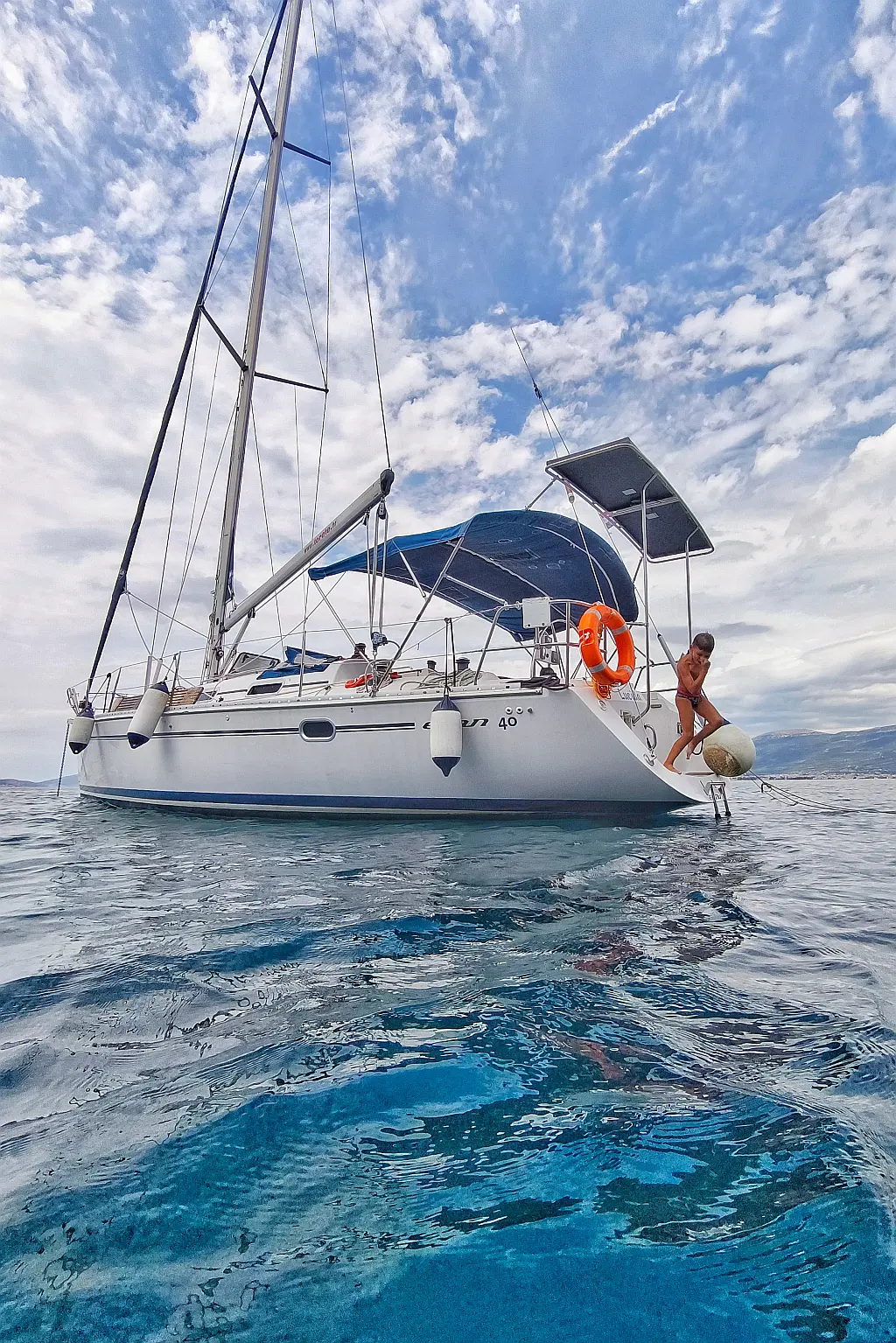 Outboard engine , Bimini , Swimming platform , Refrigerator , Solar Panels , Dinghy