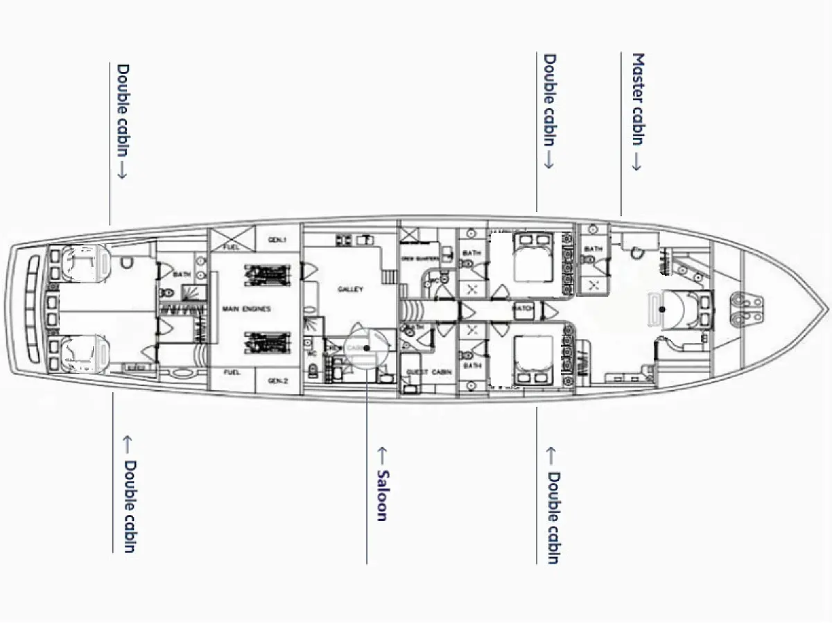 Generator , Air condition , Wi-Fi & Internet , Teak deck , Dinghy