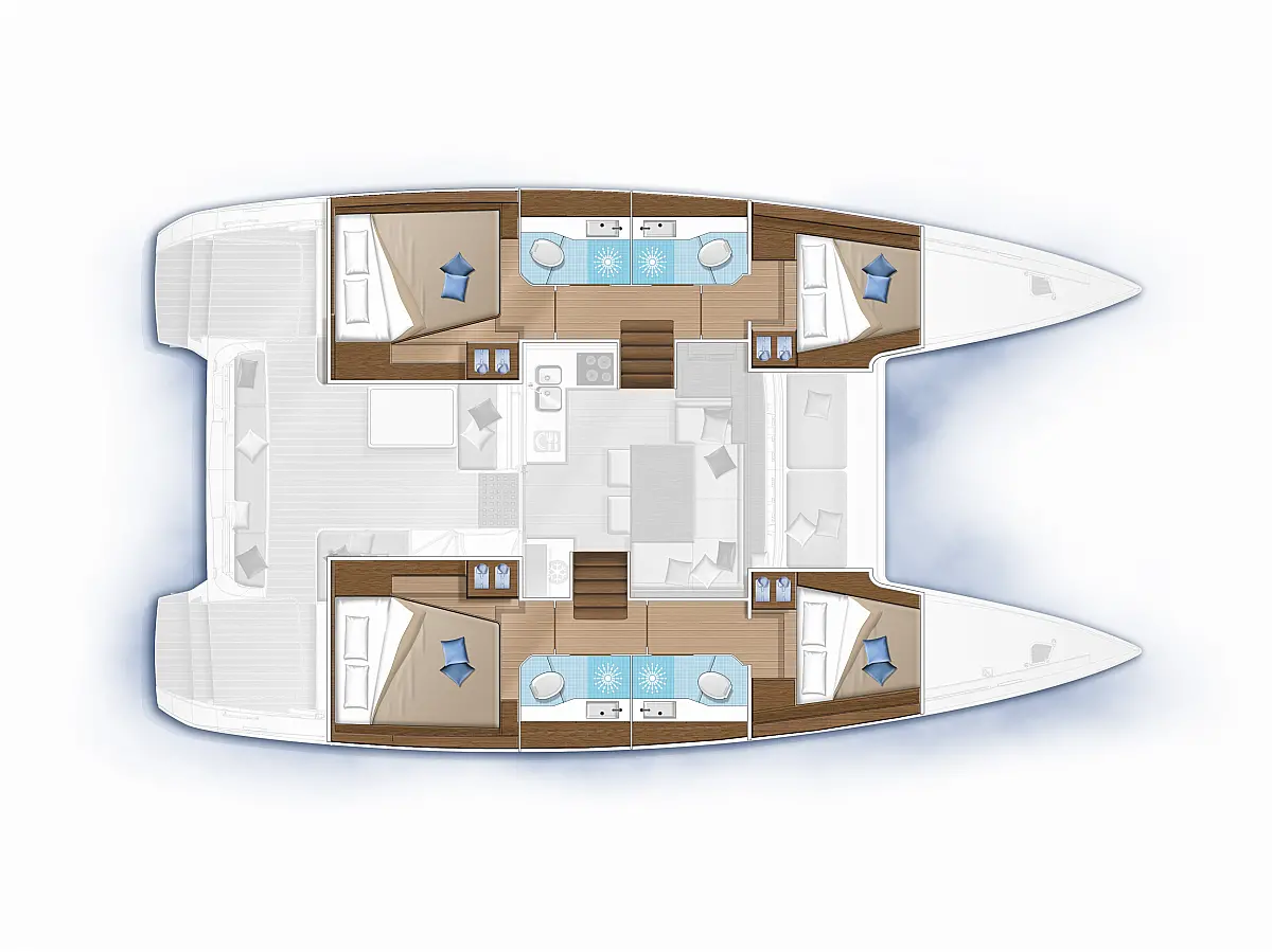 Air condition , Wi-Fi & Internet , Bimini , Electric winches , Sprayhood , Teak Cockpit , Ice maker , Generator , Outboard engine , Dinghy