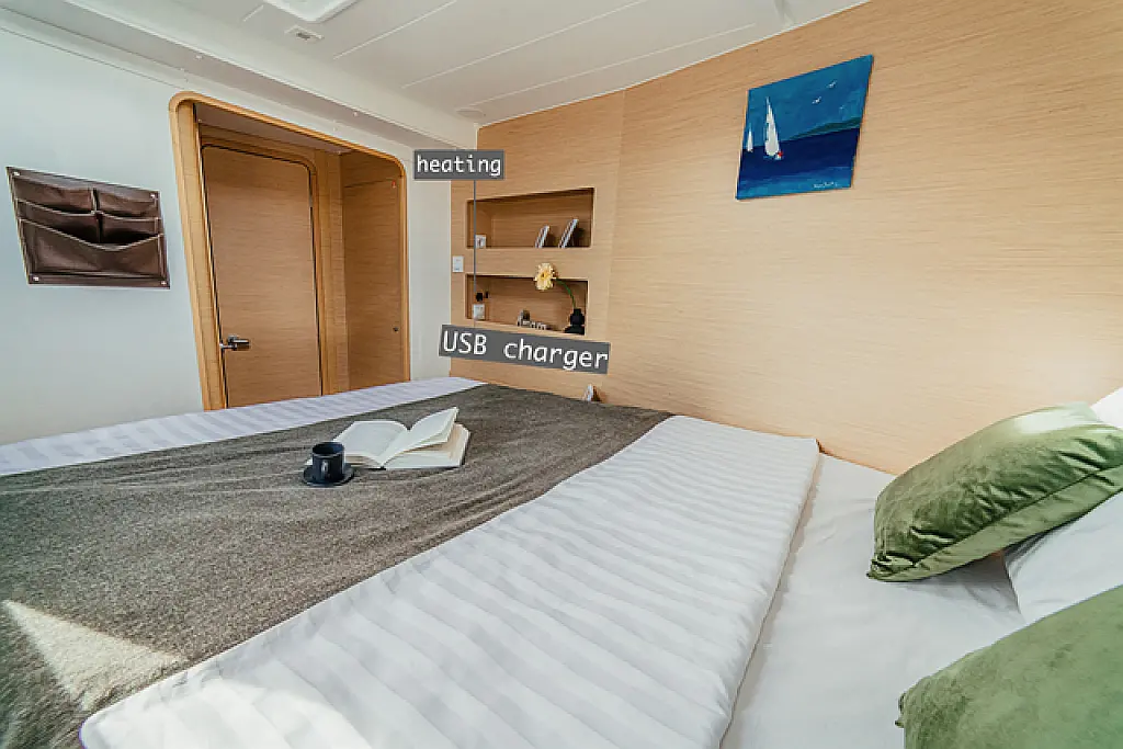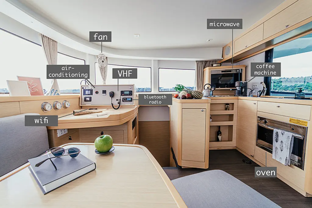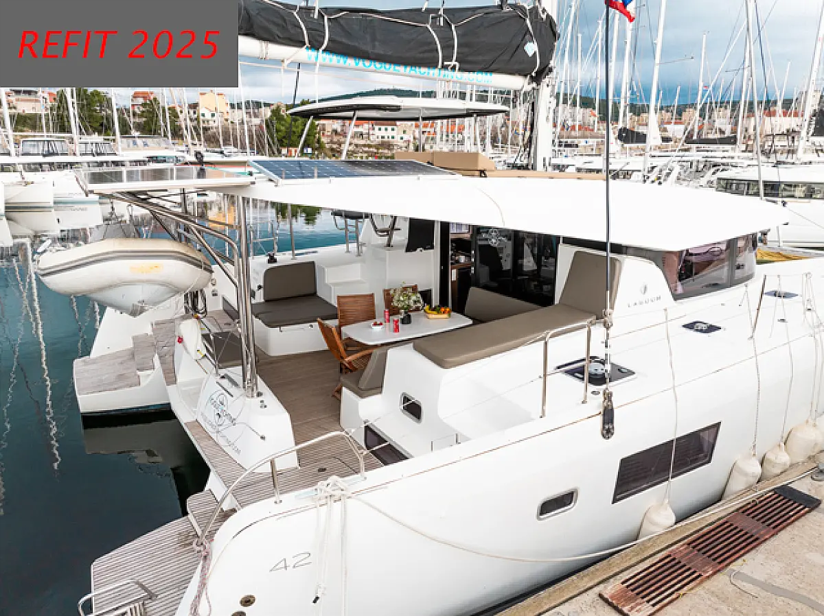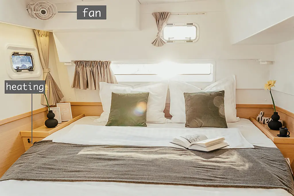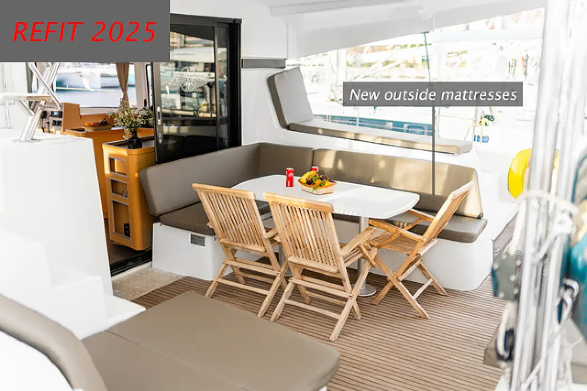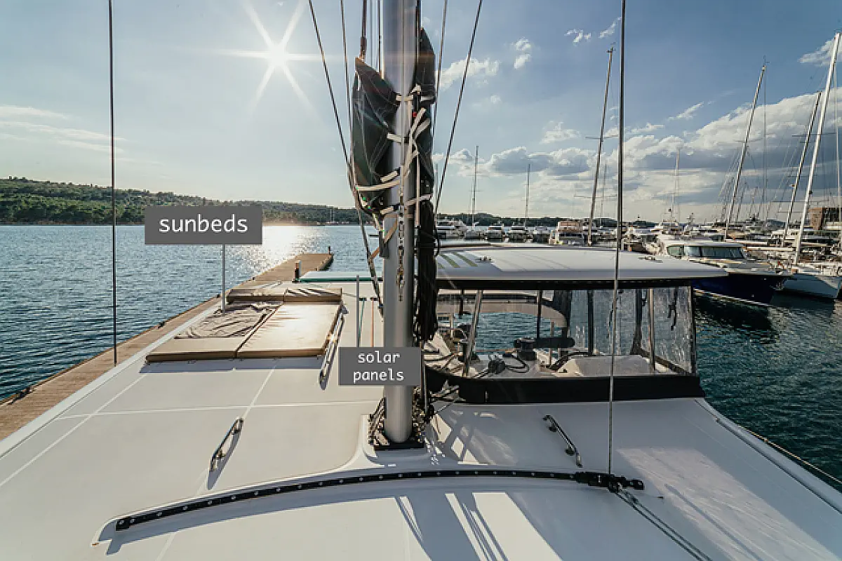 Air condition , Coffee maker , Cockpit cushions , Dinghy , Electric winches , Electric toilet , Ice maker , Holding tank , Inverter , Bimini , Solar Panels , Sprayhood , Teak Cockpit , Heating