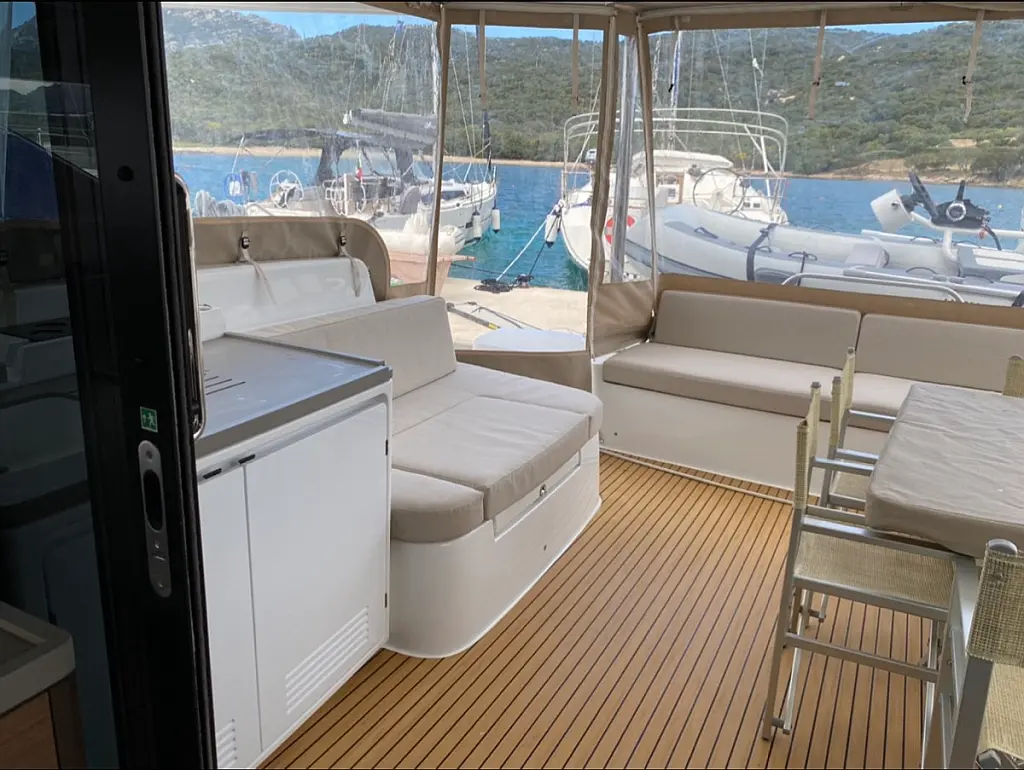 Cockpit cushions , Cockpit speakers , Coffee maker , Inverter , Outboard engine , Generator , Sprayhood , Teak Cockpit , Refrigerator , Bimini , Electric toilet , Air condition , Water maker , Hydraulic gangway