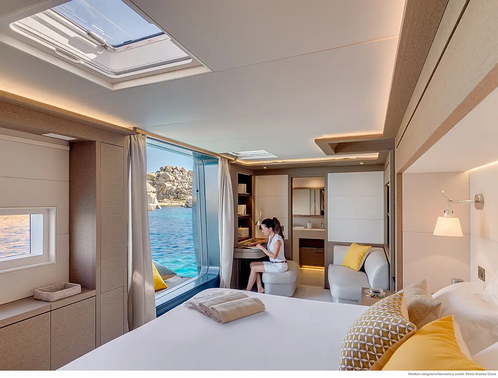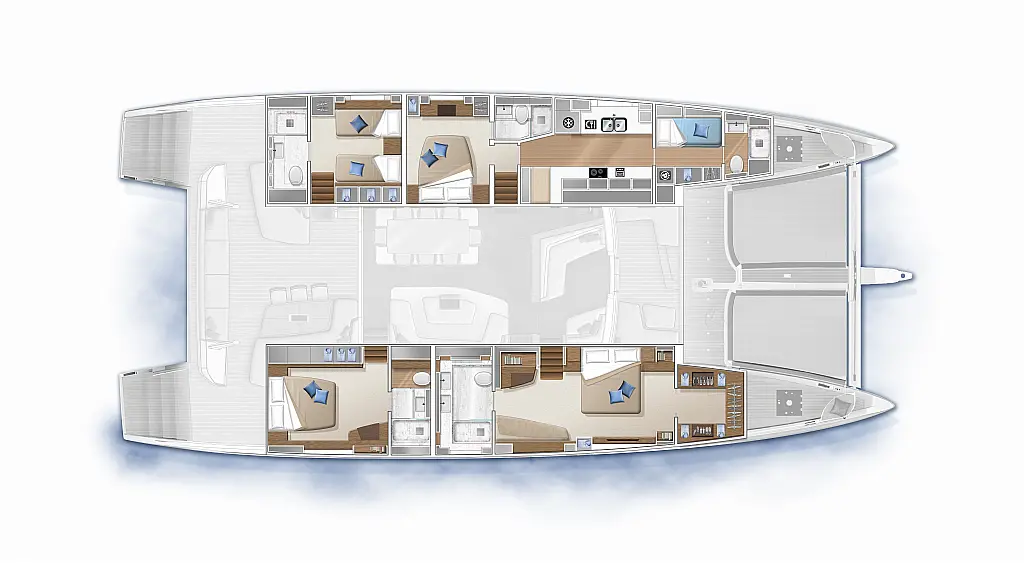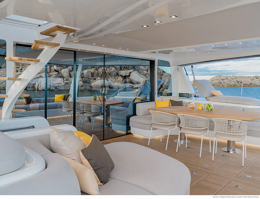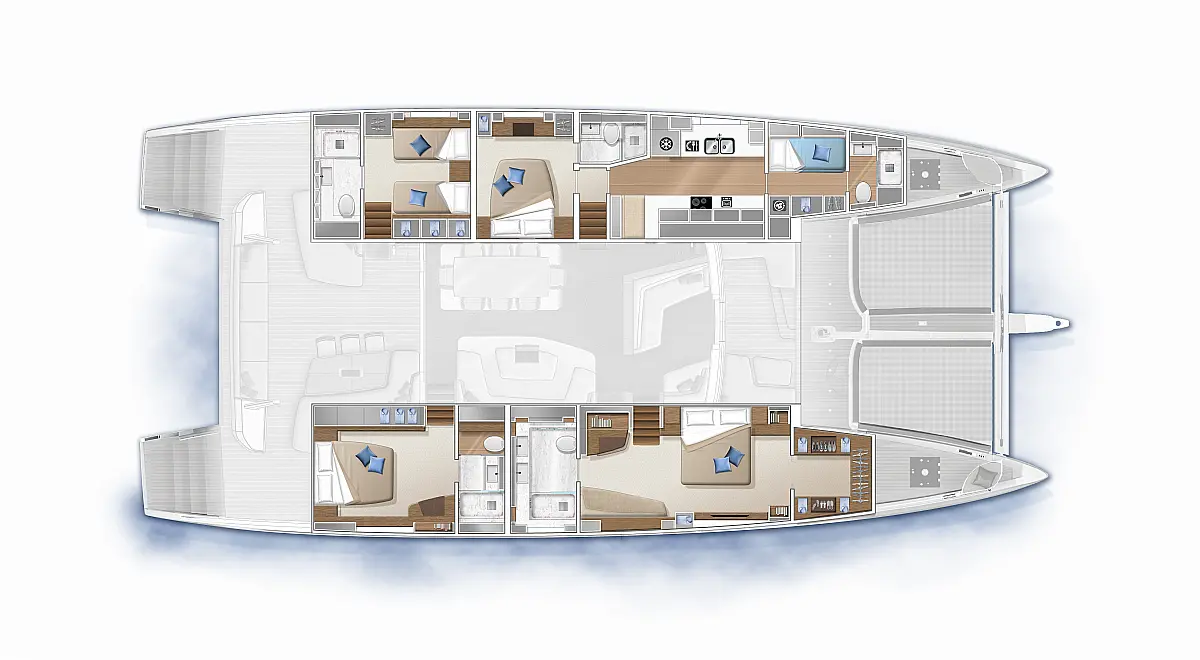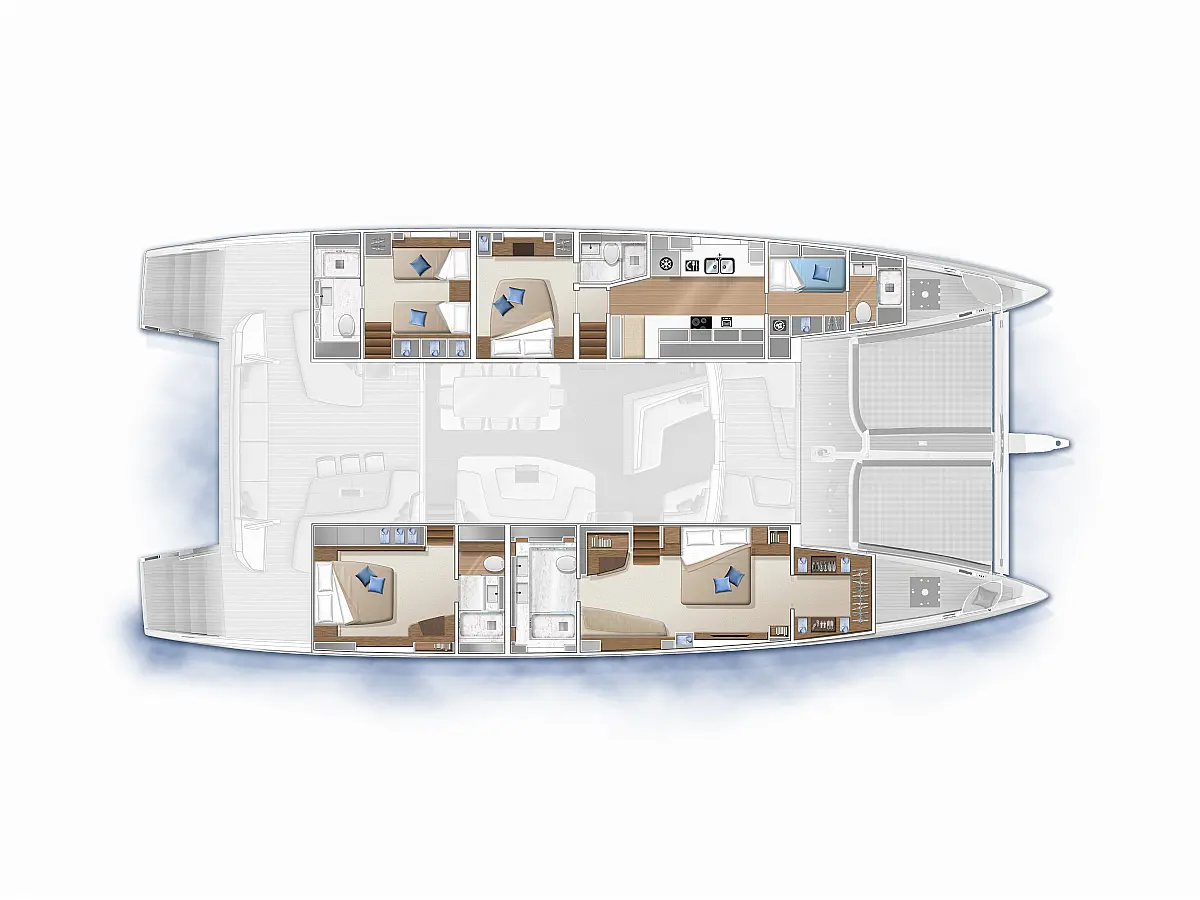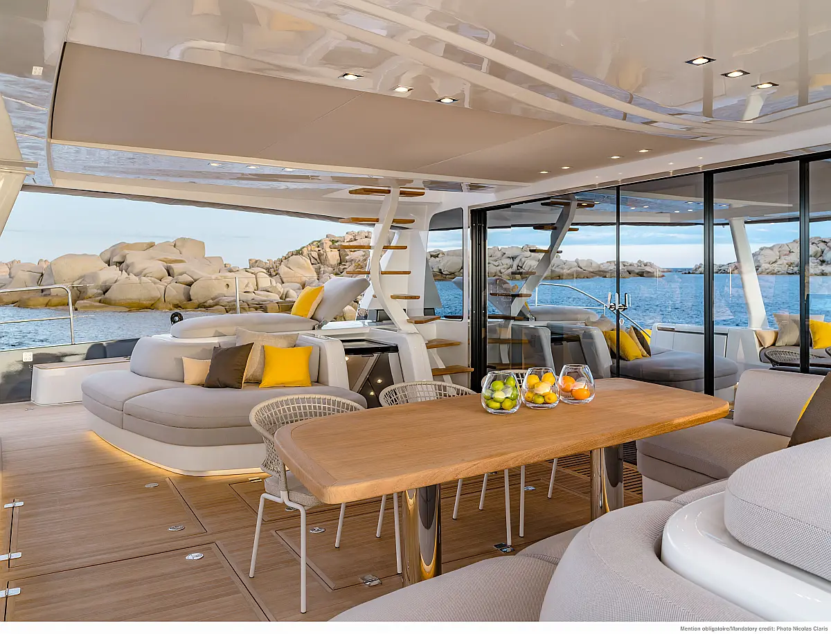 Air condition , Refrigerator , Water maker , Bimini , Cockpit speakers , Dinghy , Outboard engine , Flybridge , Teak deck , Inverter