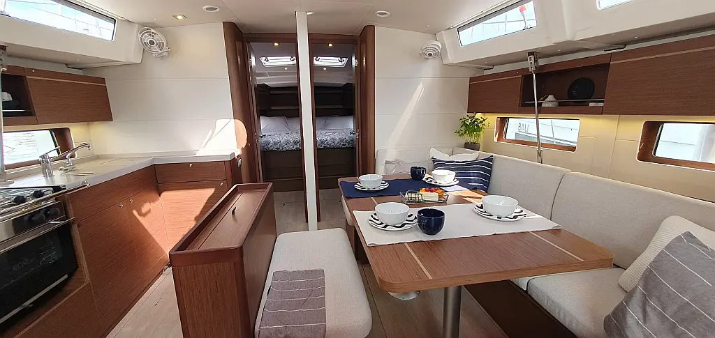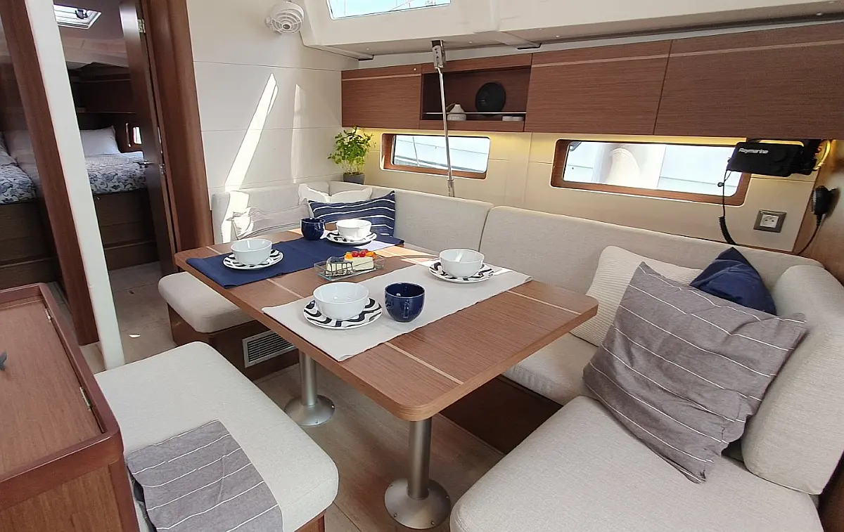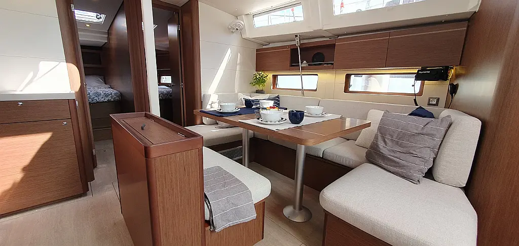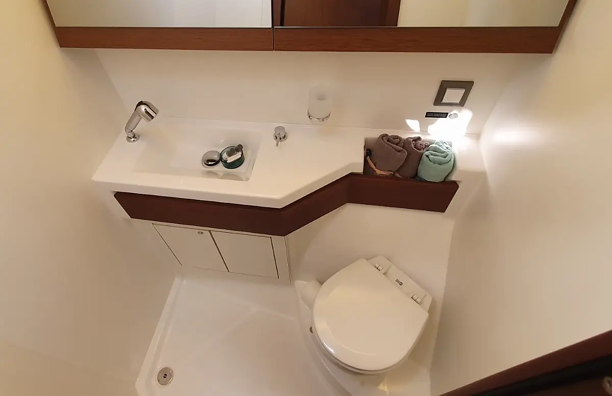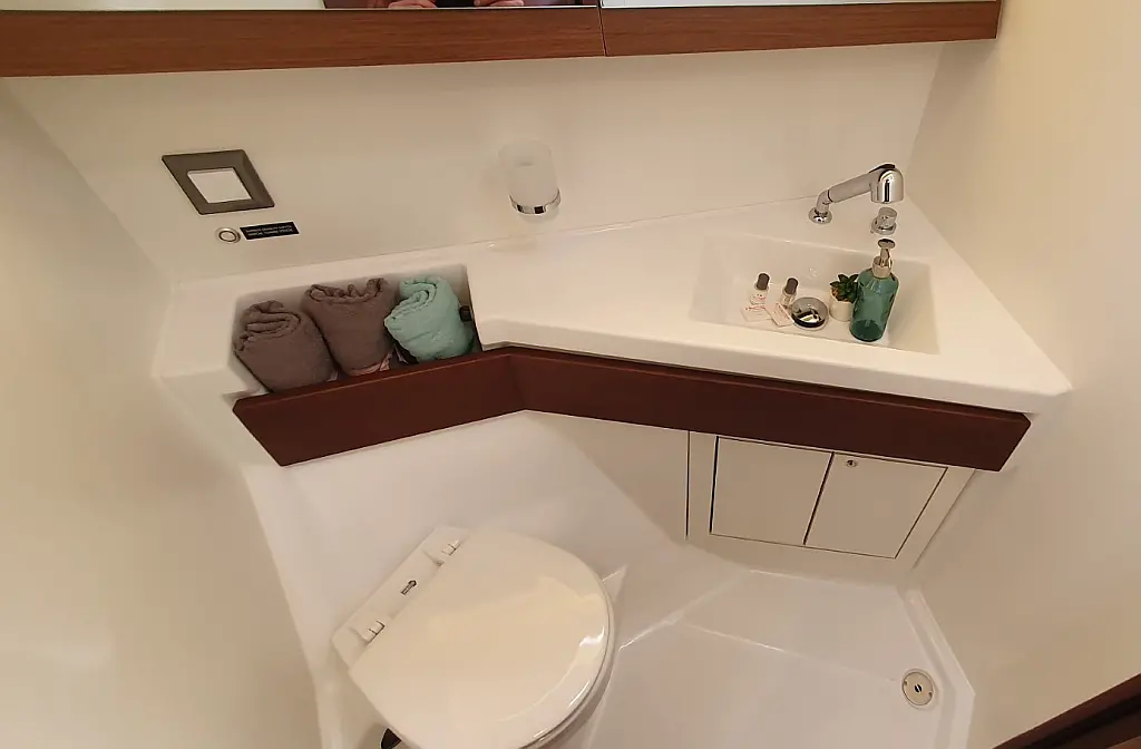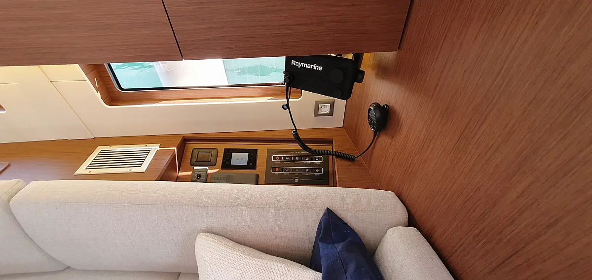 Holding tank , Heating , Coffee maker , Electric toilet , Sprayhood , Cockpit speakers , Teak Cockpit , Cockpit cushions