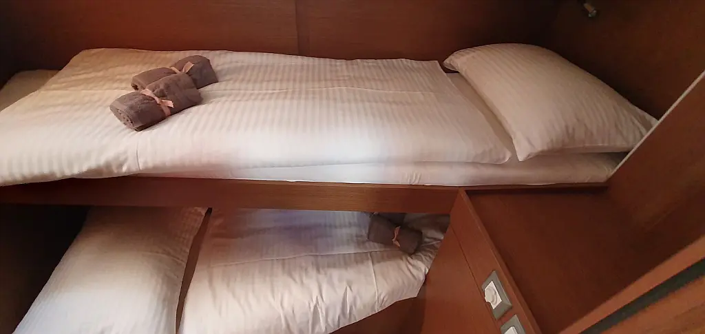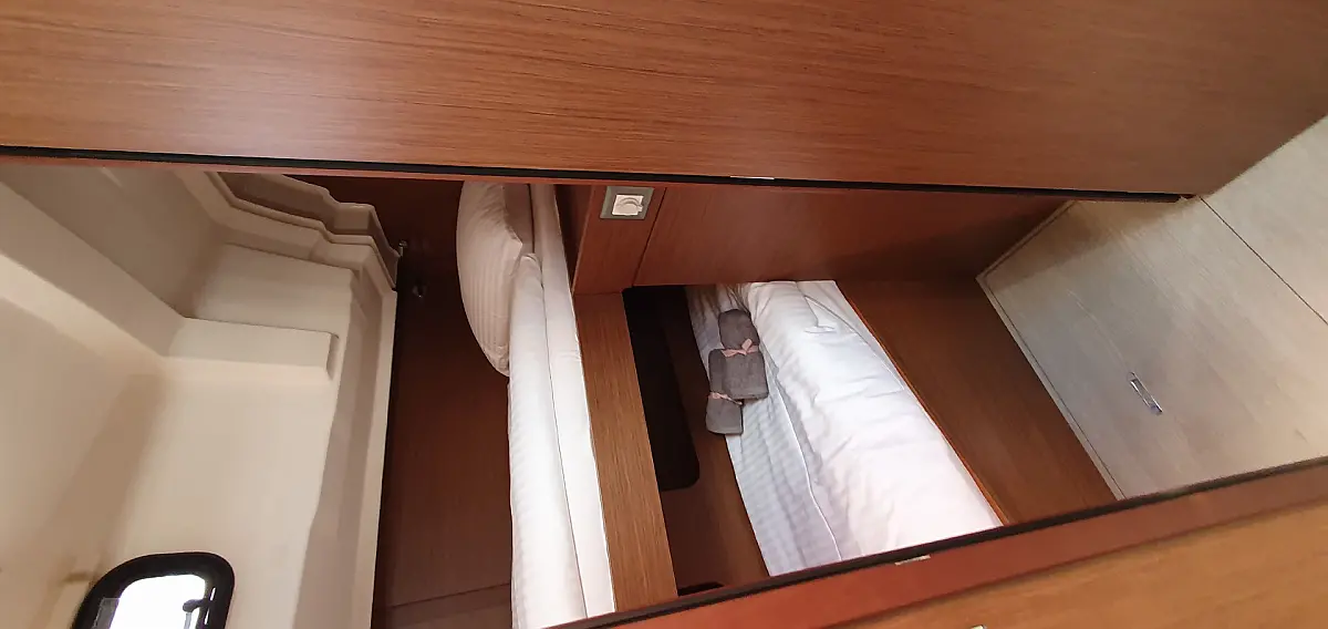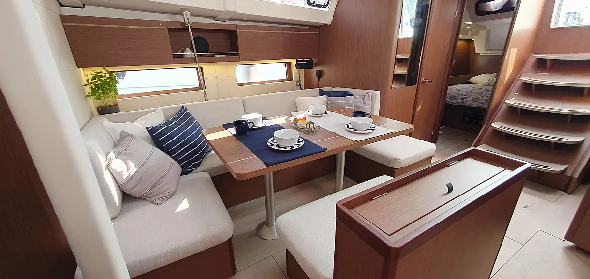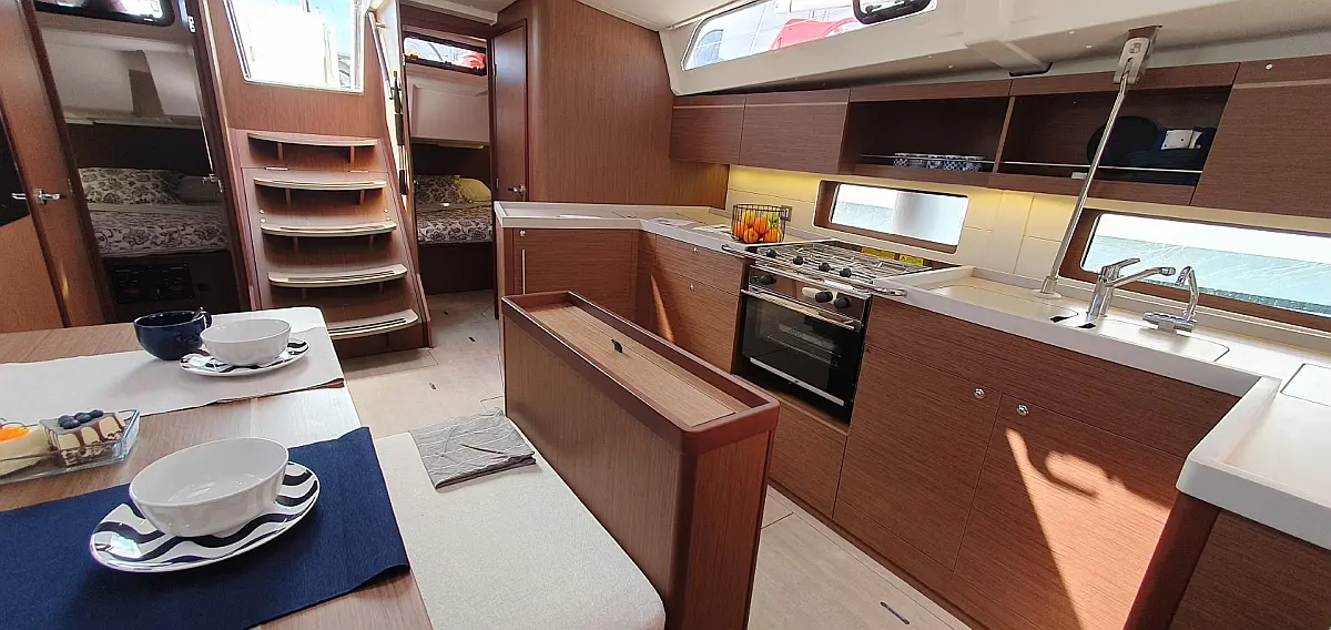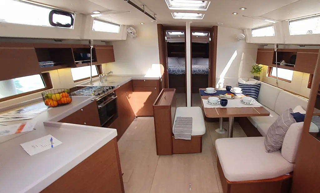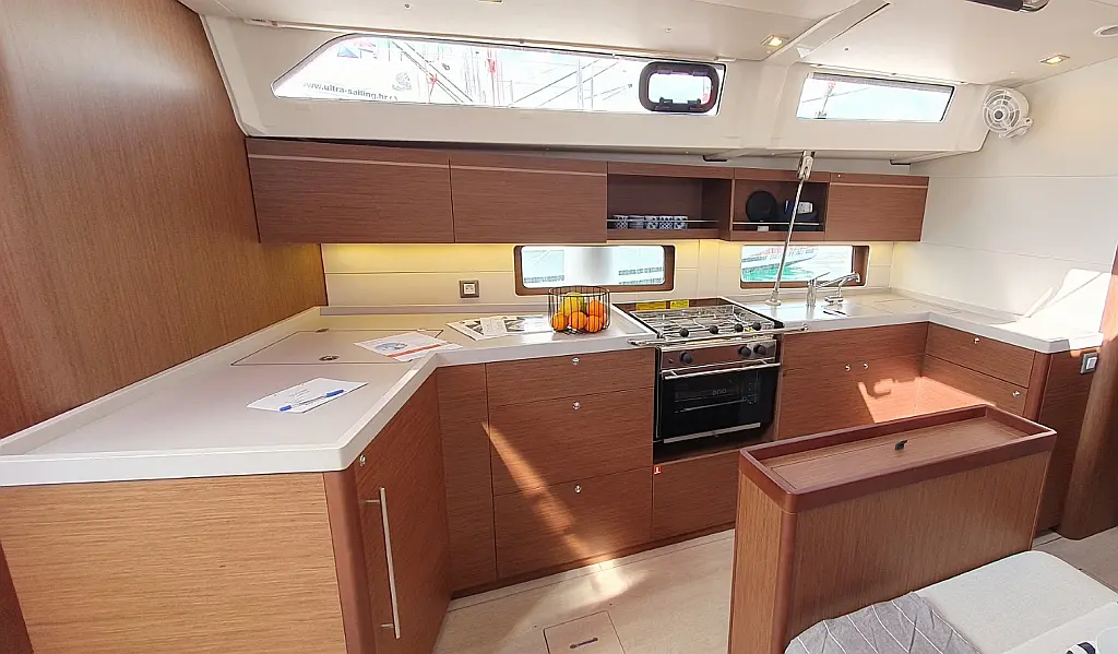 Holding tank , Heating , Coffee maker , Electric toilet , Sprayhood , Cockpit speakers , Teak Cockpit , Cockpit cushions