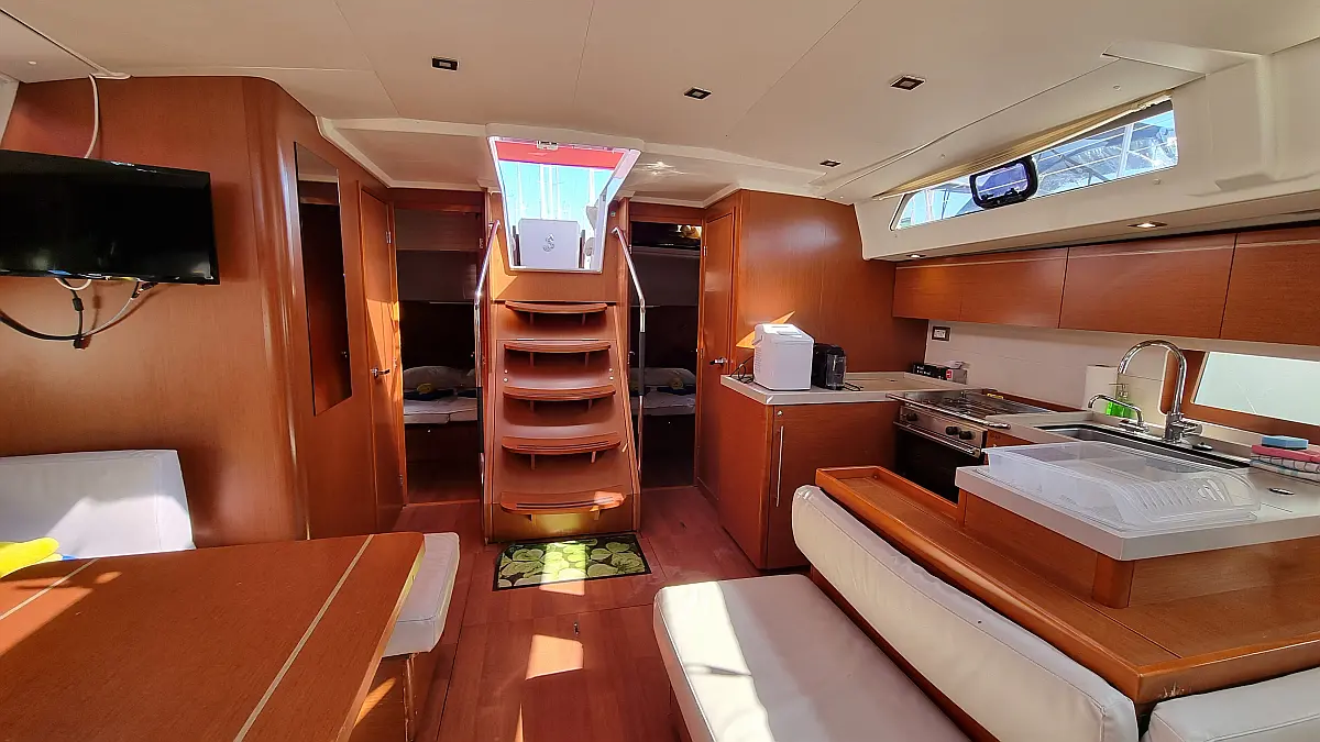 Ice maker , Refrigerator , Bimini , Sprayhood , Outboard engine , Electric winches , Coffee maker , Generator , Electric toilet , Teak Cockpit , Air condition , Heating , Cockpit cushions