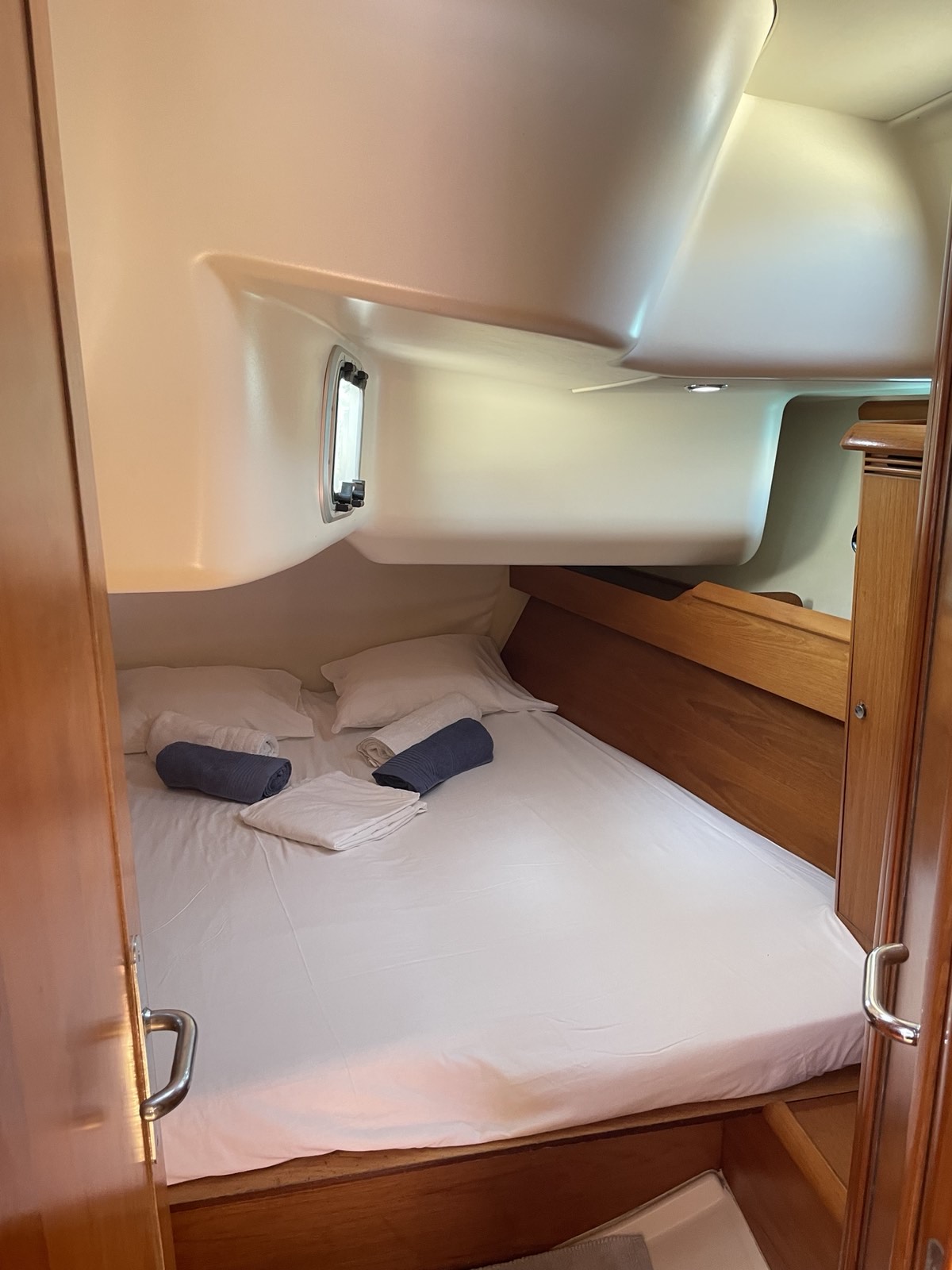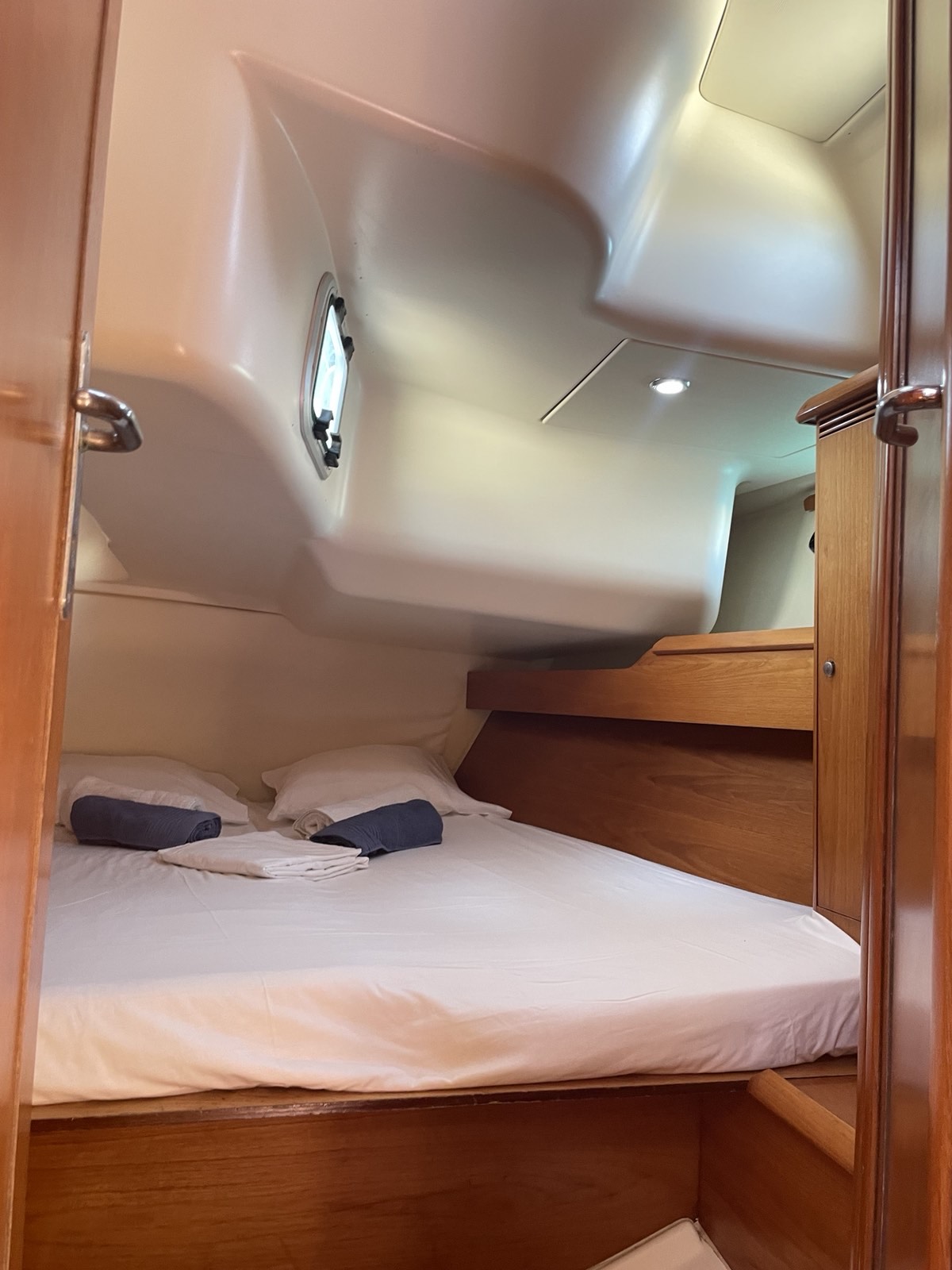 Coffee maker , Solar Panels , Teak deck , Electric winches , Inverter , Bimini , Swimming platform