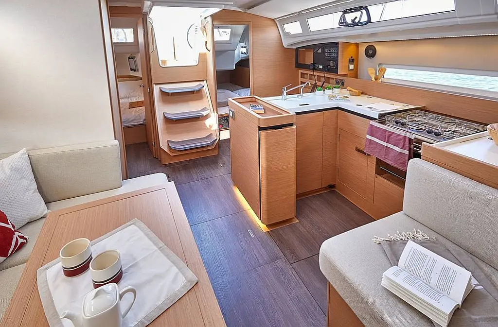 Refrigerator , Coffee maker , Bimini , Cockpit speakers , Cockpit cushions , Dinghy