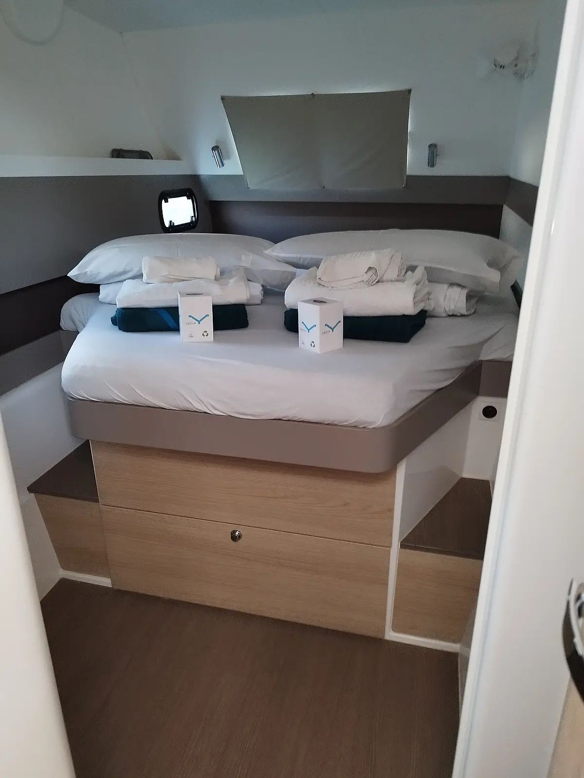 Cockpit cushions , Barbecue grill in cockpit , Electric toilet , Refrigerator , Electric winches , Hydraulic gangway , Inverter , Solar Panels