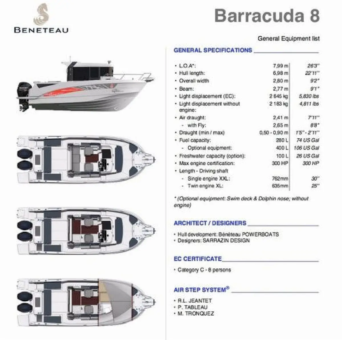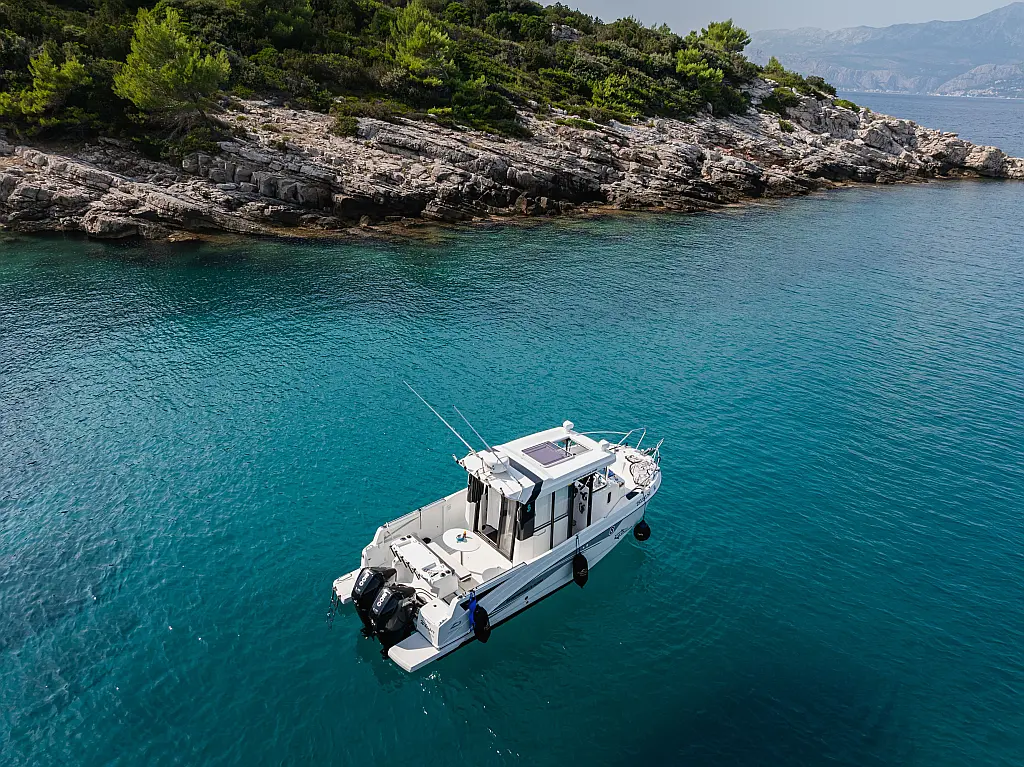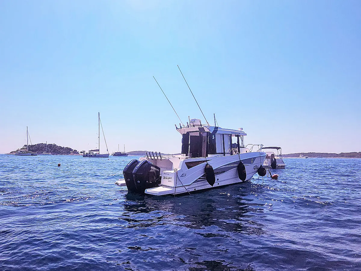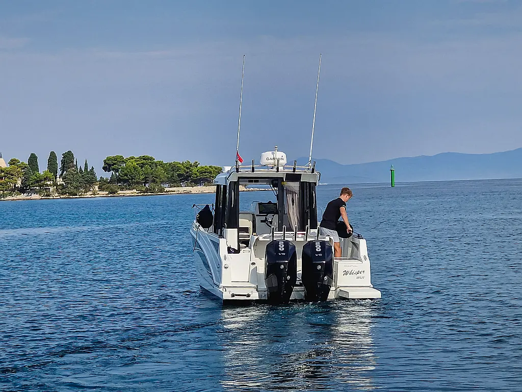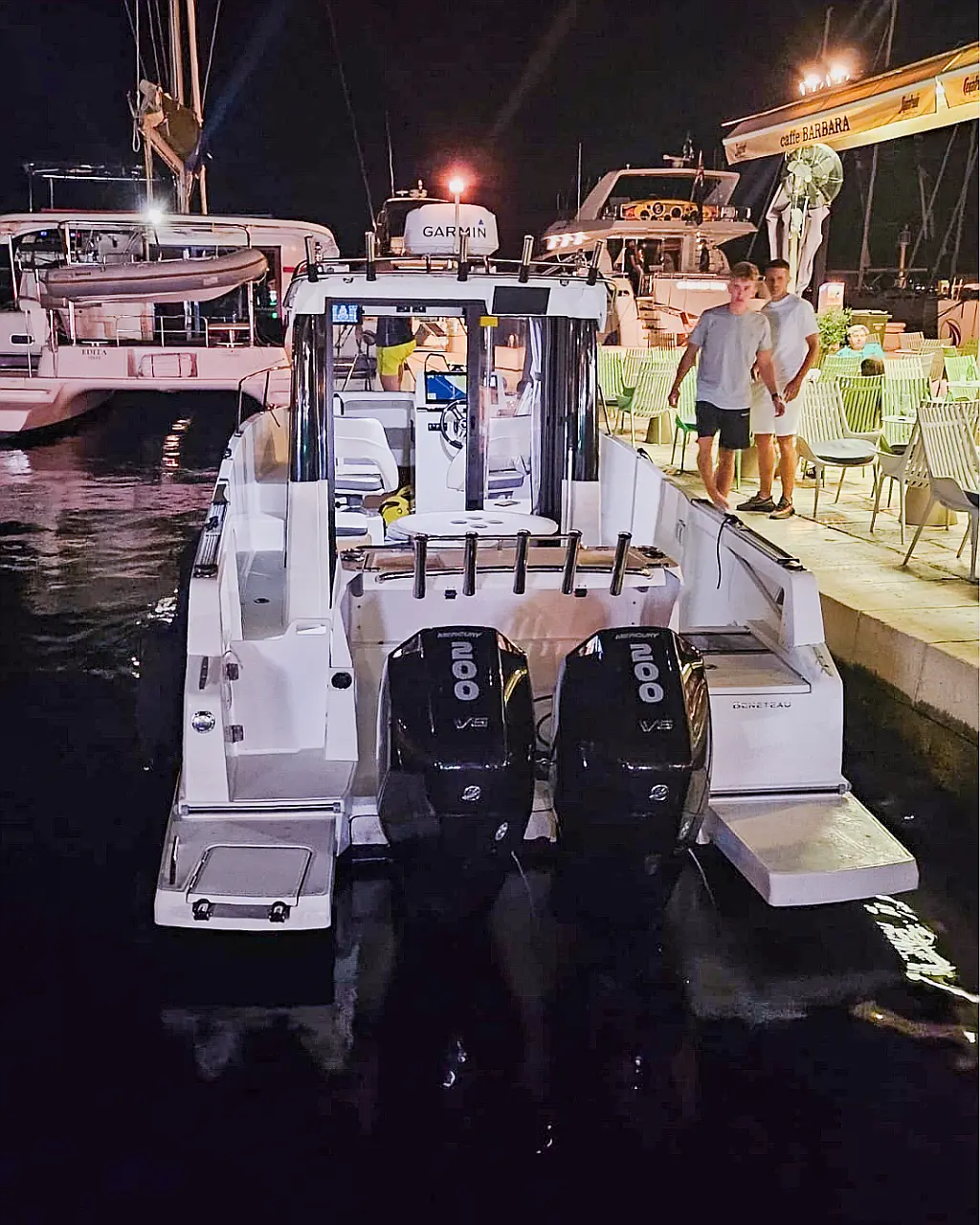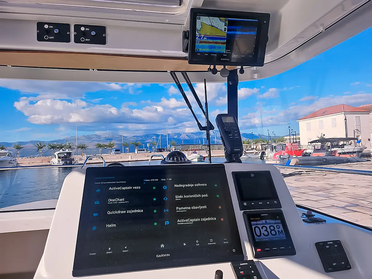 Cockpit speakers , Air condition , Bimini , Swimming platform , Teak deck , Solar Panels , Coffee maker , Wi-Fi & Internet , Cockpit cushions , Outboard engine
