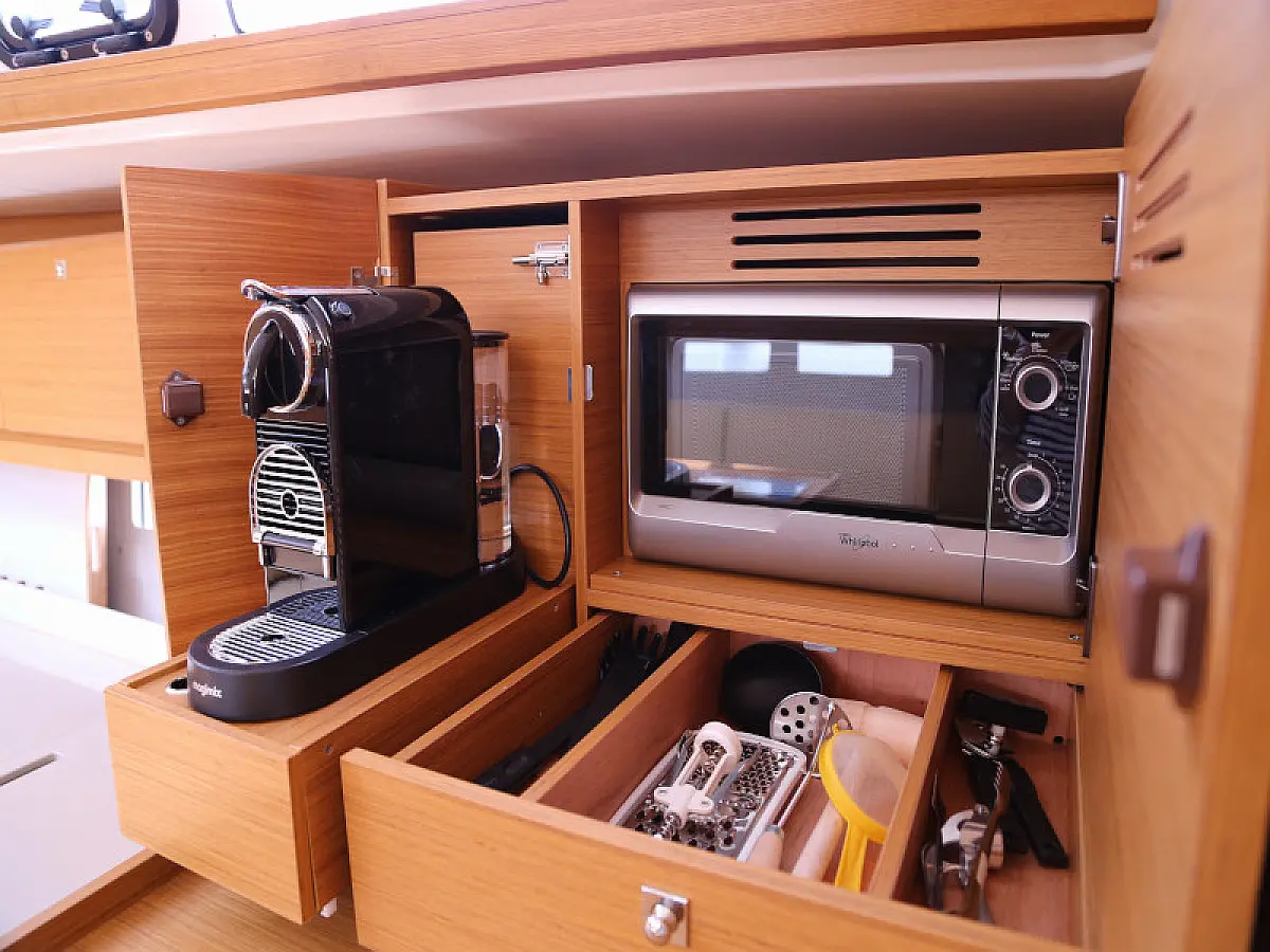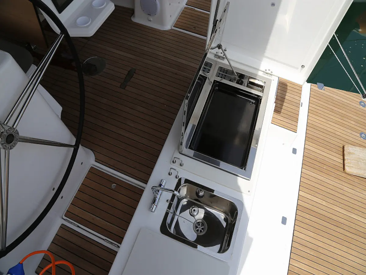 Barbecue grill in cockpit , Wi-Fi & Internet , Cockpit speakers , Air condition , Inverter , Outboard engine , Dinghy , Teak Cockpit , Swimming platform , Refrigerator , Sprayhood , Bimini