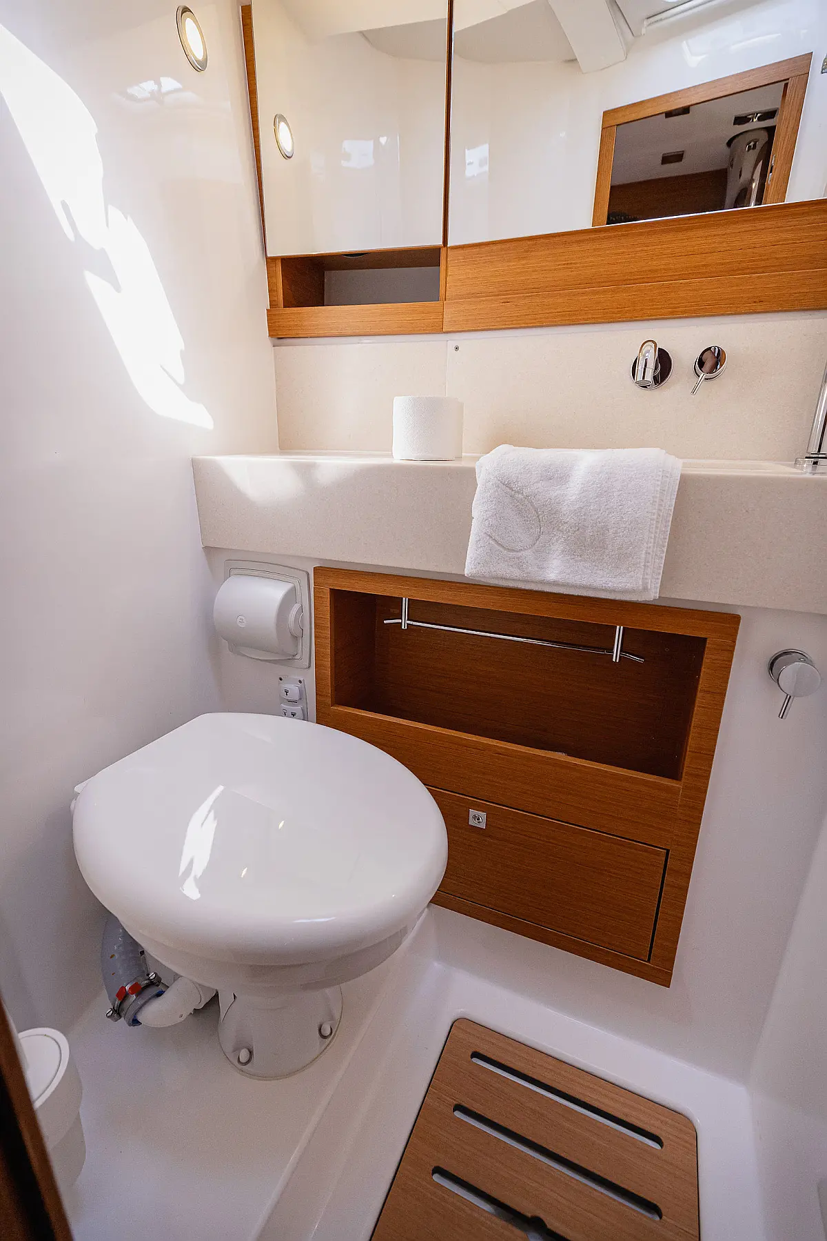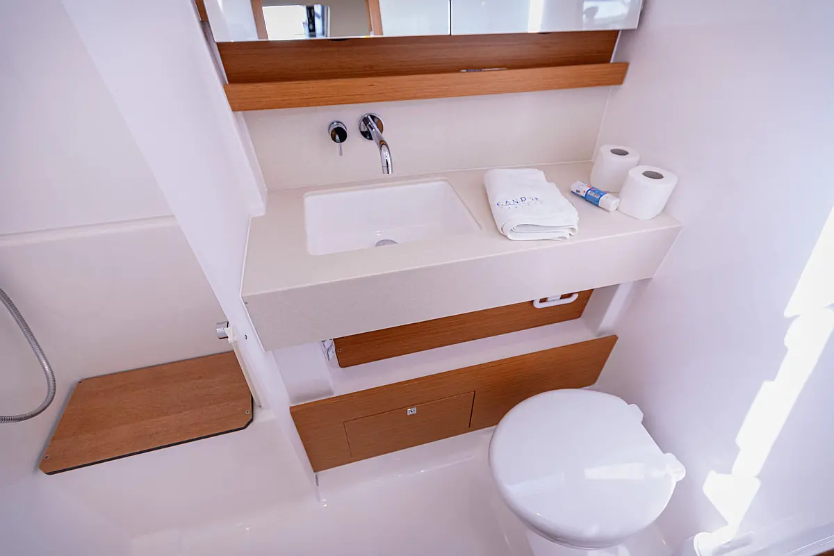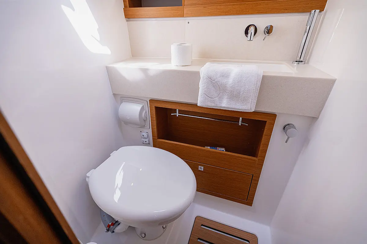 Barbecue grill in cockpit , Cockpit speakers , Air condition , Refrigerator , Inverter , Generator , Outboard engine , Dinghy , Electric toilet , Swimming platform , Teak Cockpit , Cockpit cushions , Sprayhood , Bimini