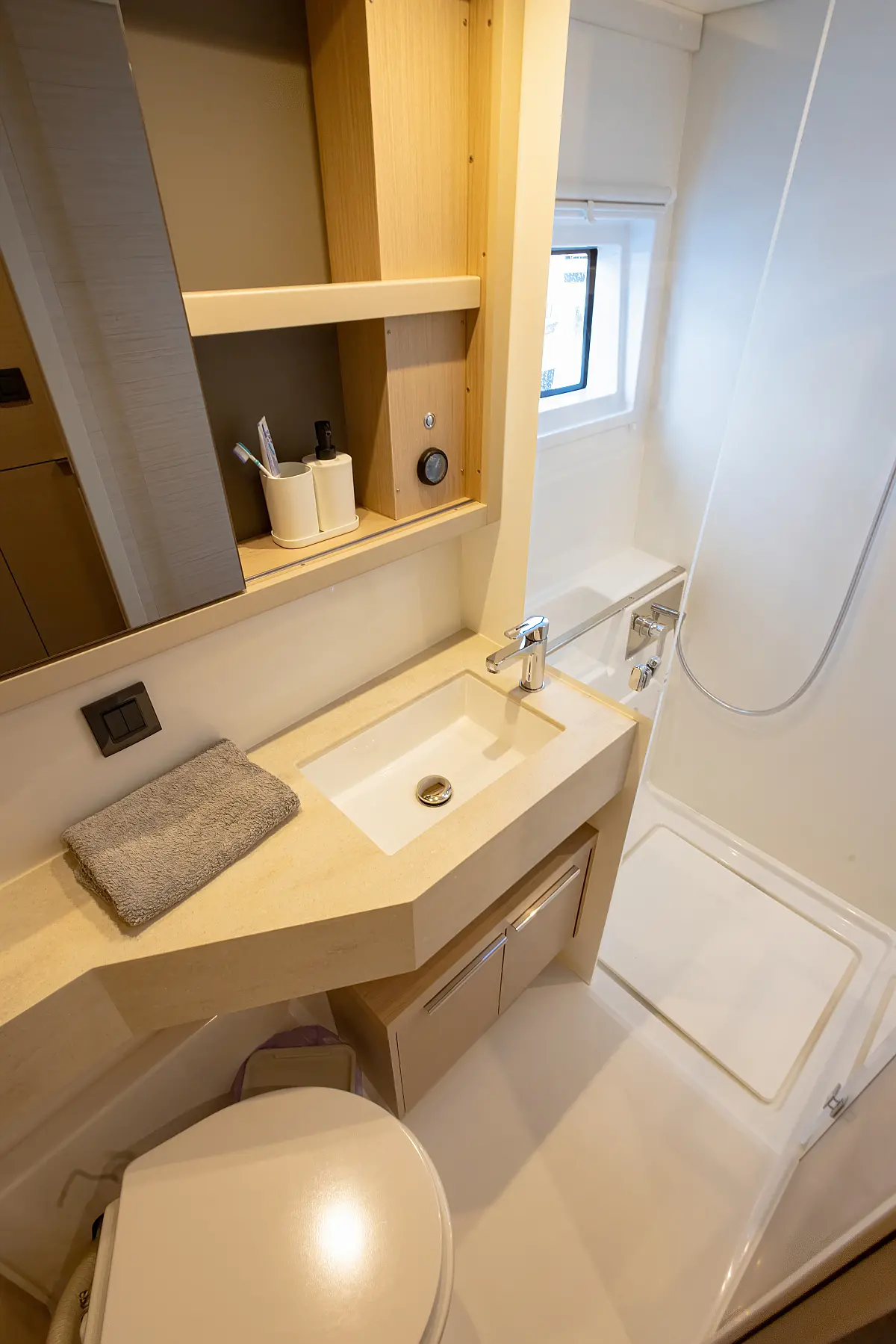 Electric toilet , Inverter , Generator , Bimini , Dinghy , Swimming platform , Cockpit cushions , Teak Cockpit , Air condition , Heating