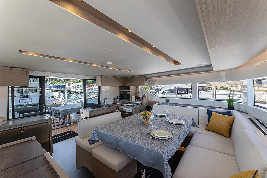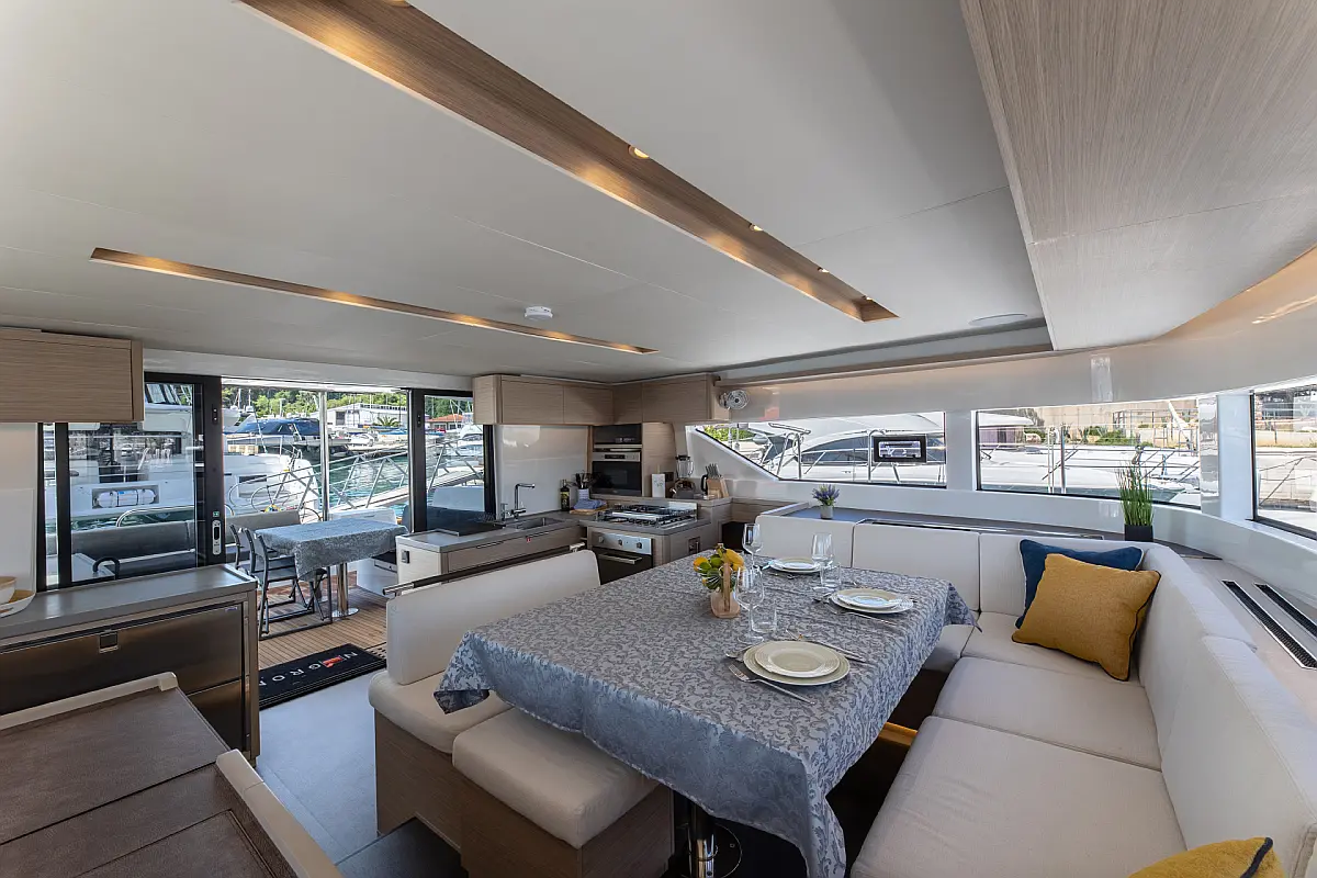 Water maker , Bimini , Cockpit speakers , Air condition , Heating , Flybridge , Ice maker , Coffee maker , Generator , Inverter , Outboard engine , Dinghy