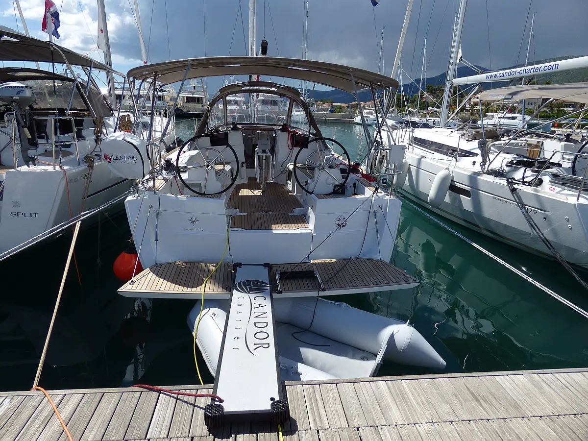 Cockpit speakers , Air condition , Swimming platform , Refrigerator , Inverter , Outboard engine , Dinghy , Sprayhood , Bimini , Cockpit cushions
