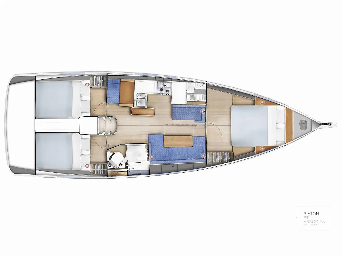 Cockpit speakers , Air condition , Refrigerator , Inverter , Outboard engine , Dinghy , Teak Cockpit , Swimming platform , Sprayhood , Bimini , Cockpit cushions
