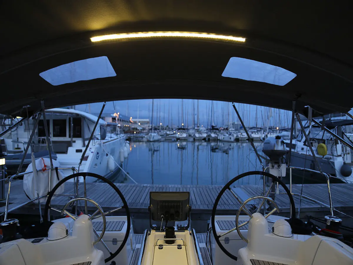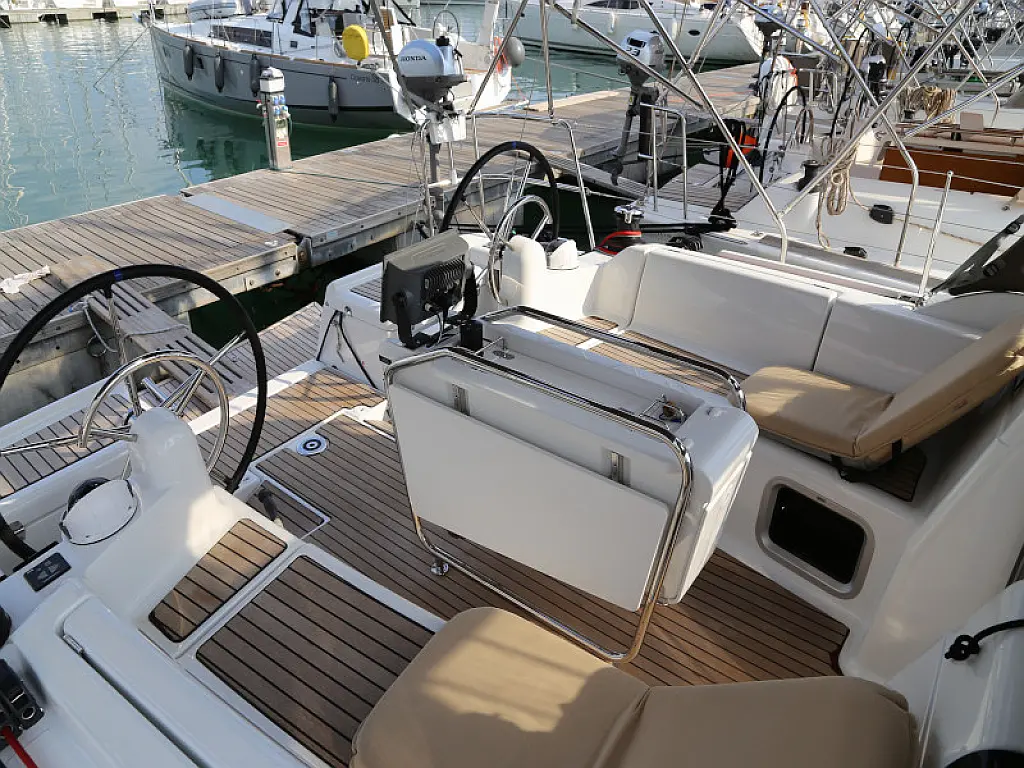 Cockpit speakers , Air condition , Swimming platform , Refrigerator , Solar Panels , Inverter , Dinghy , Teak Cockpit , Sprayhood , Bimini , Cockpit cushions