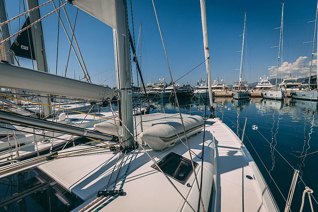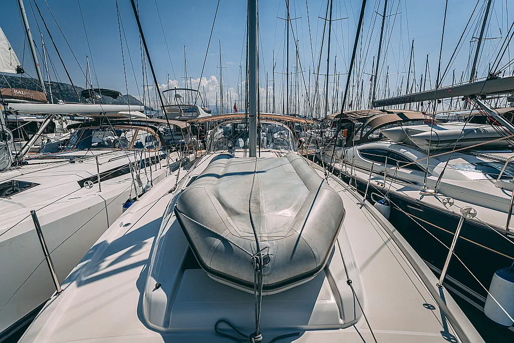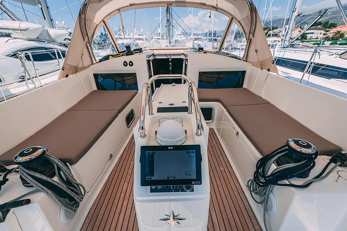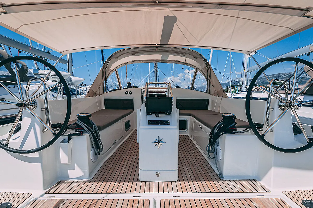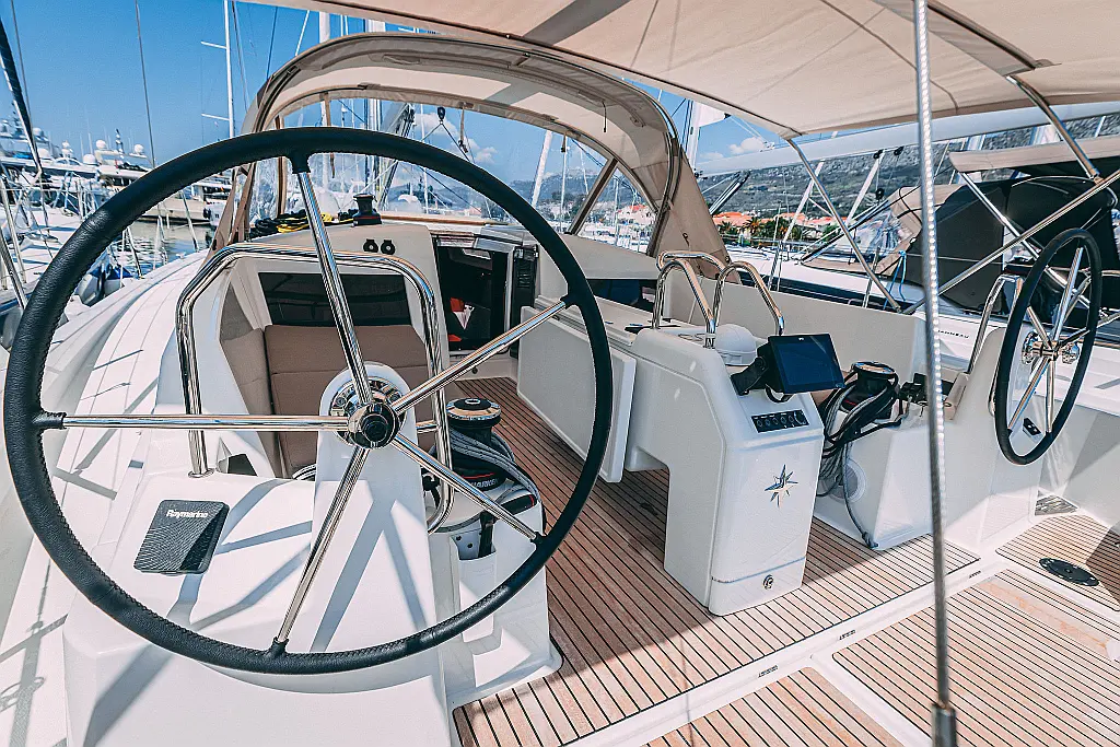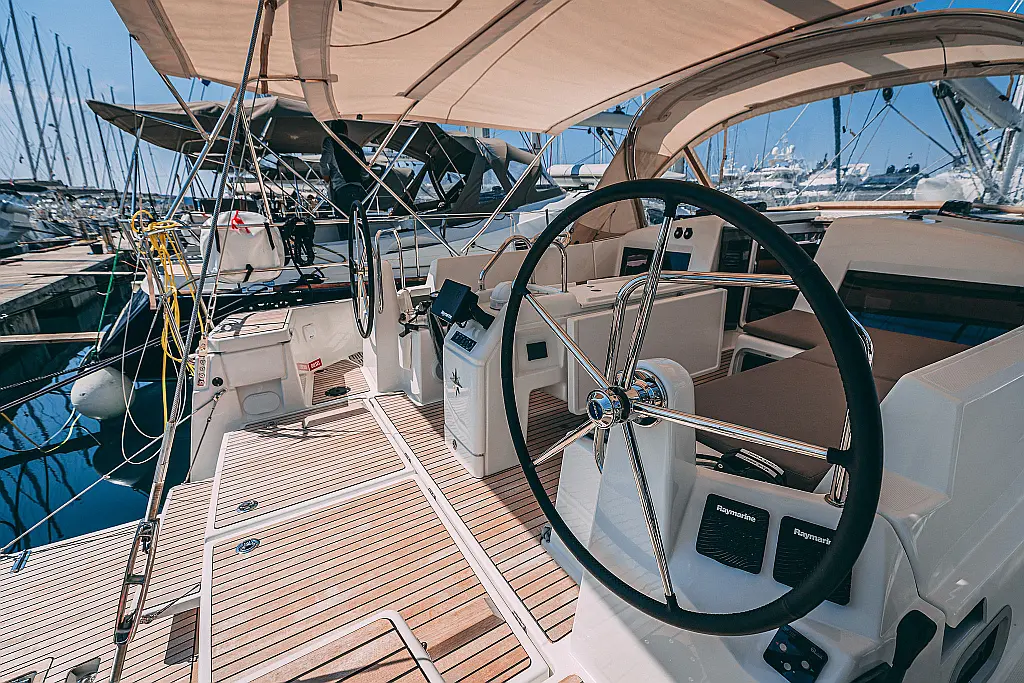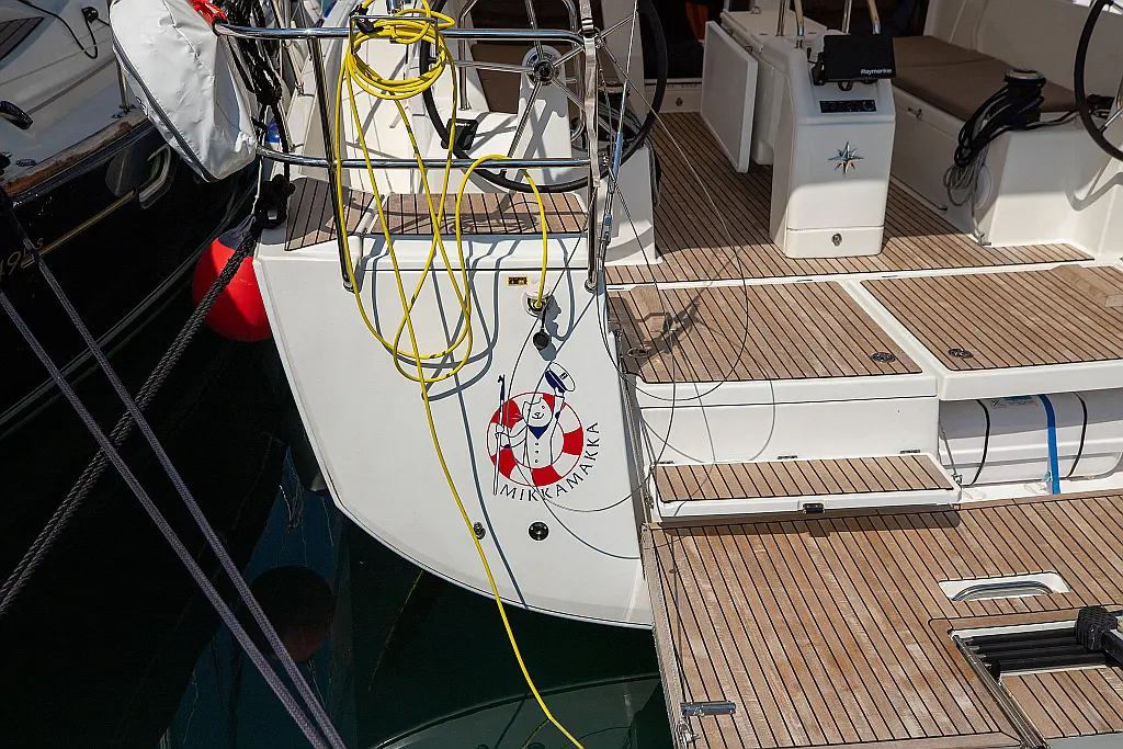Electric winches , Cockpit speakers , Swimming platform , Teak deck , Outboard engine , Dinghy , Air condition , Sprayhood , Bimini