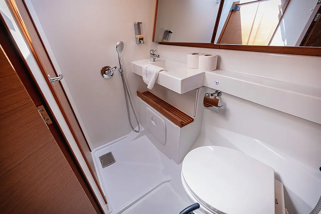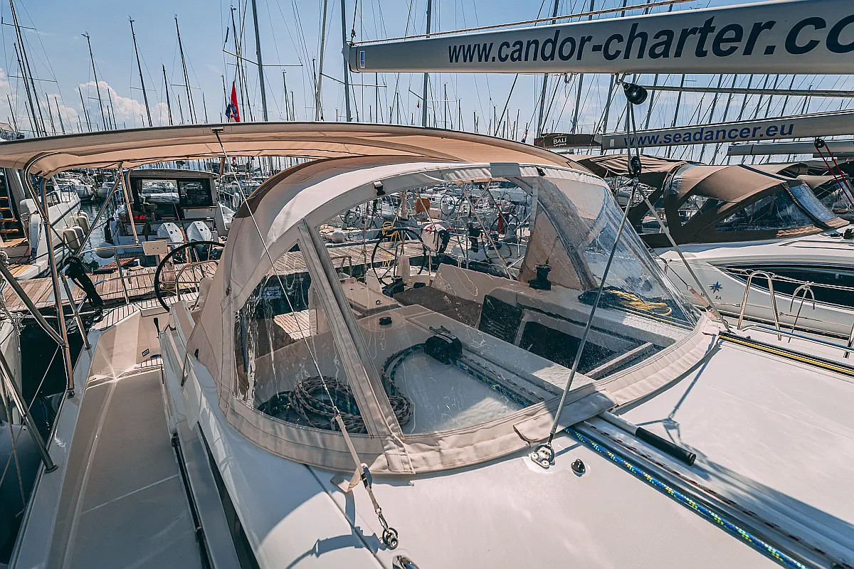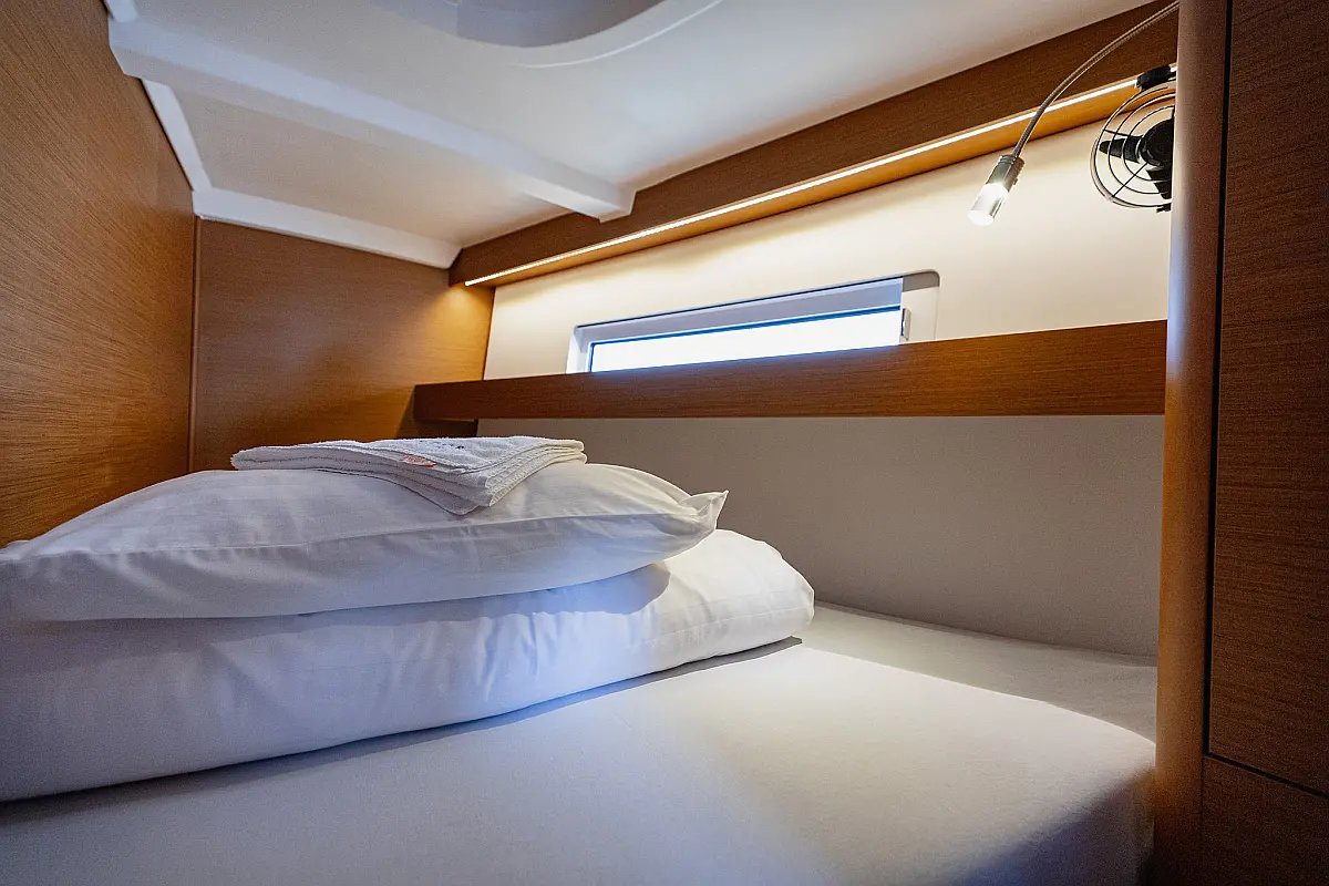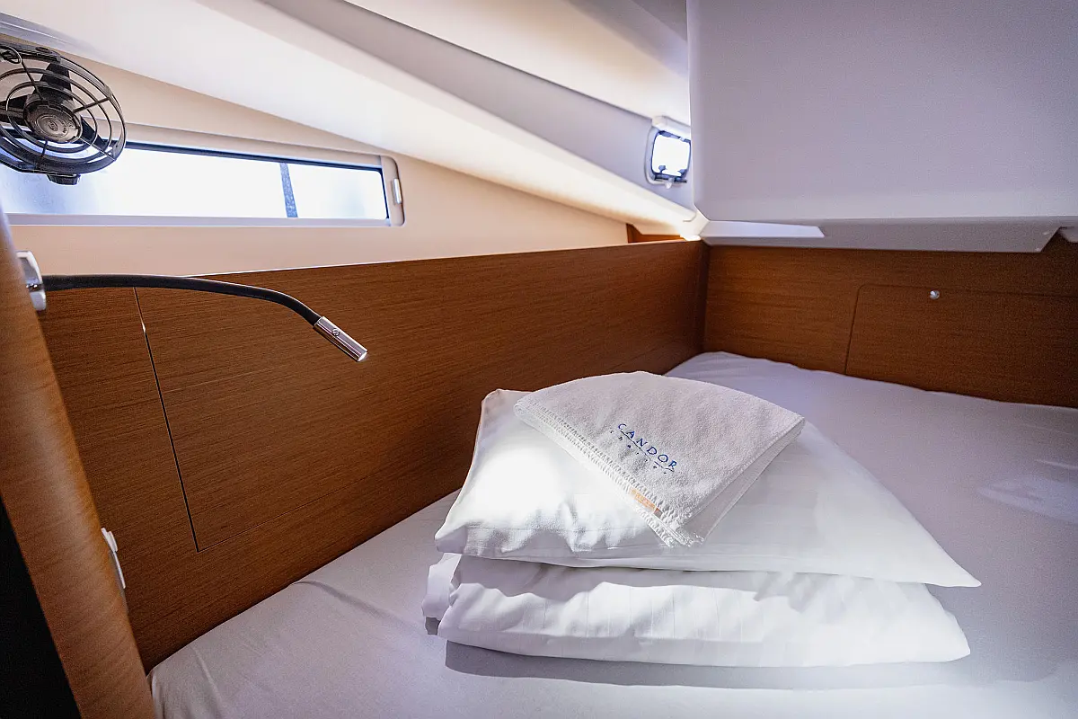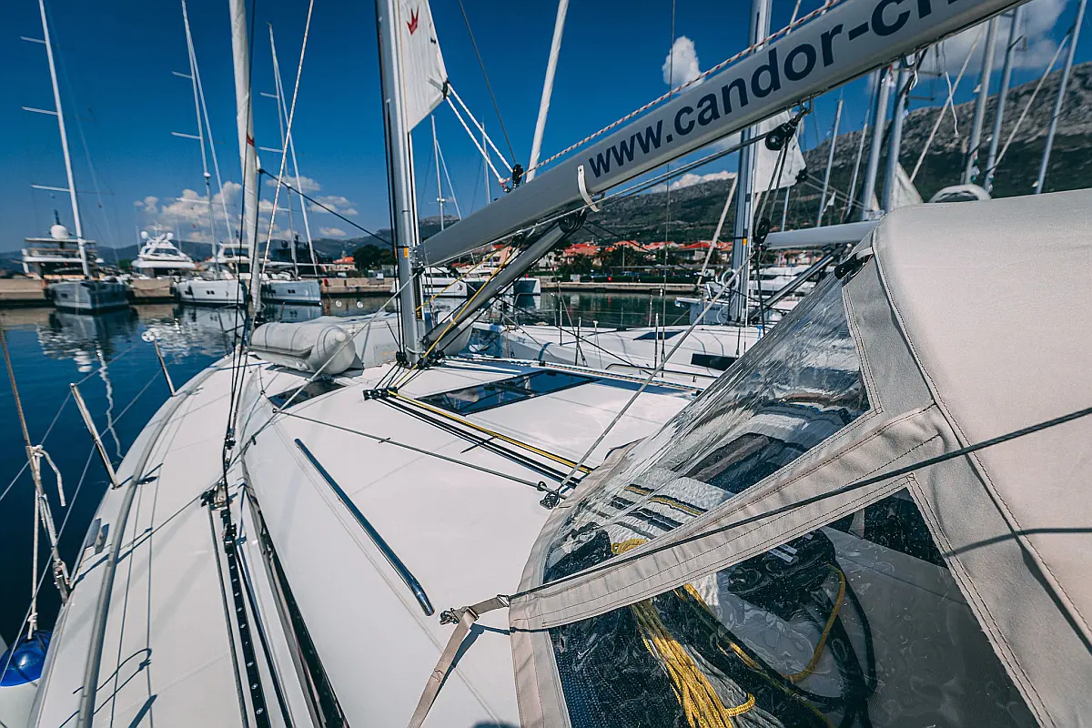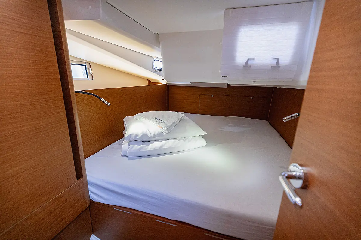 Electric winches , Cockpit speakers , Swimming platform , Teak deck , Outboard engine , Dinghy , Air condition , Sprayhood , Bimini