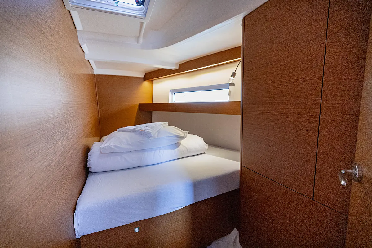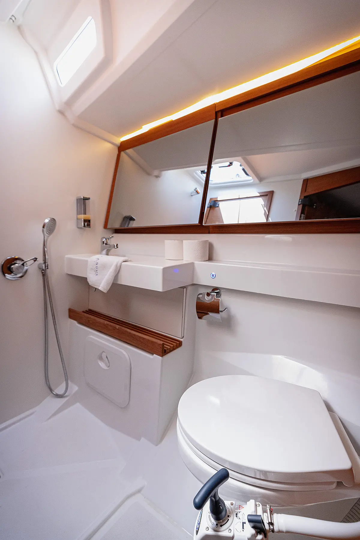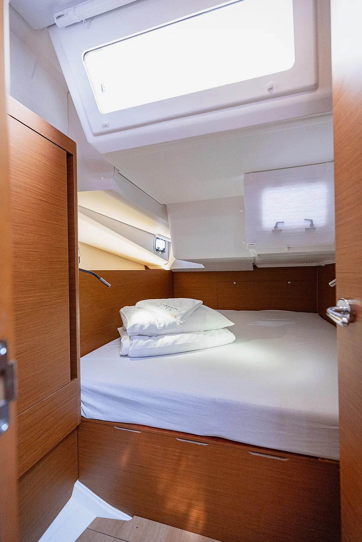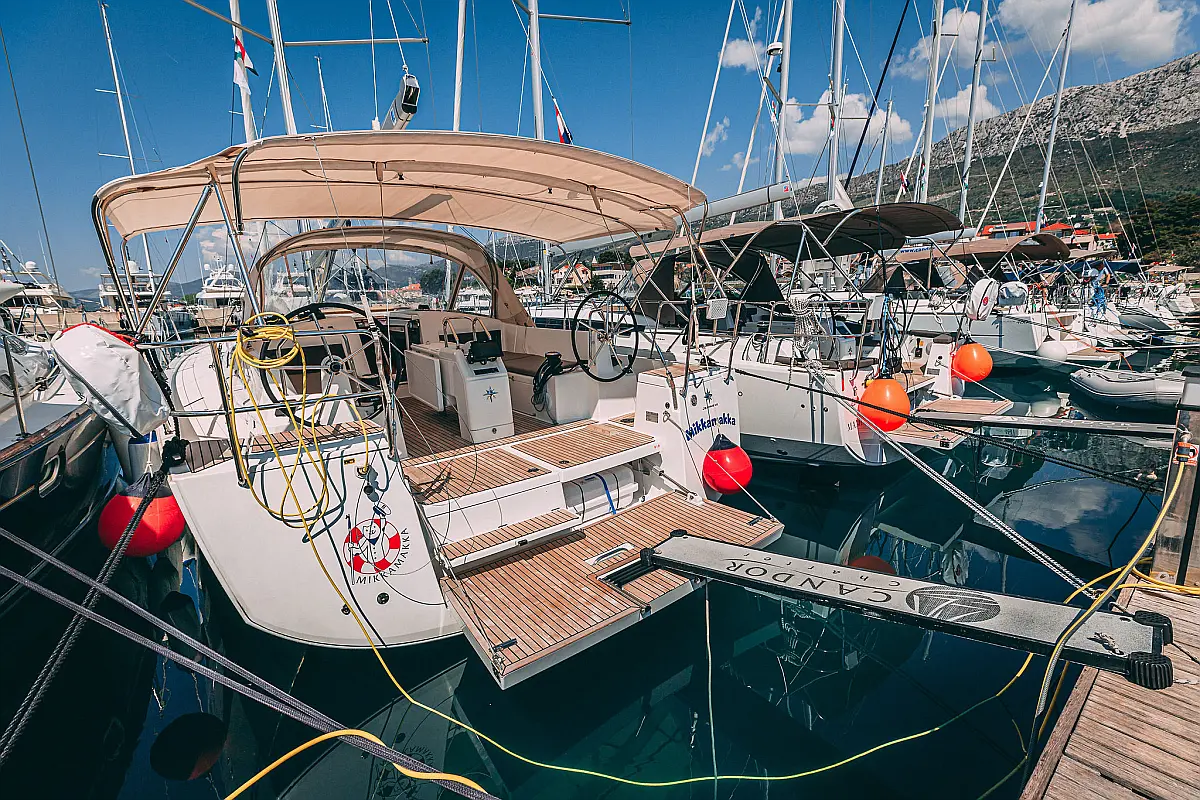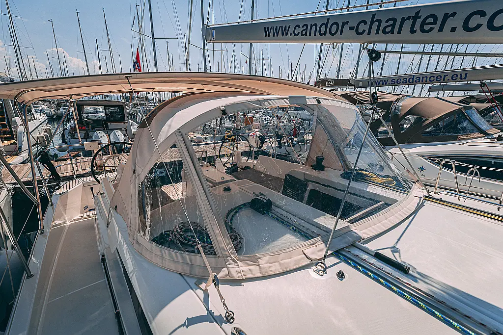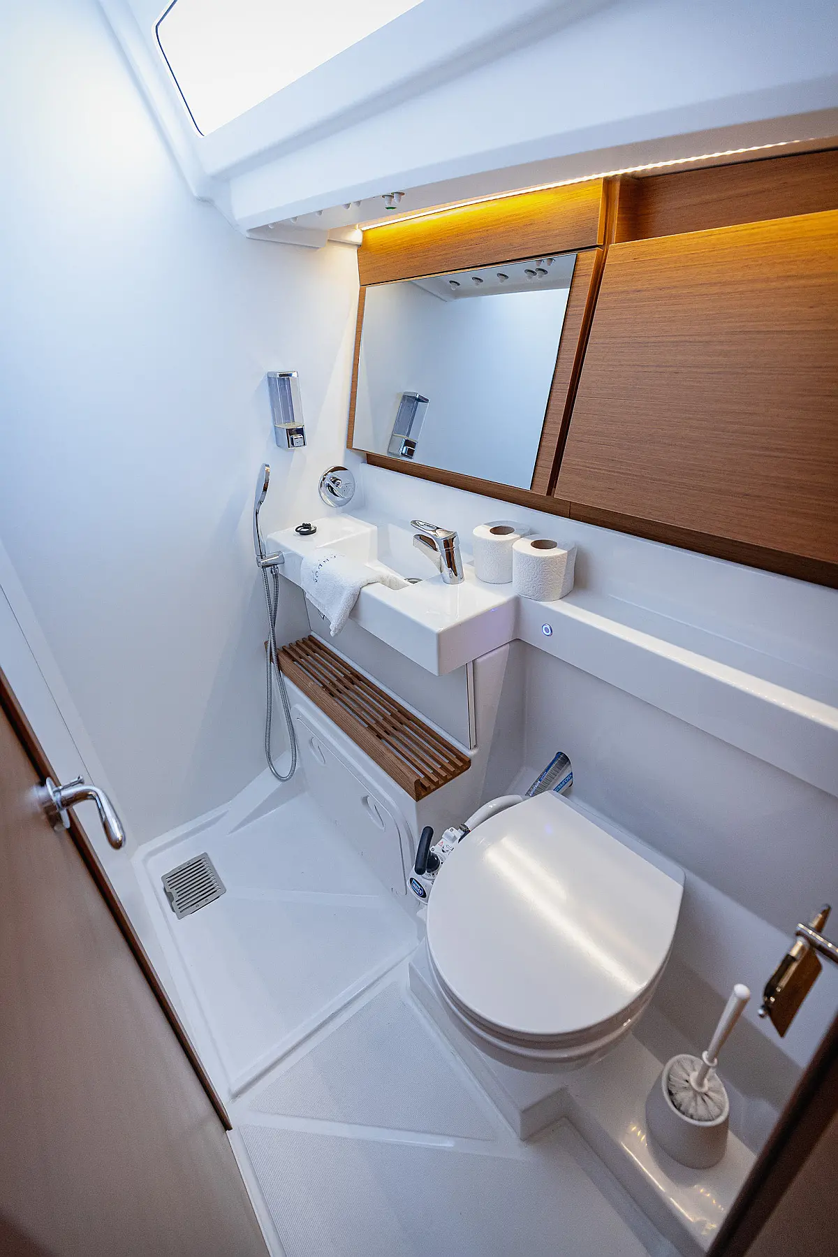 Electric winches , Cockpit speakers , Swimming platform , Teak deck , Outboard engine , Dinghy , Air condition , Sprayhood , Bimini