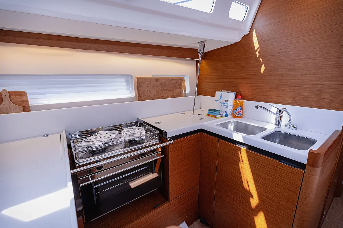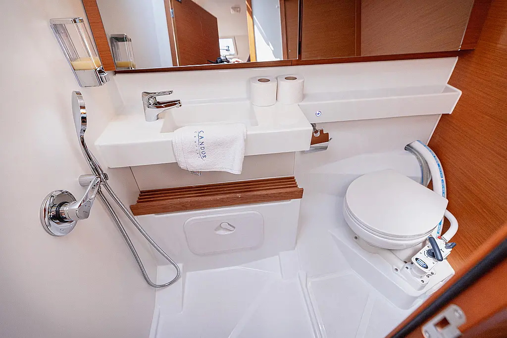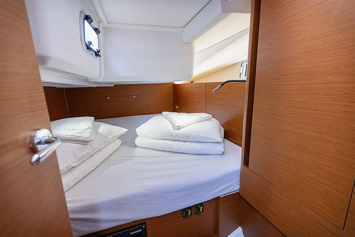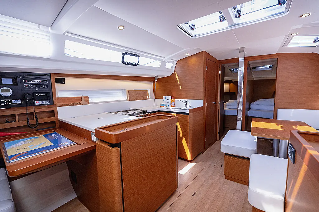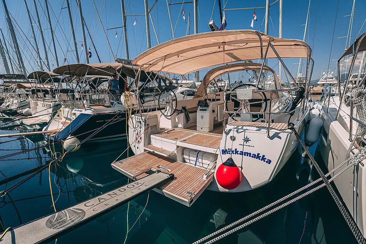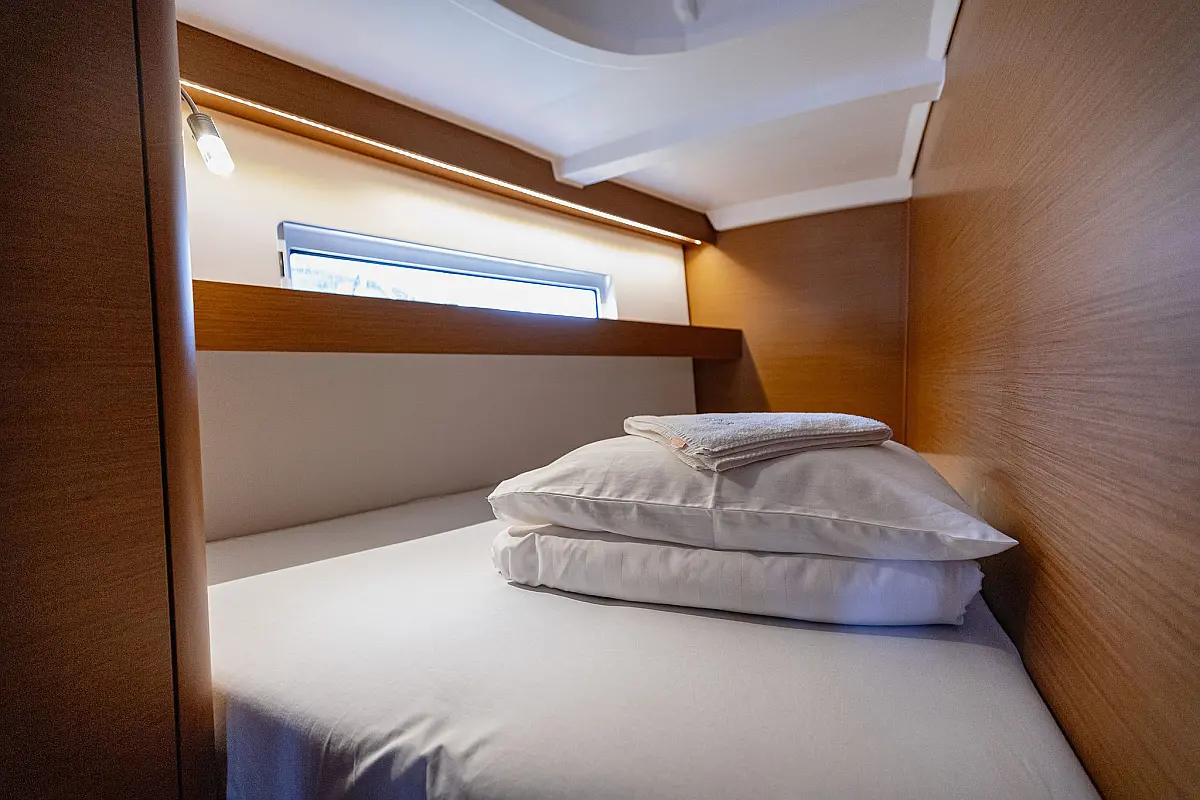 Electric winches , Cockpit speakers , Swimming platform , Teak deck , Outboard engine , Dinghy , Air condition , Sprayhood , Bimini