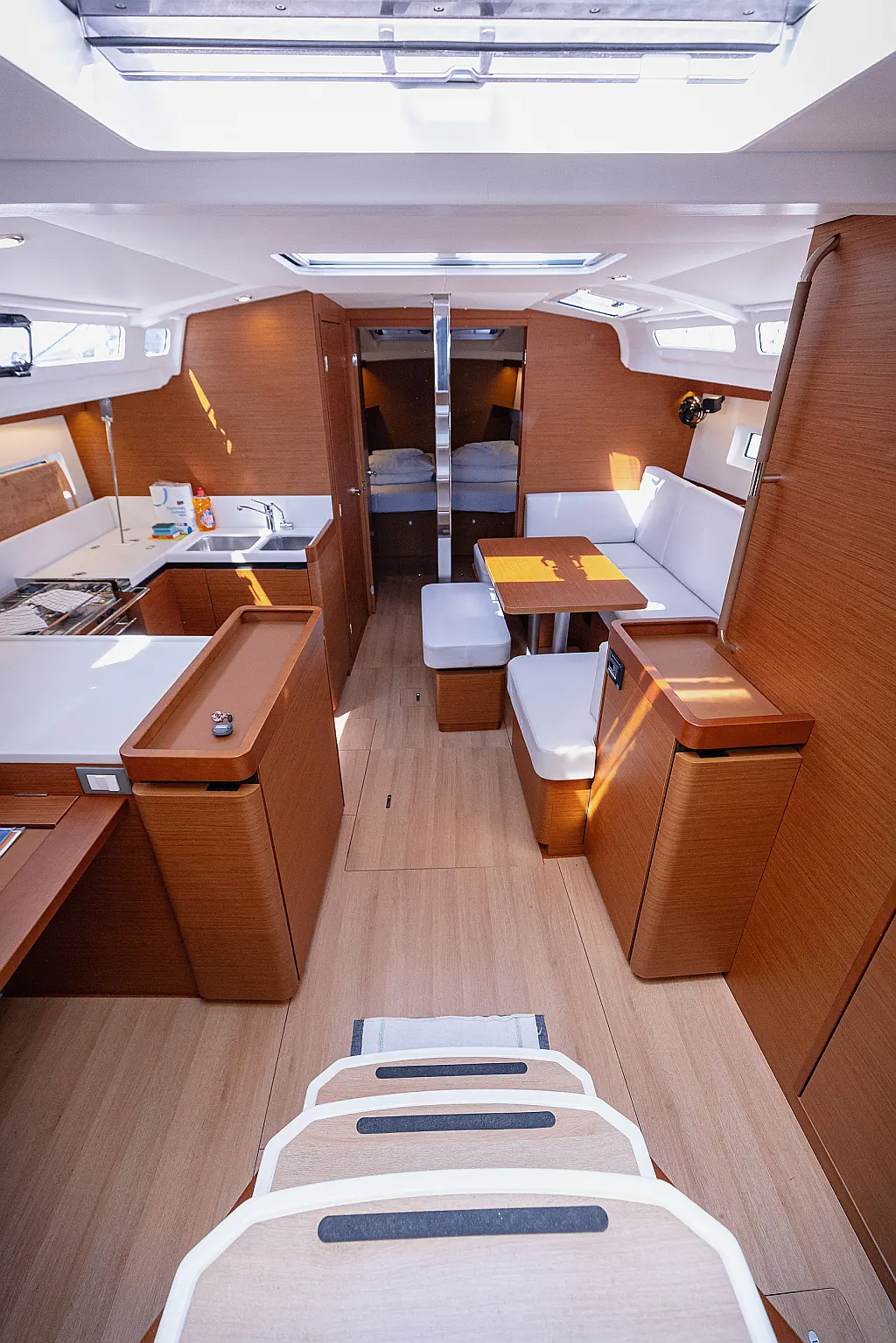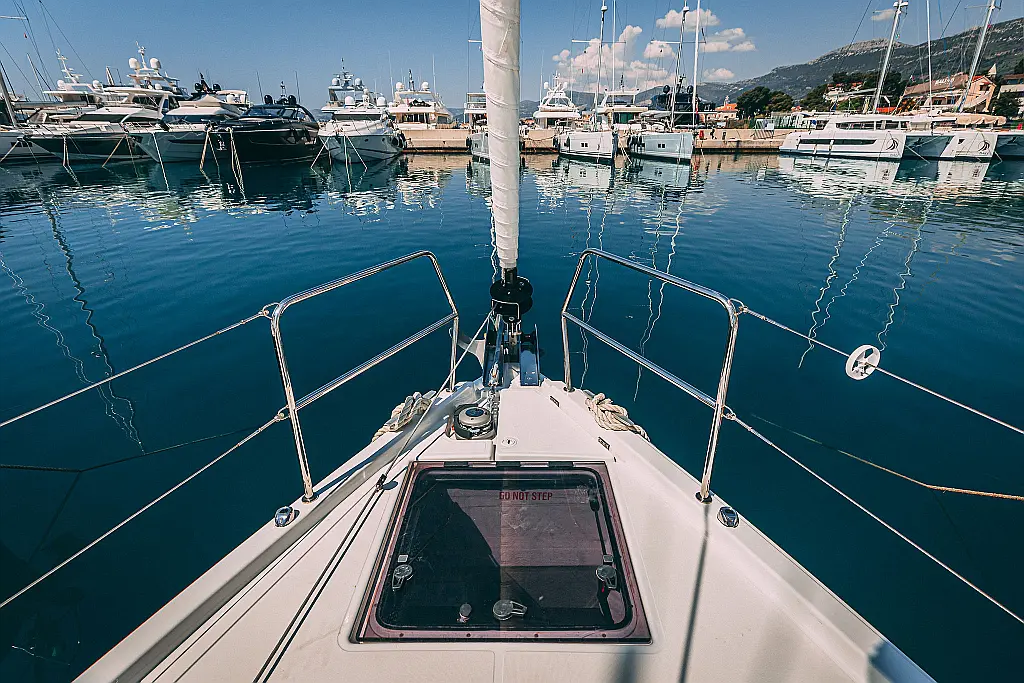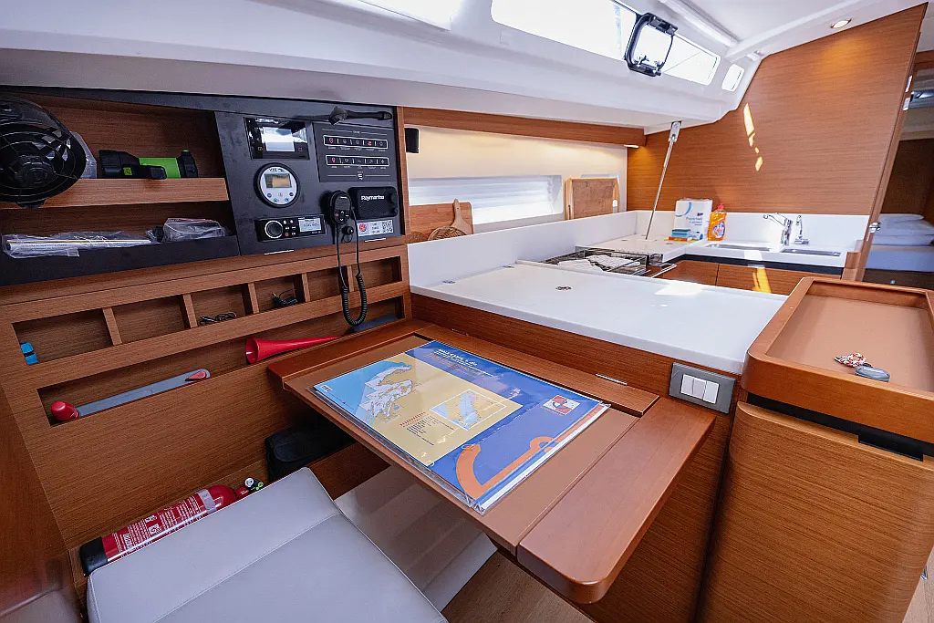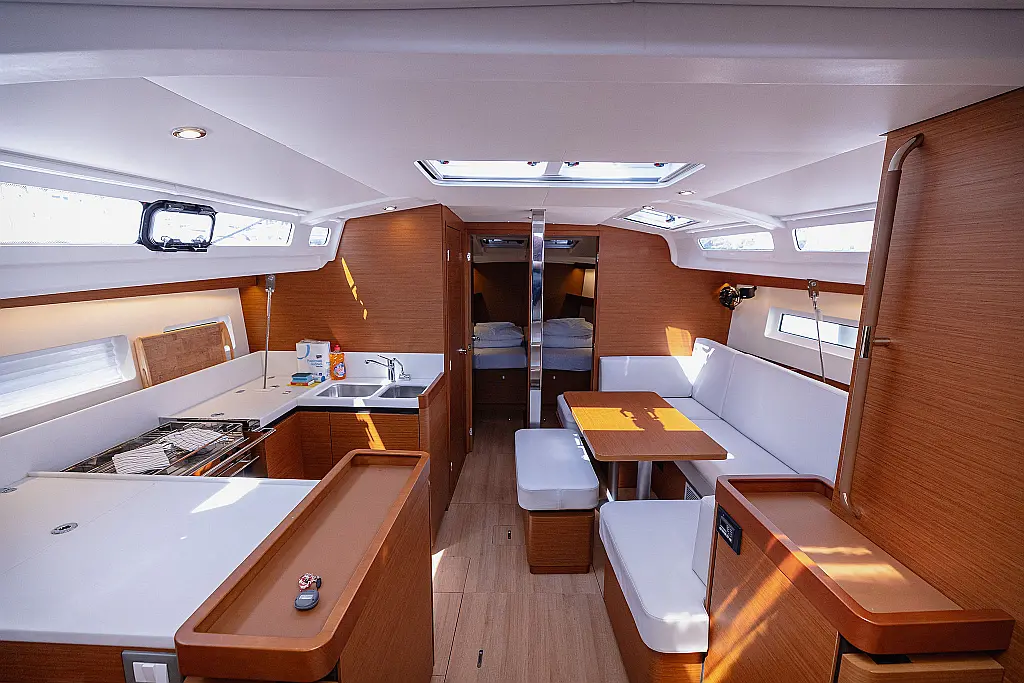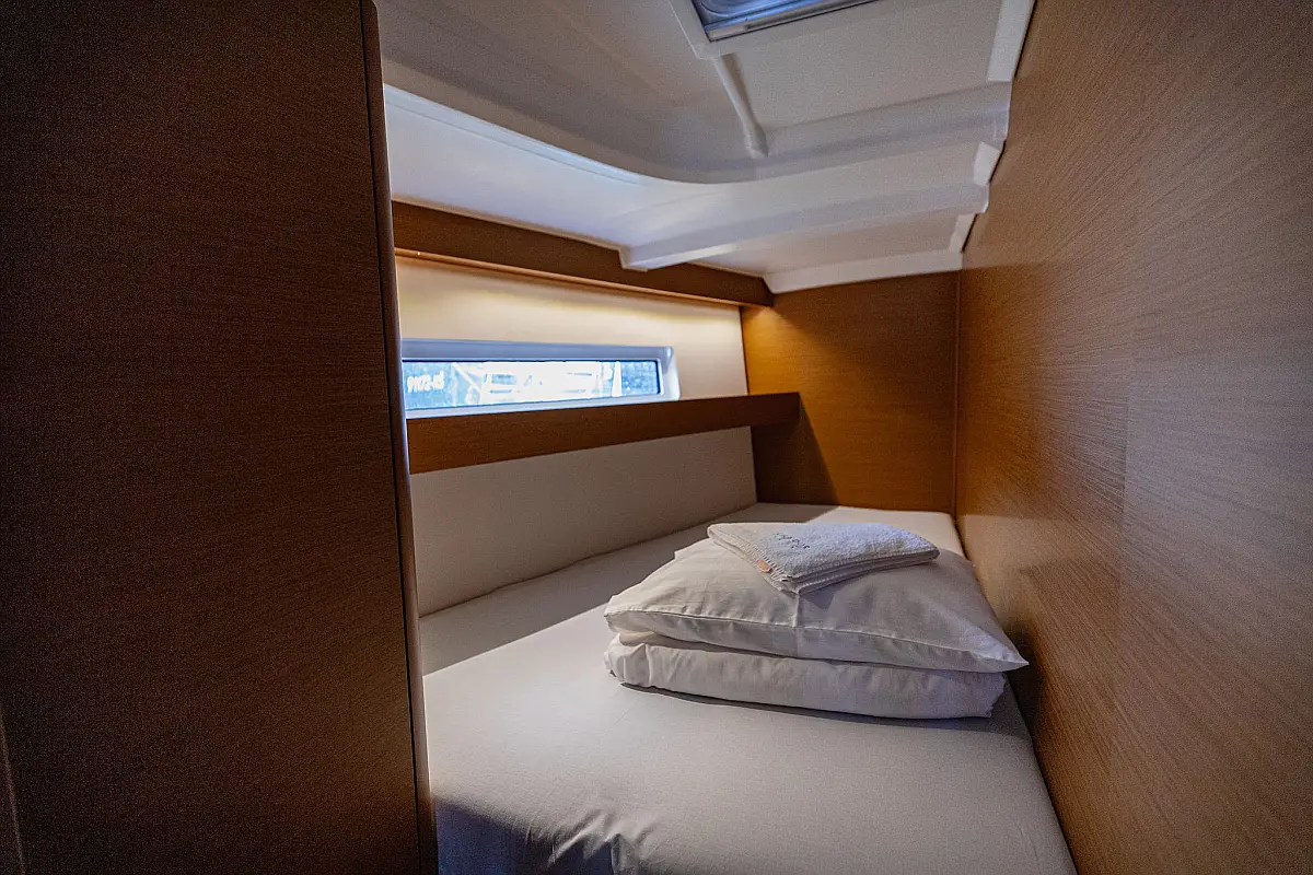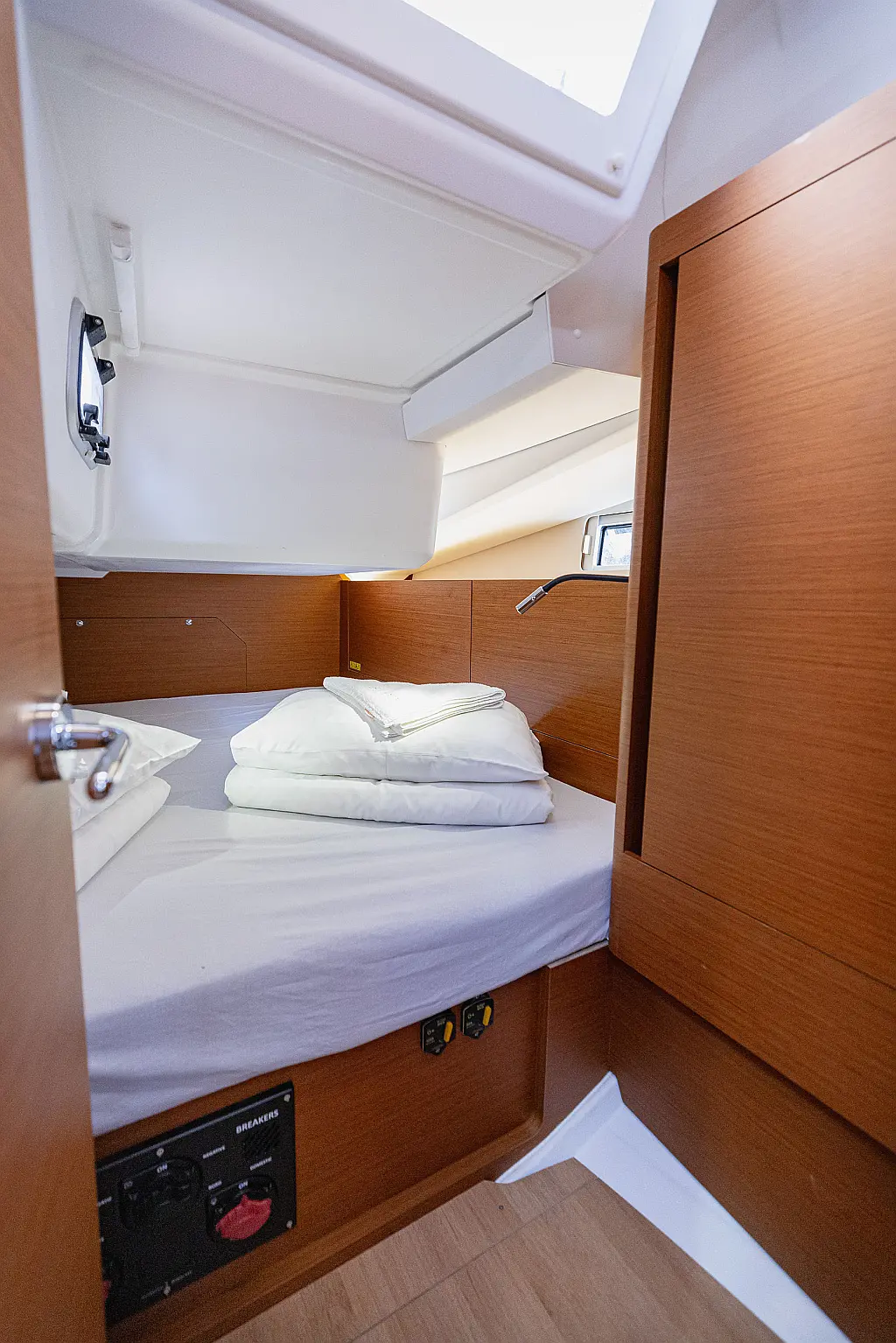 Electric winches , Cockpit speakers , Swimming platform , Teak deck , Outboard engine , Dinghy , Air condition , Sprayhood , Bimini