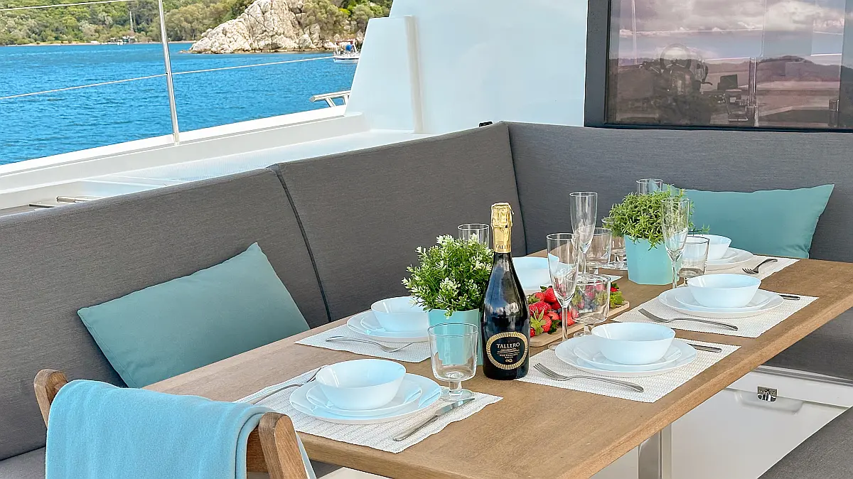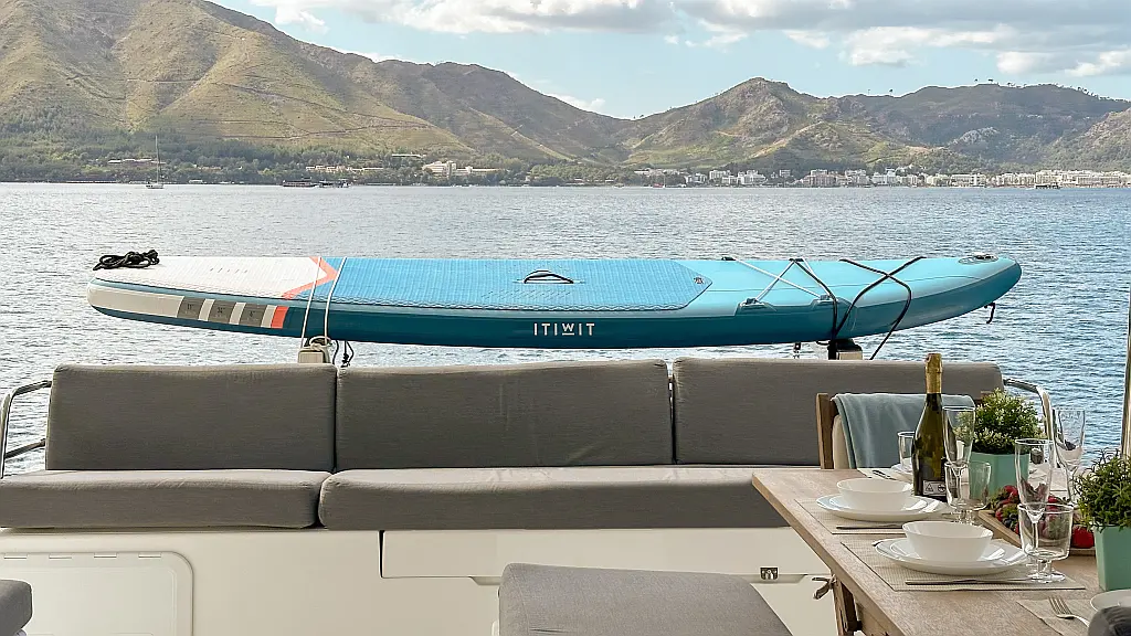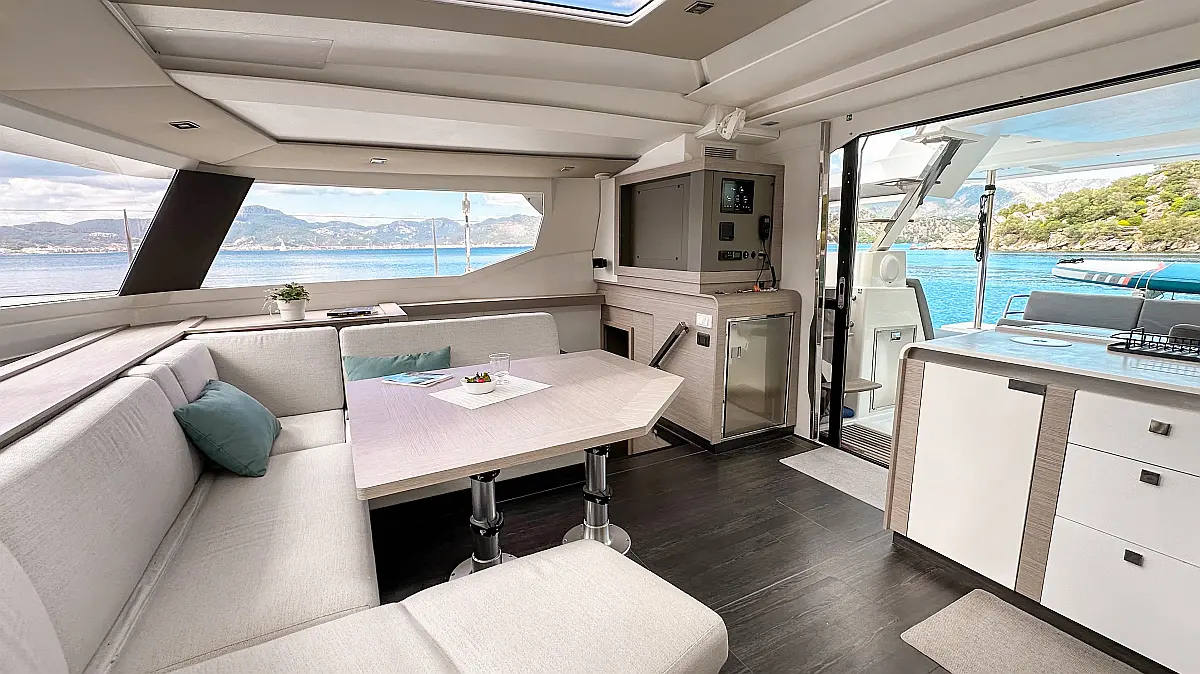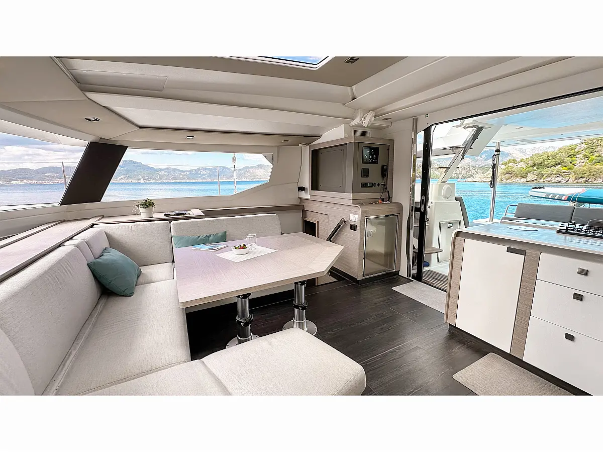 Generator , Dinghy , Coffee maker , Inverter , Air condition , Electric winches , Water maker , Refrigerator , Solar Panels , Cockpit cushions , Cockpit speakers , Wi-Fi & Internet , Electric toilet , Flybridge , Bimini , Ice maker , Outboard engine