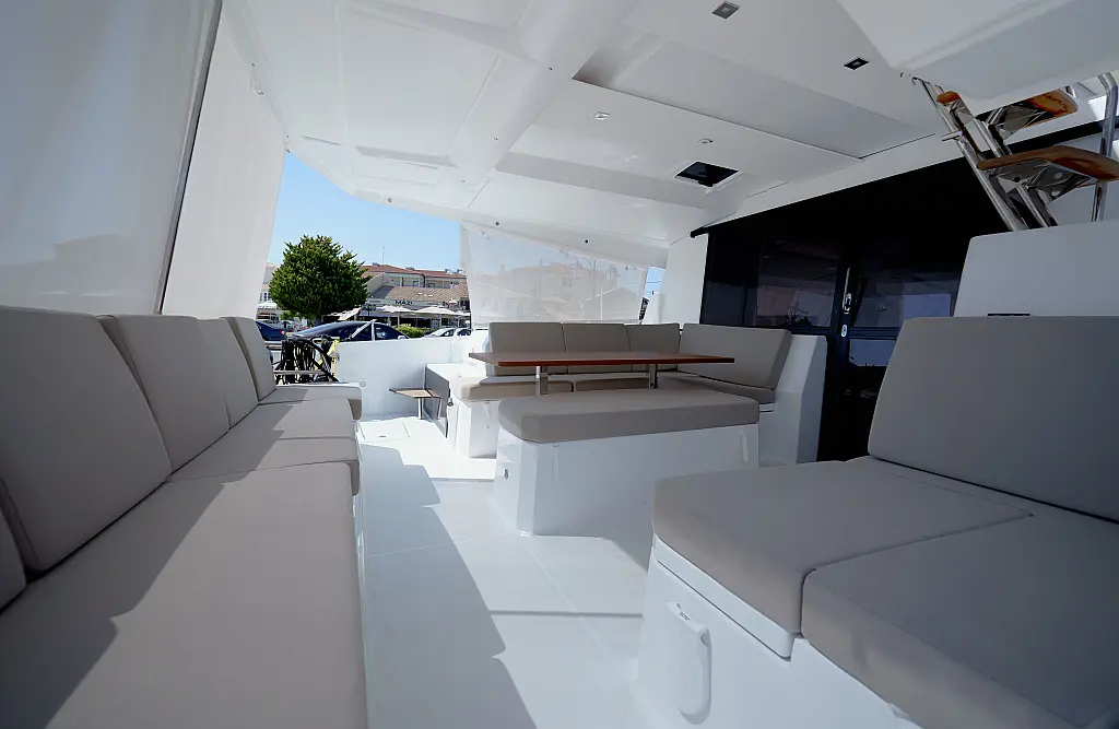 Электрические лебедки , Генератор , Электрический туалет , Кондиционер , Опреснитель морской воды , Подушки в кокпите , Динги , Спрейхуд , Плавательная платформа , Тиковый кокпит , Солнечные панели