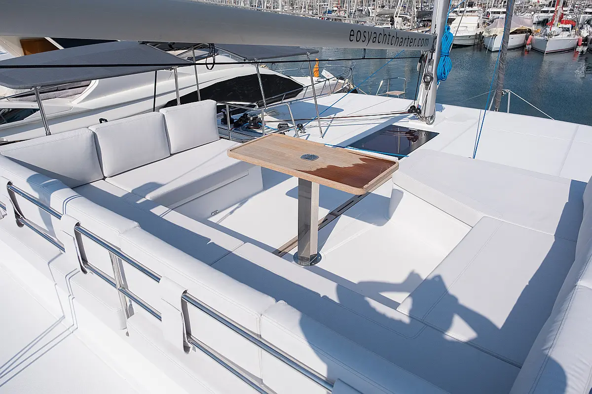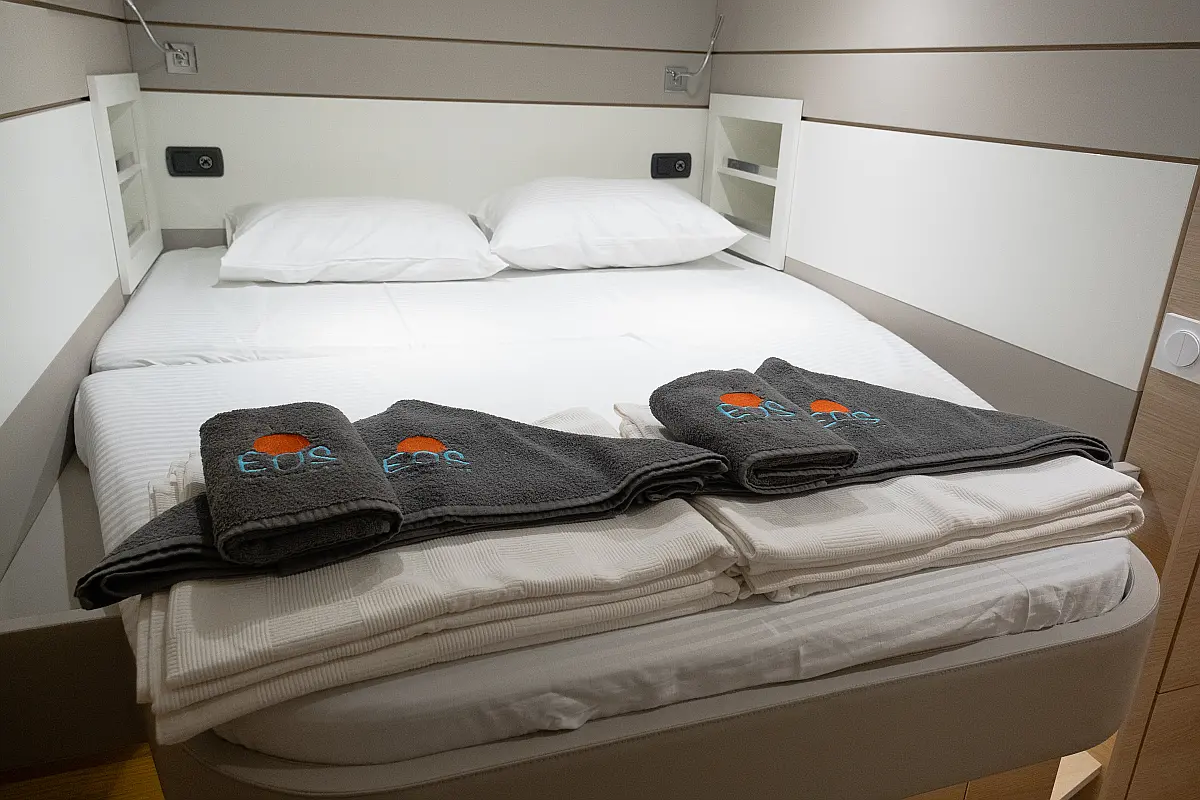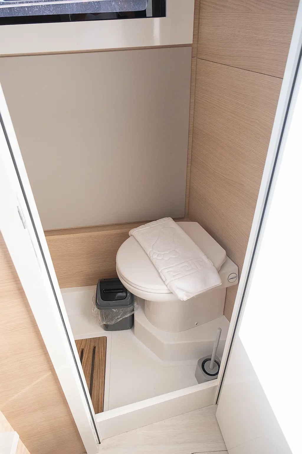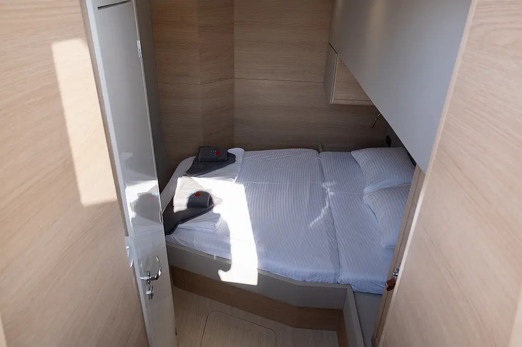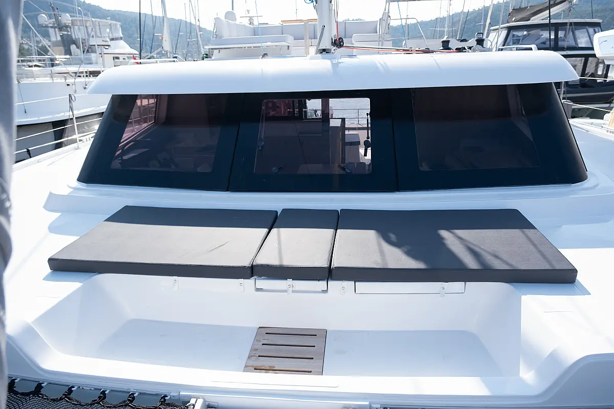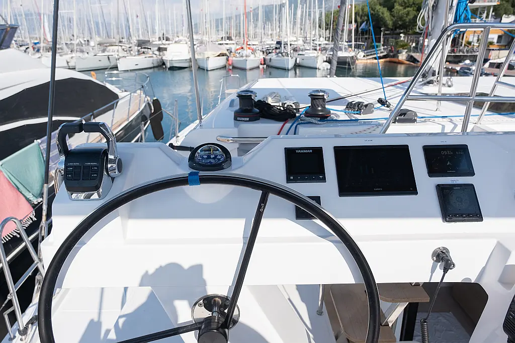 Электрический туалет , Кофеварка , Солнечные панели , Генератор , Кондиционер , Опреснитель морской воды , Инвертор , Холодильник , Подвесной мотор , Динги , Бимини , Подушки в кокпите