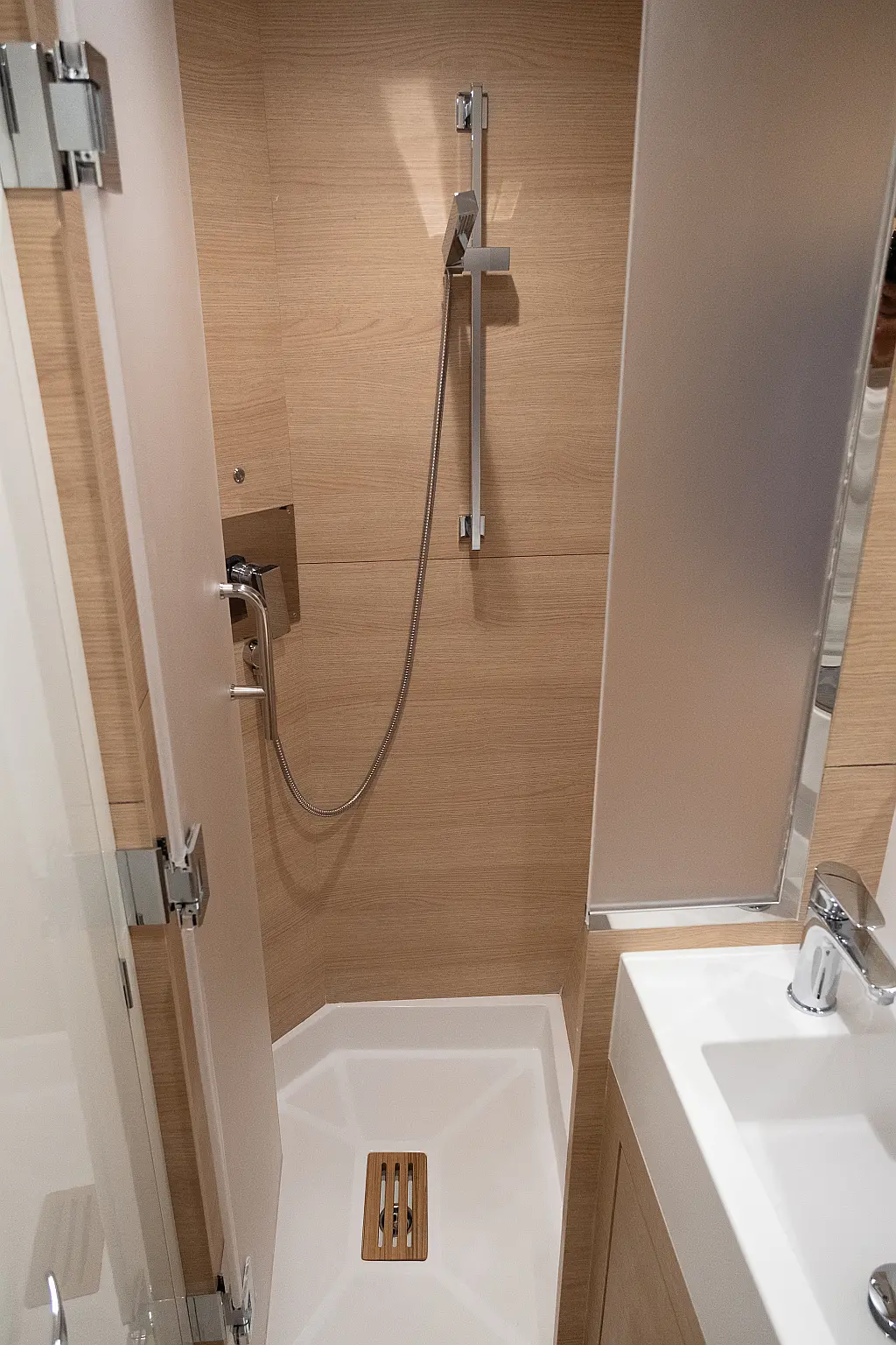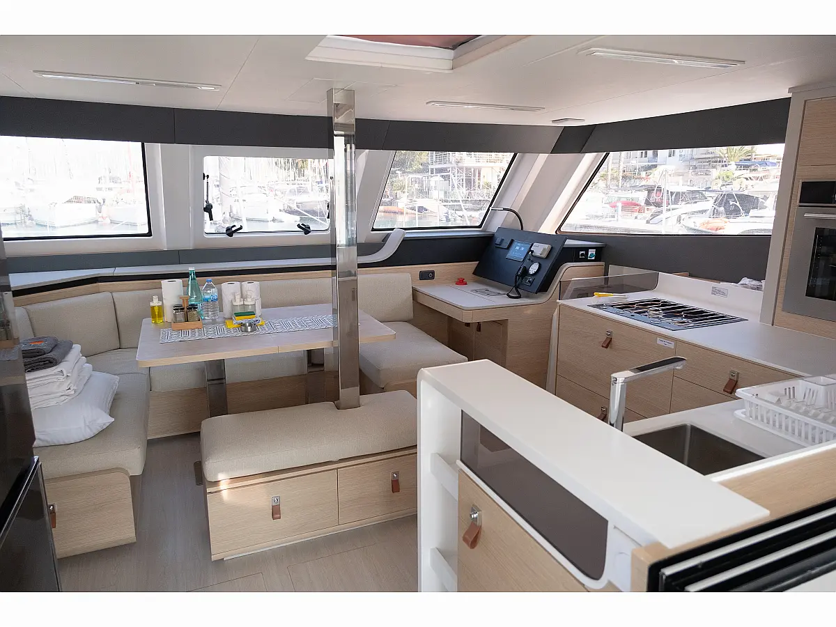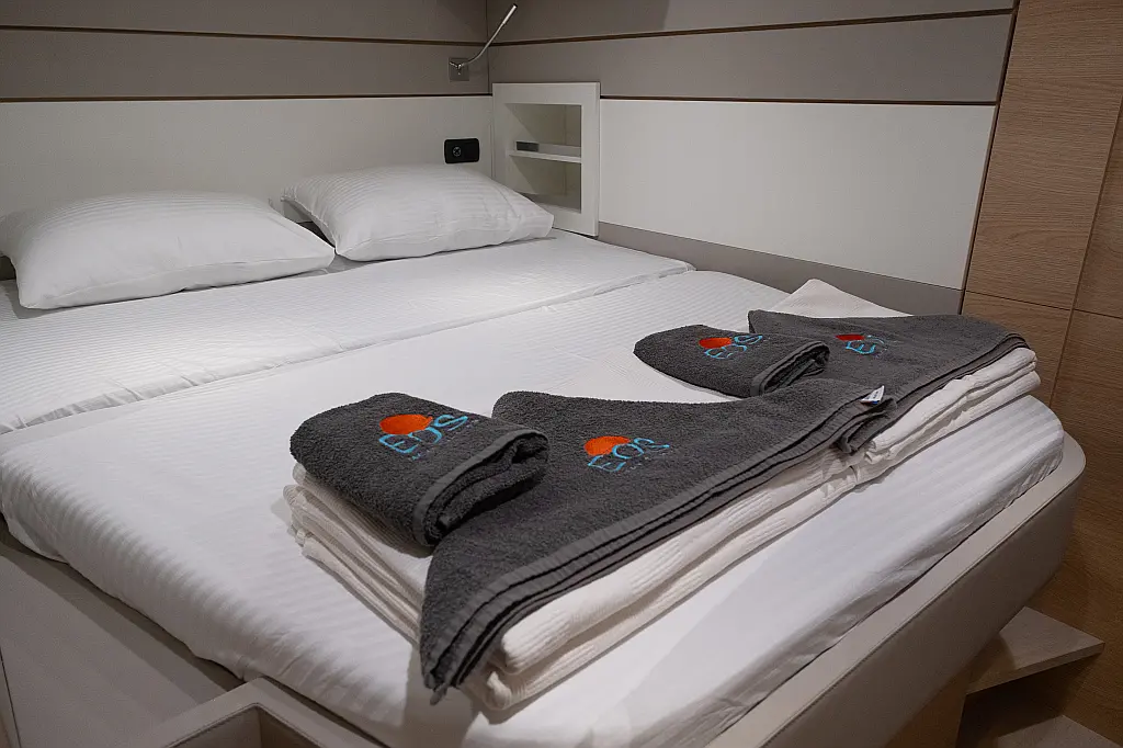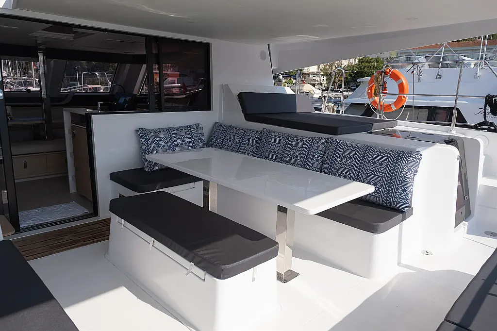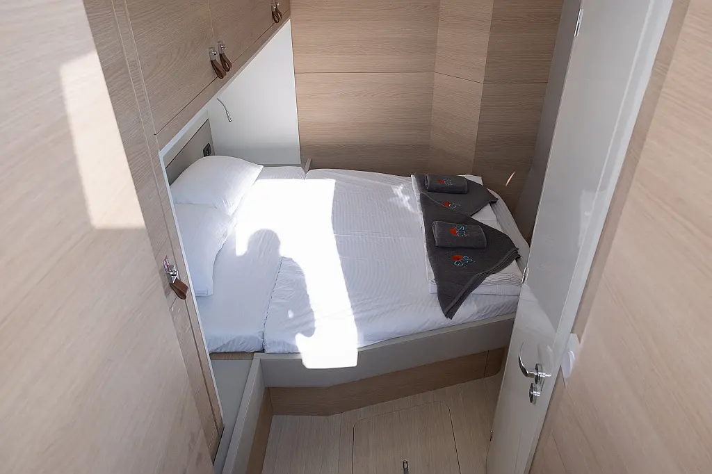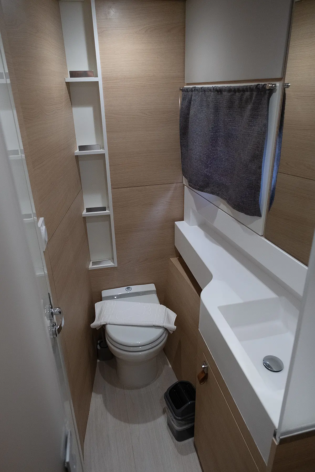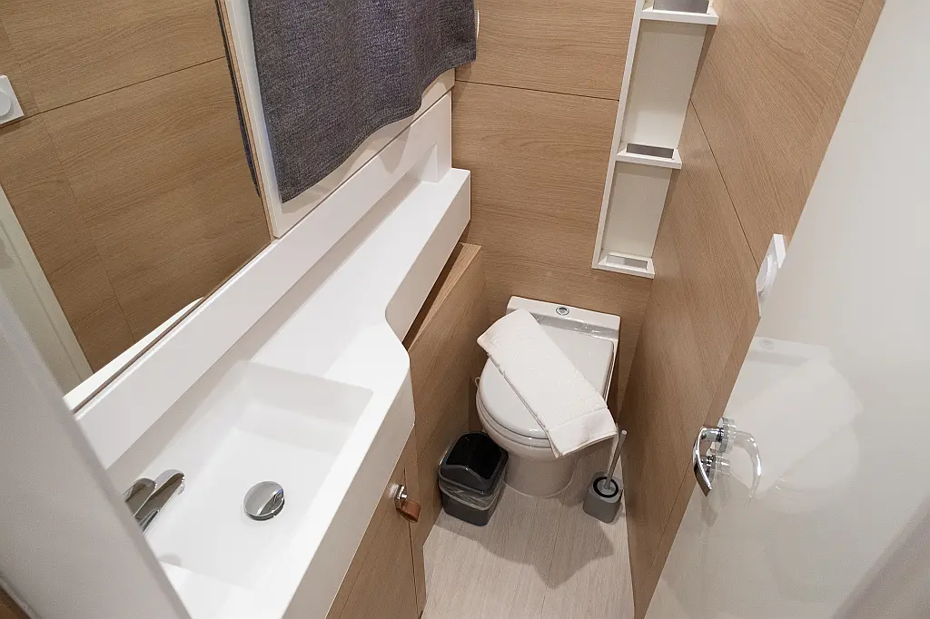 Электрический туалет , Кофеварка , Солнечные панели , Генератор , Кондиционер , Опреснитель морской воды , Инвертор , Холодильник , Подвесной мотор , Динги , Бимини , Подушки в кокпите