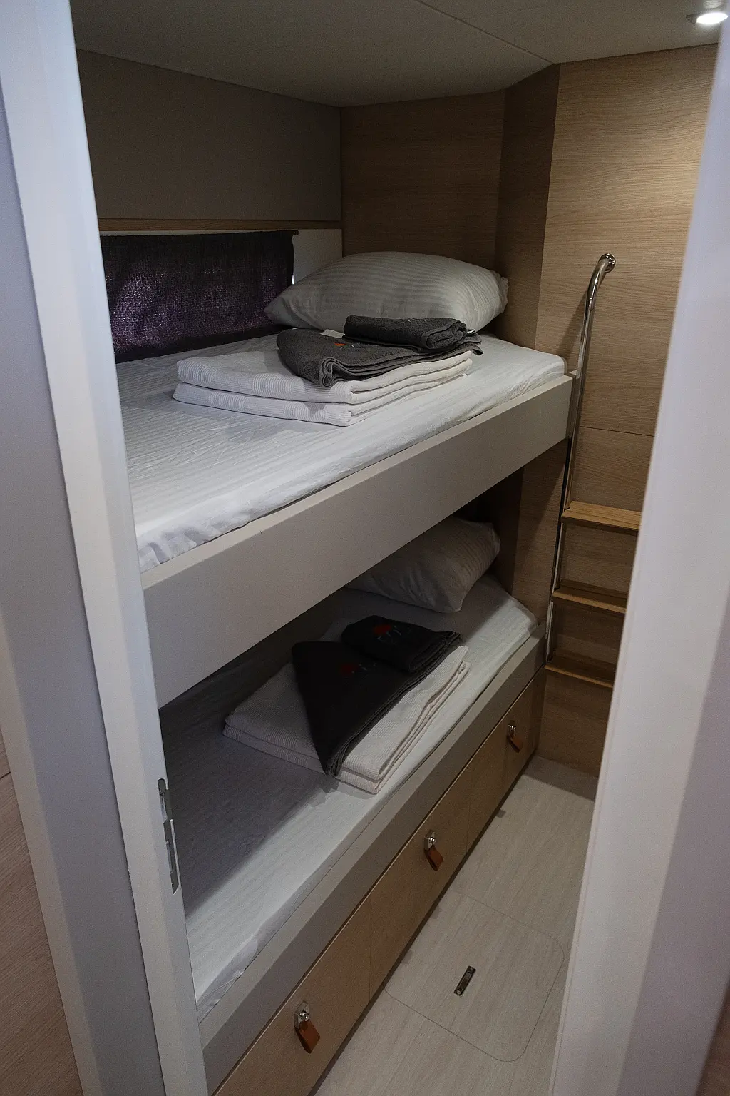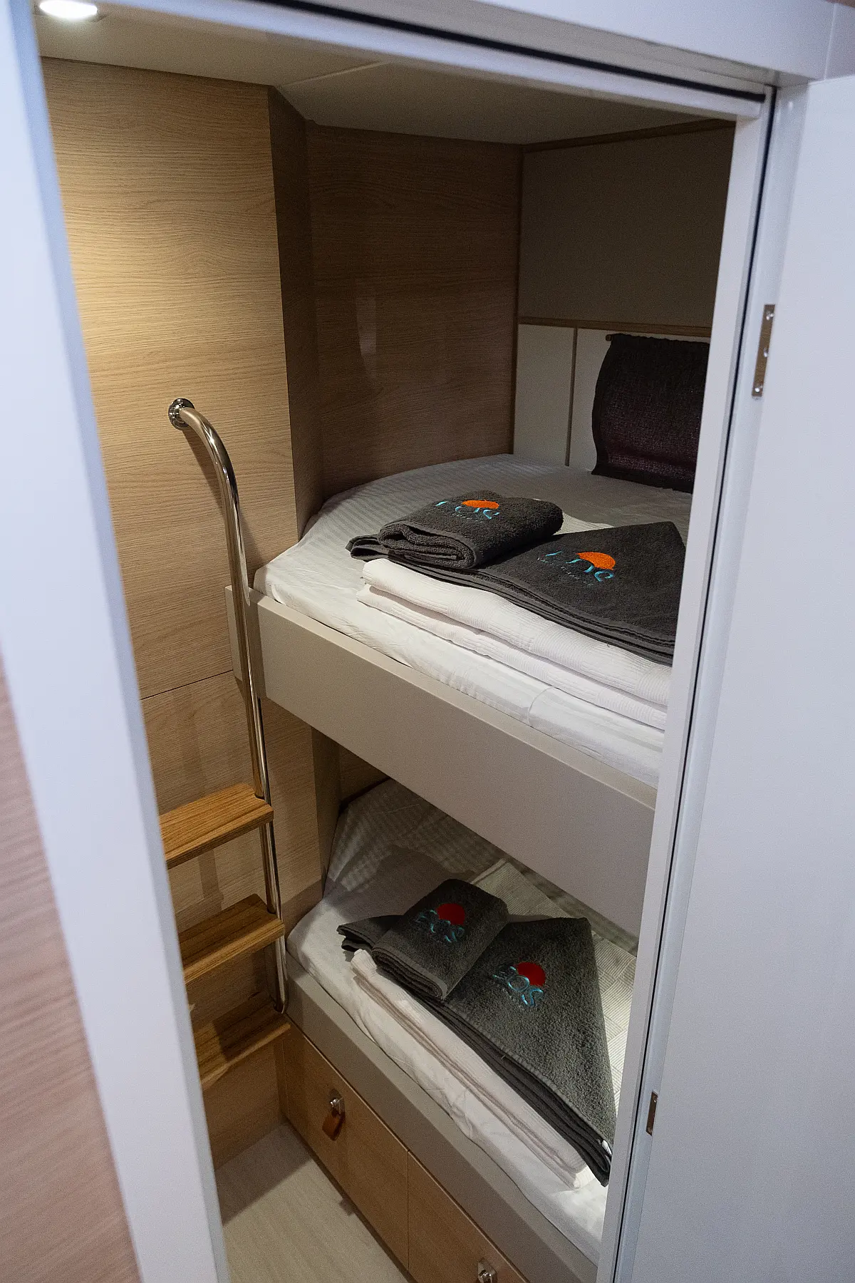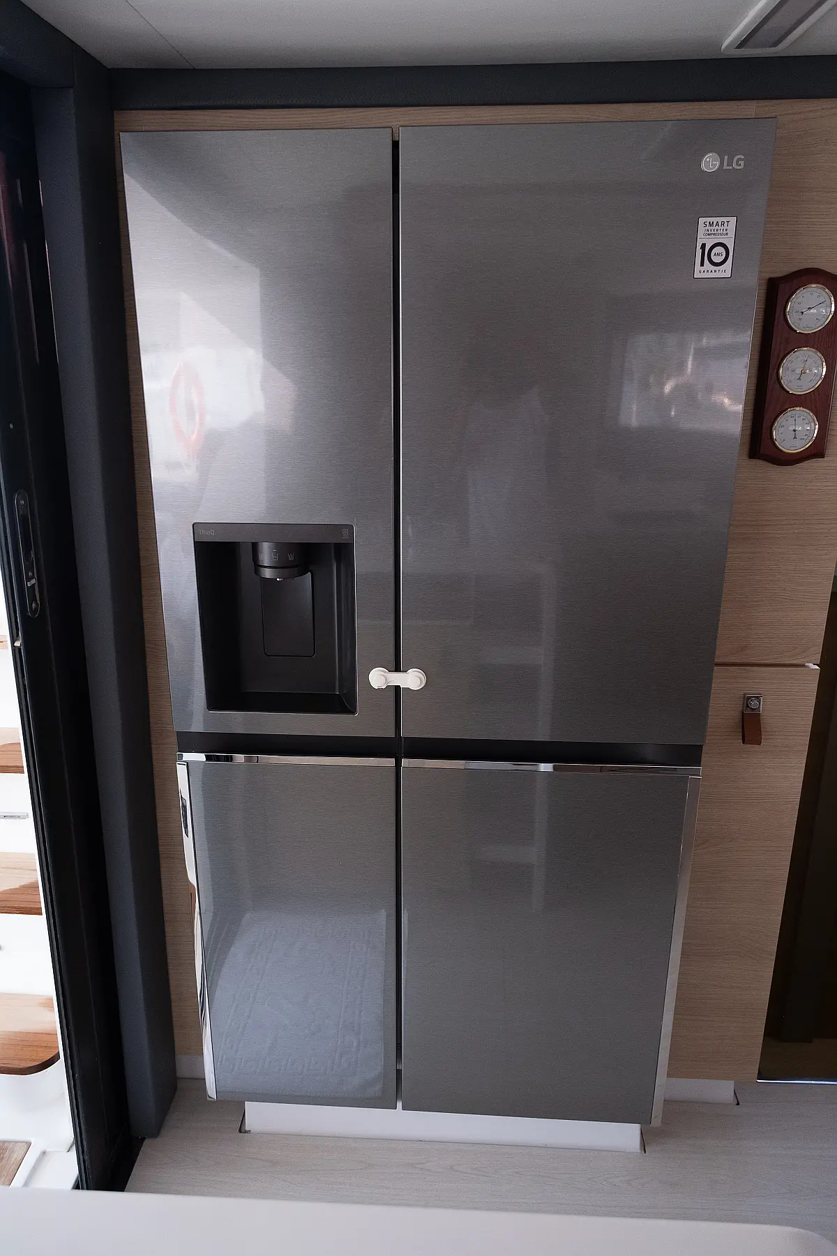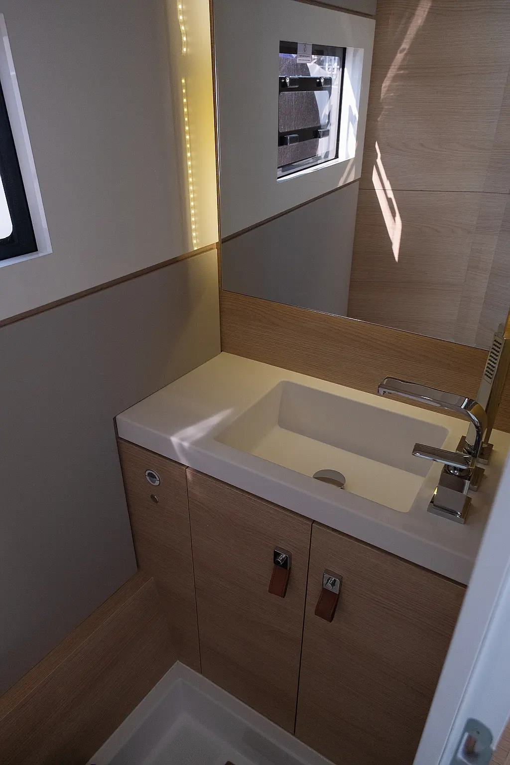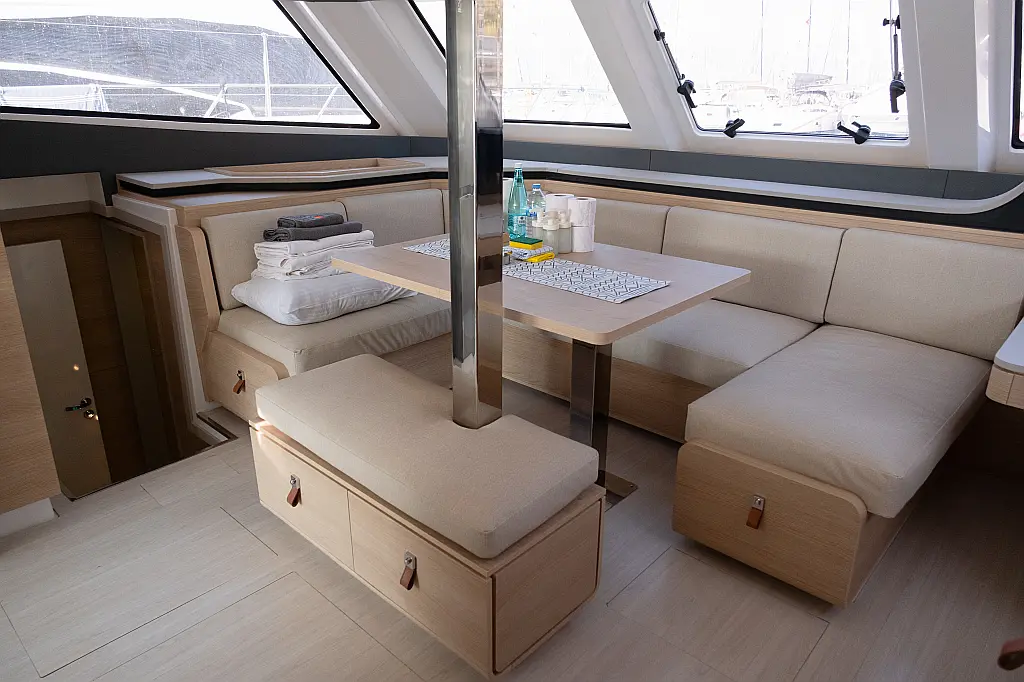 Электрический туалет , Кофеварка , Солнечные панели , Генератор , Кондиционер , Опреснитель морской воды , Инвертор , Холодильник , Подвесной мотор , Динги , Бимини , Подушки в кокпите