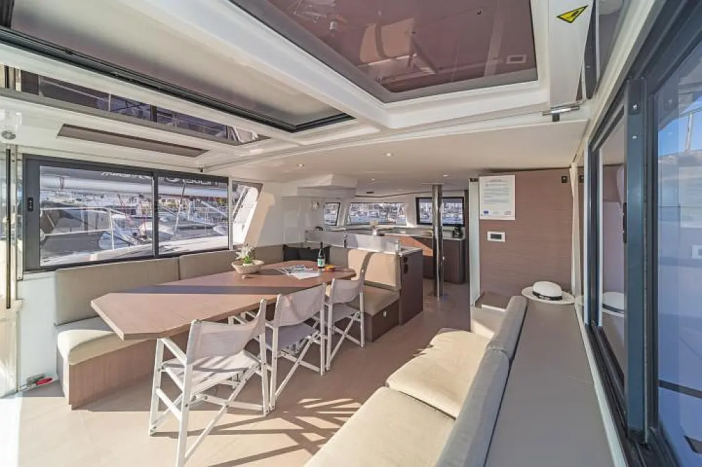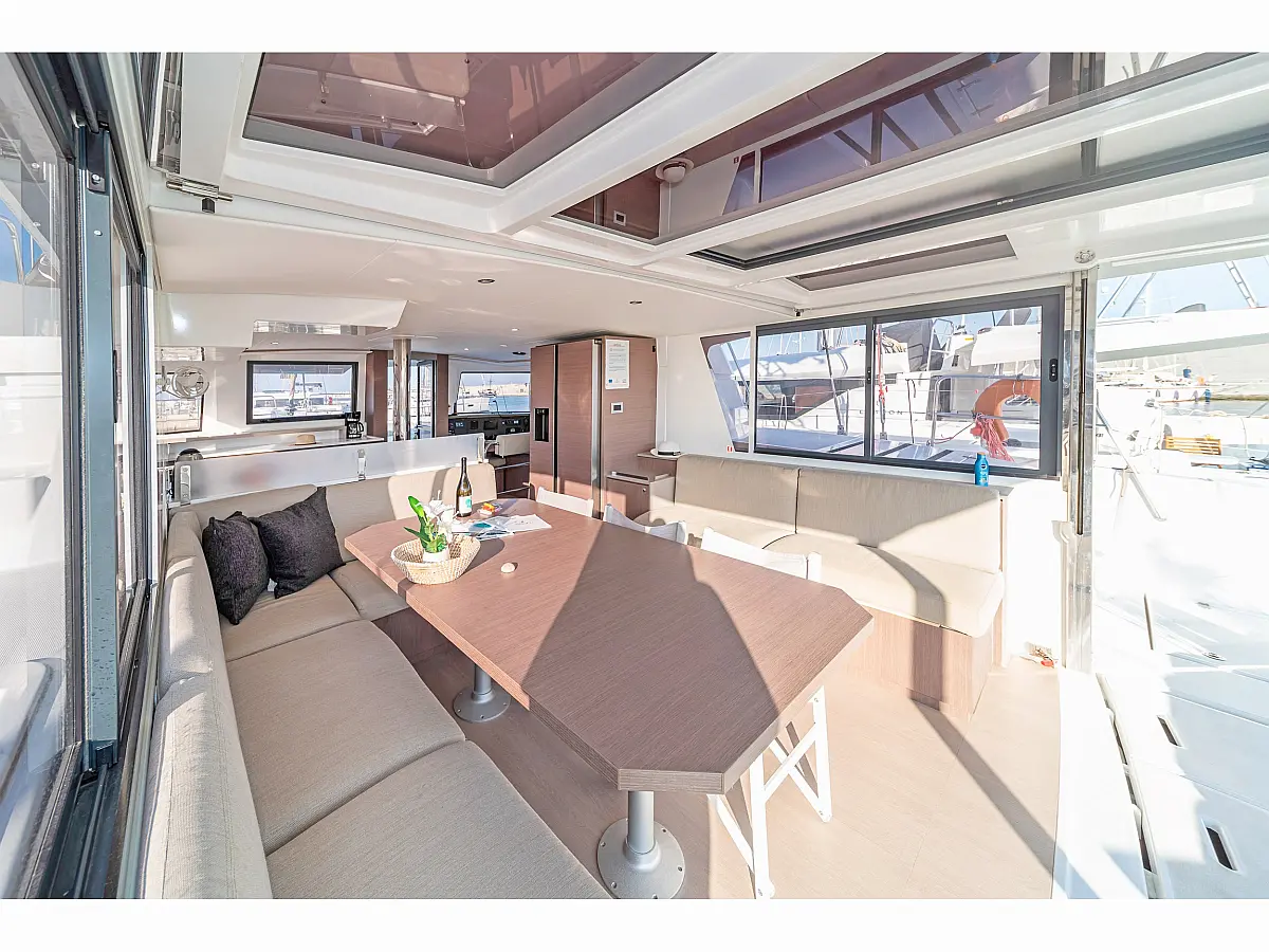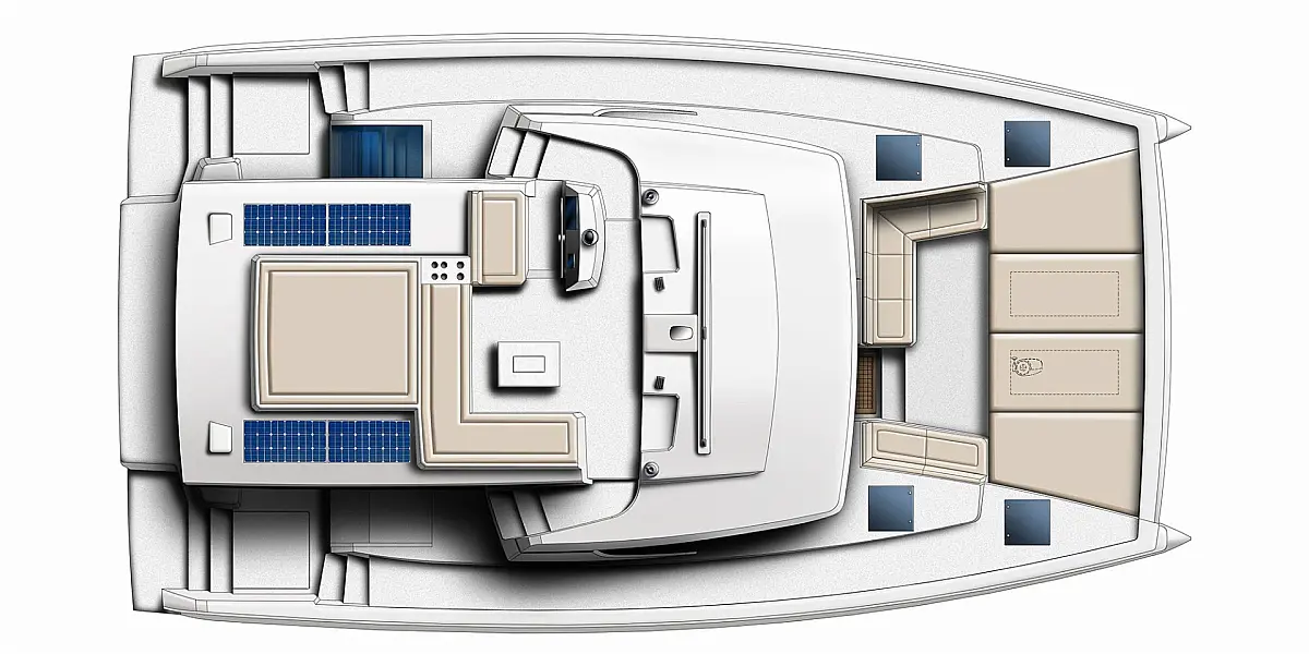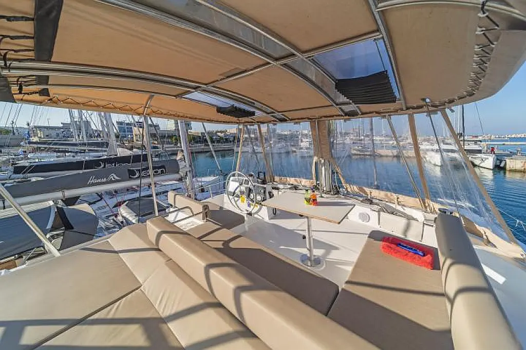 Бимини , Сточный бак , Кондиционер , Генератор , Опреснитель морской воды , Инвертор , Динги , Электрический туалет , Холодильник , Подушки в кокпите , Солнечные панели , Динамики в кокпите