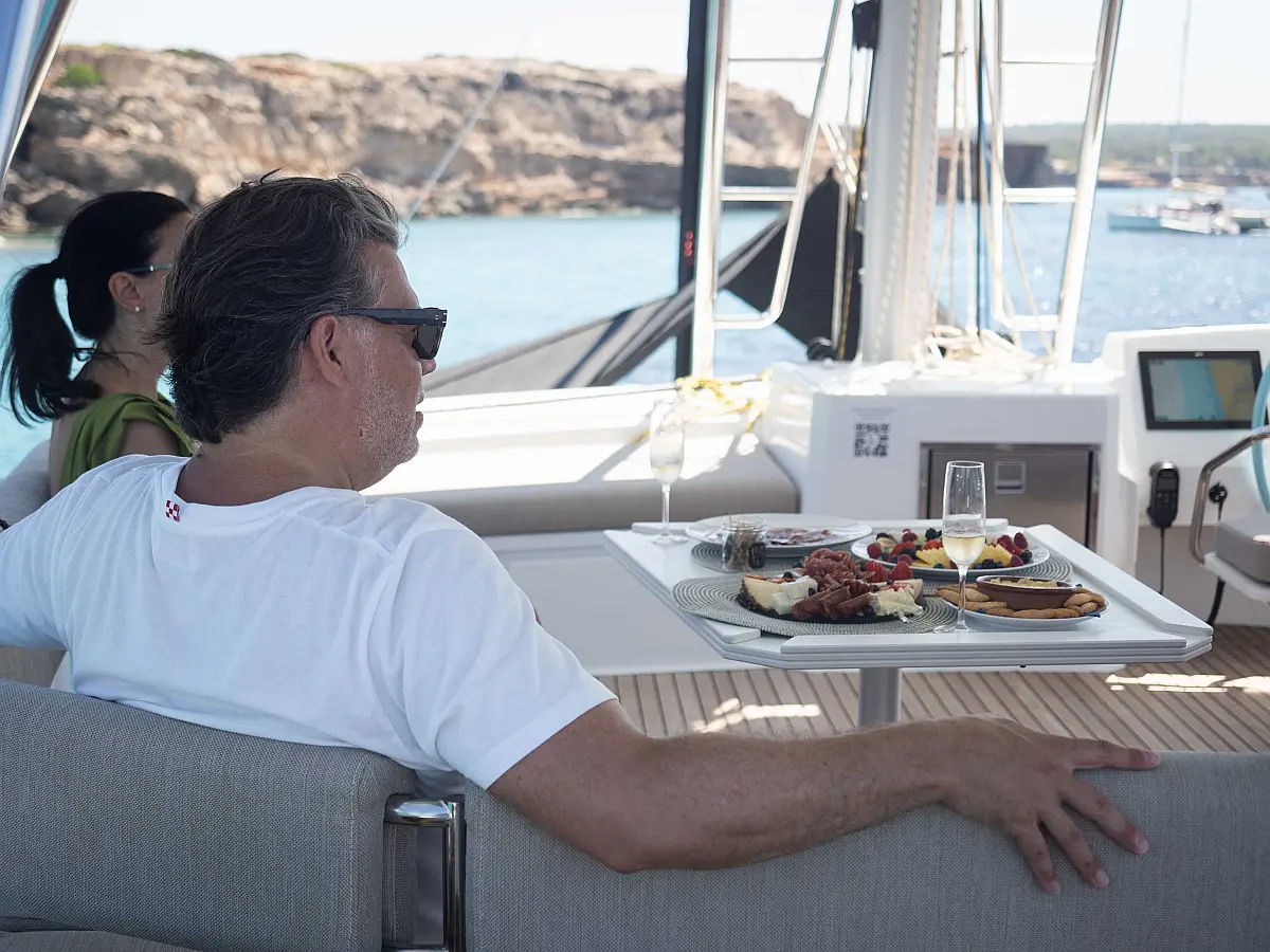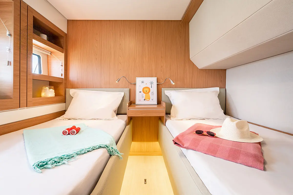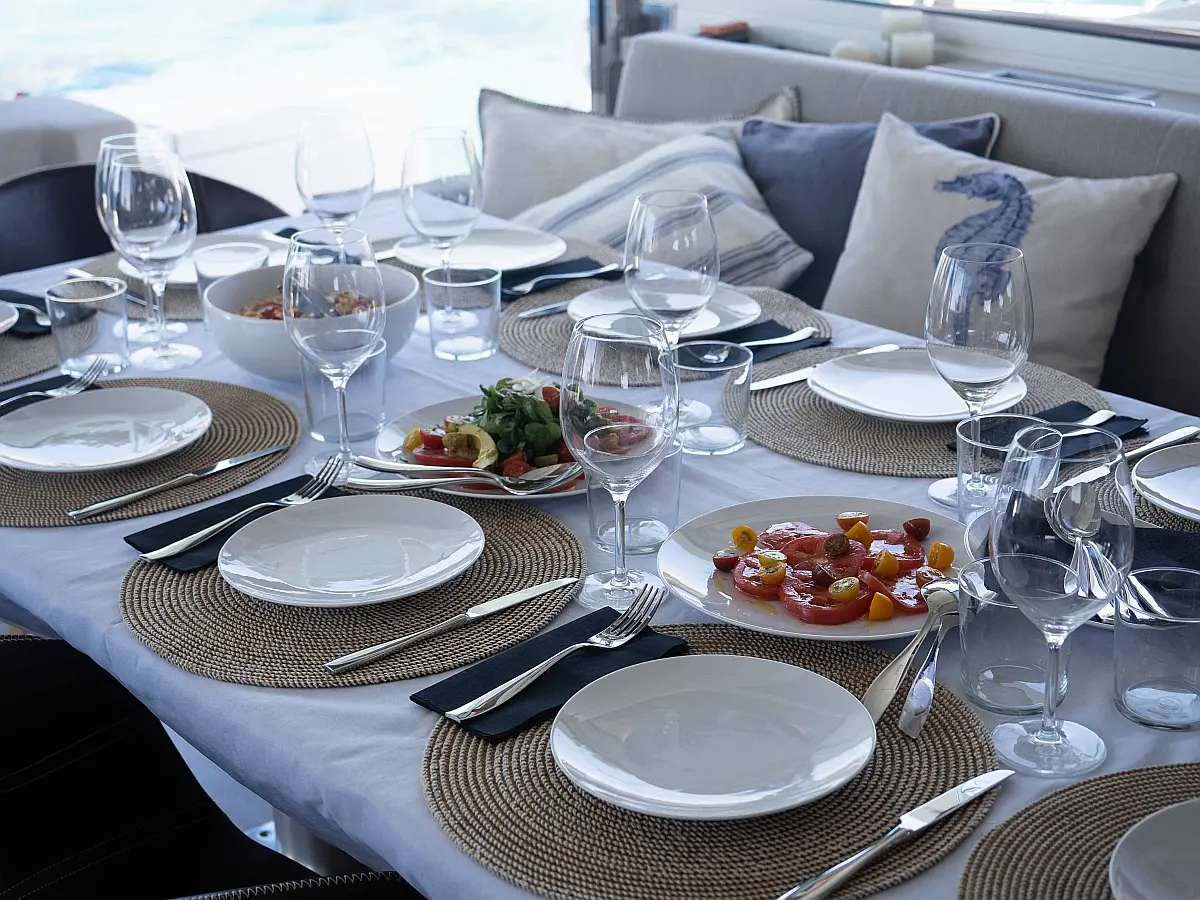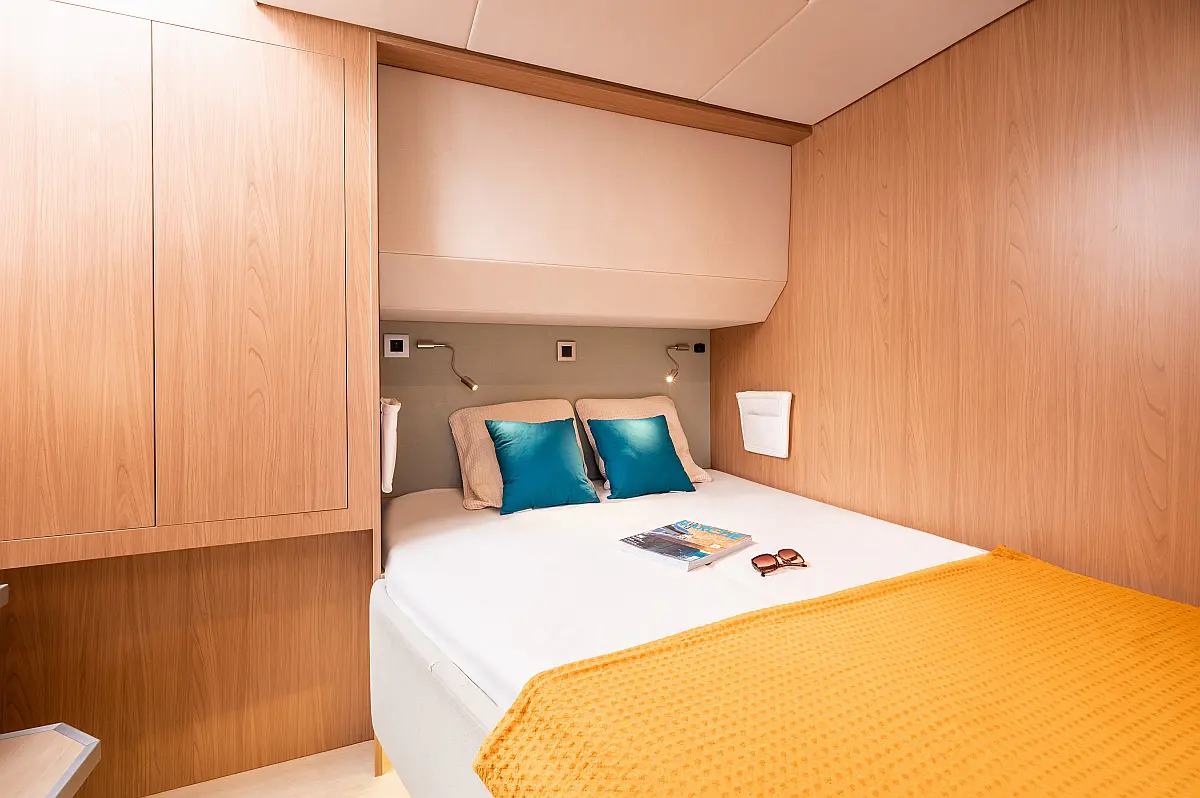 Холодильник , Электрический туалет , Опреснитель морской воды , Солнечные панели , Кондиционер , Инвертор , Электрические лебедки , Тиковая палуба , Динги