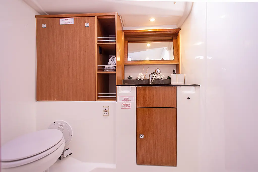 Холодильник , Кофеварка , Солнечные панели , Отопление , Электрический туалет , Кондиционер , Инвертор , Динамики в кокпите , Динги