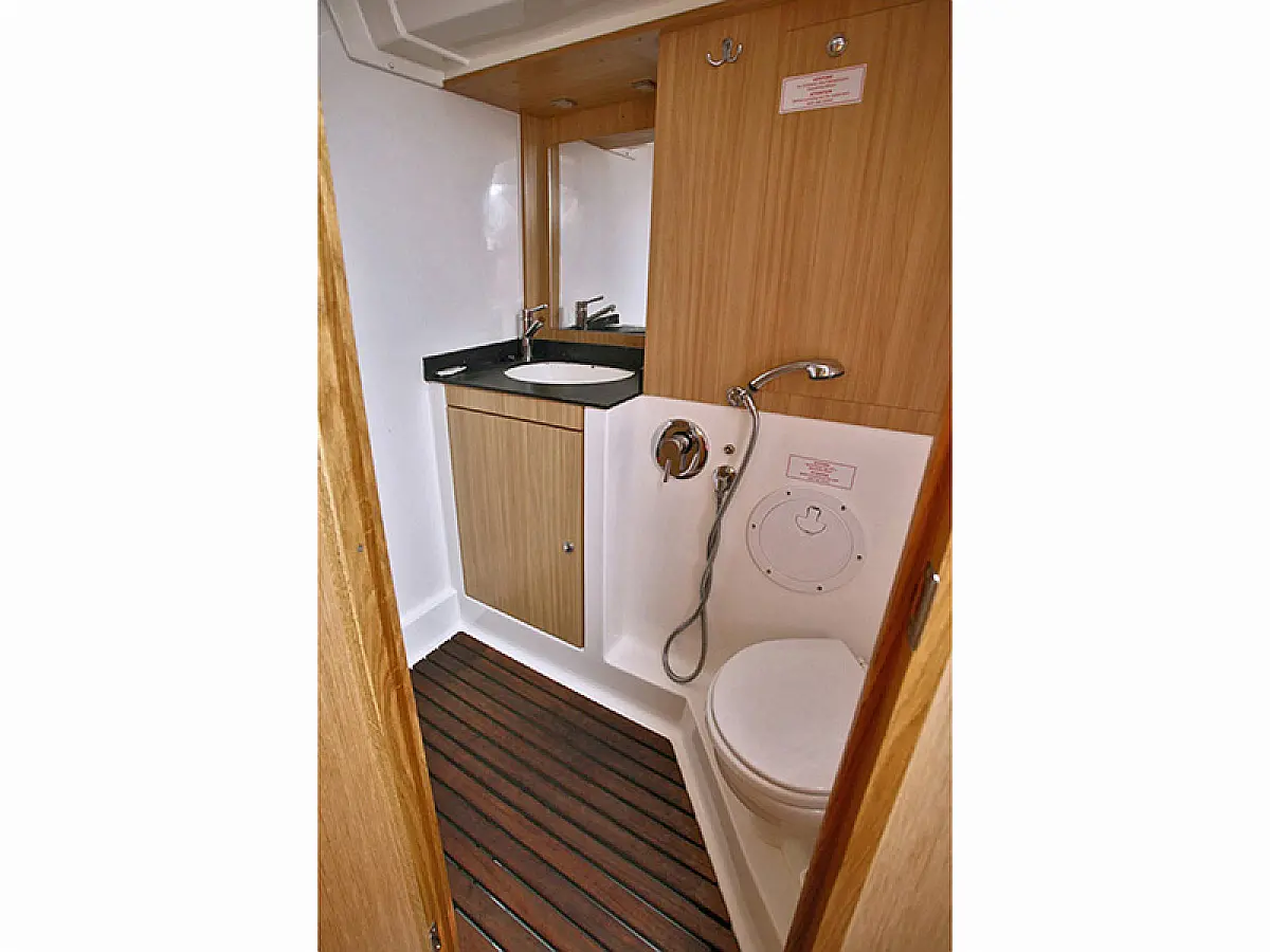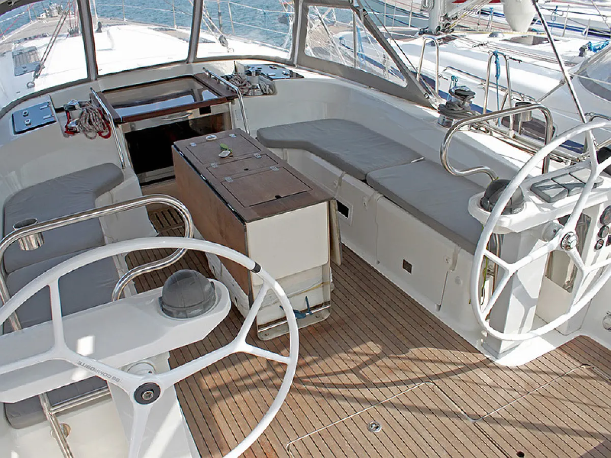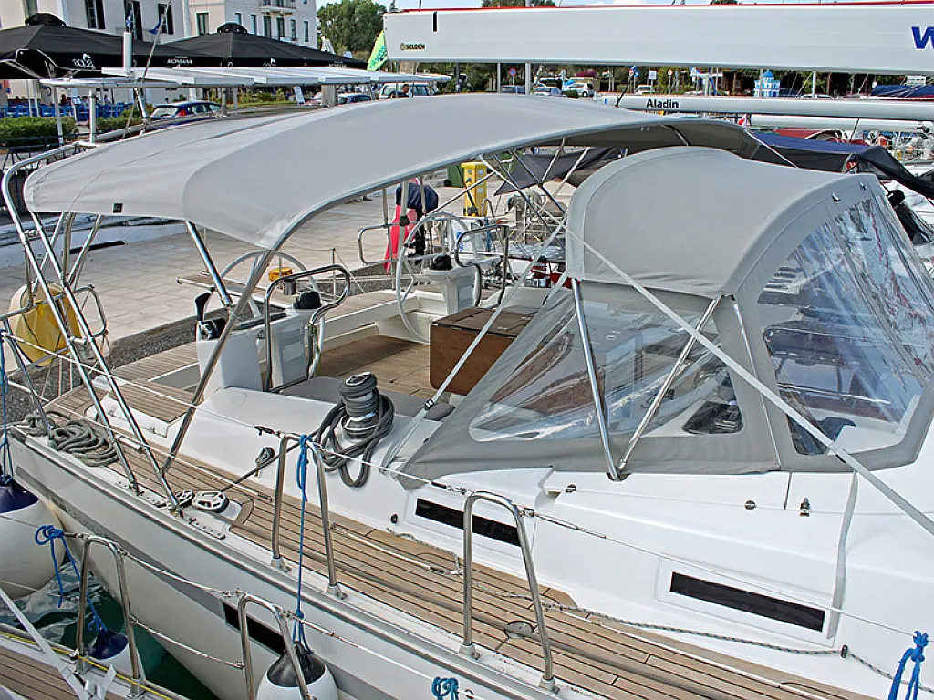 Электрический туалет , Тиковая палуба , Плавательная платформа , Холодильник , Подушки в кокпите , Инвертор , Динги , Бимини , Спрейхуд , Солнечные панели , Wi-Fi и Интернет