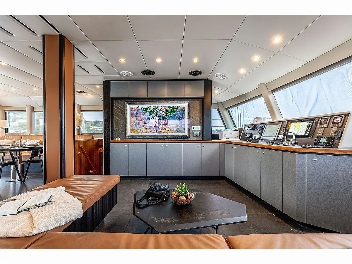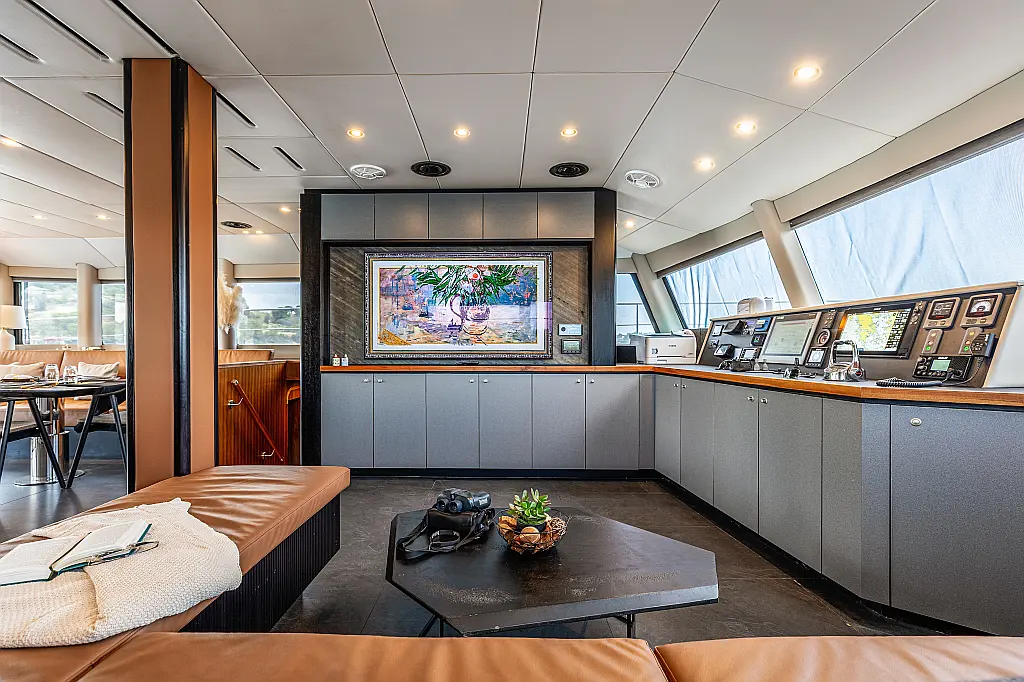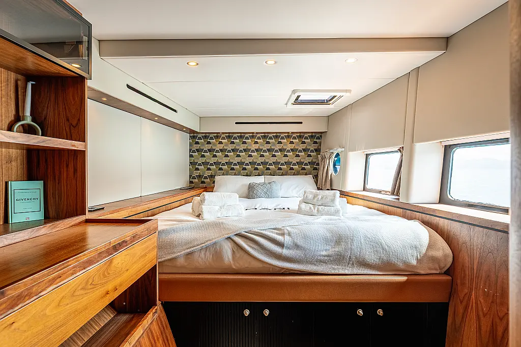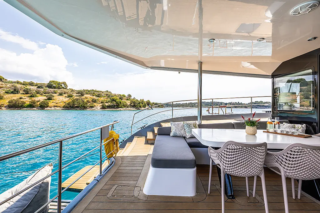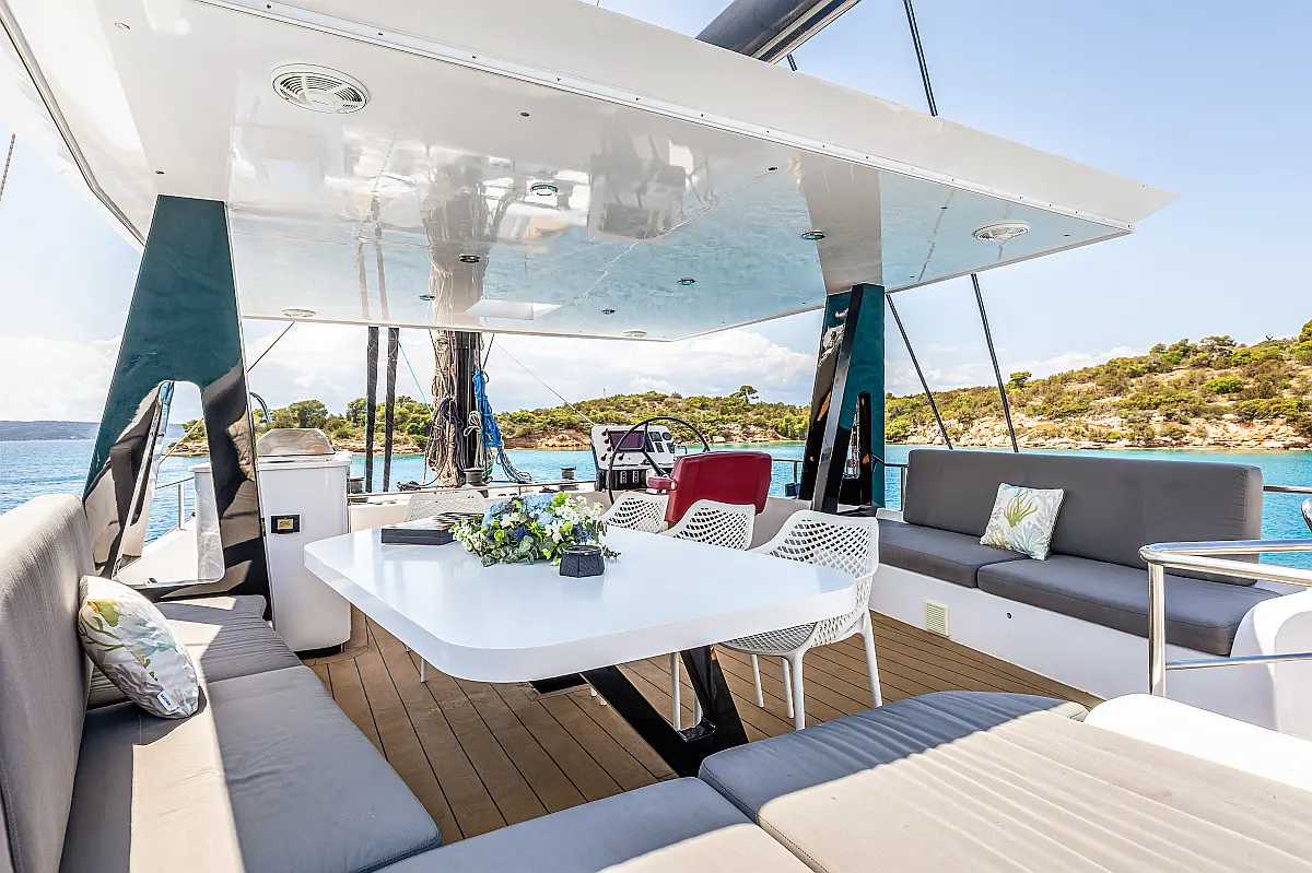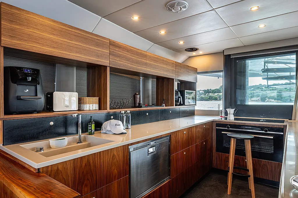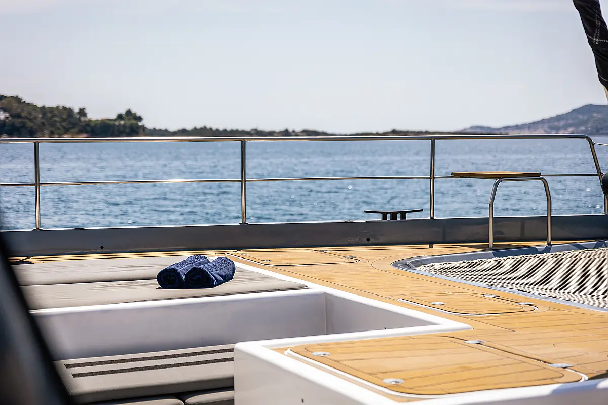 Генератор , Динги , Кондиционер , Гриль в кокпите , Гидравлический трап , Плавательная платформа , Опреснитель морской воды , Солнечные панели
