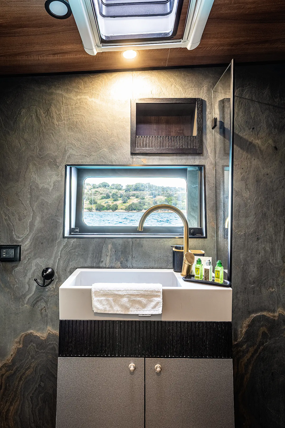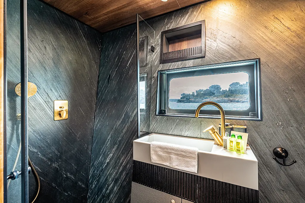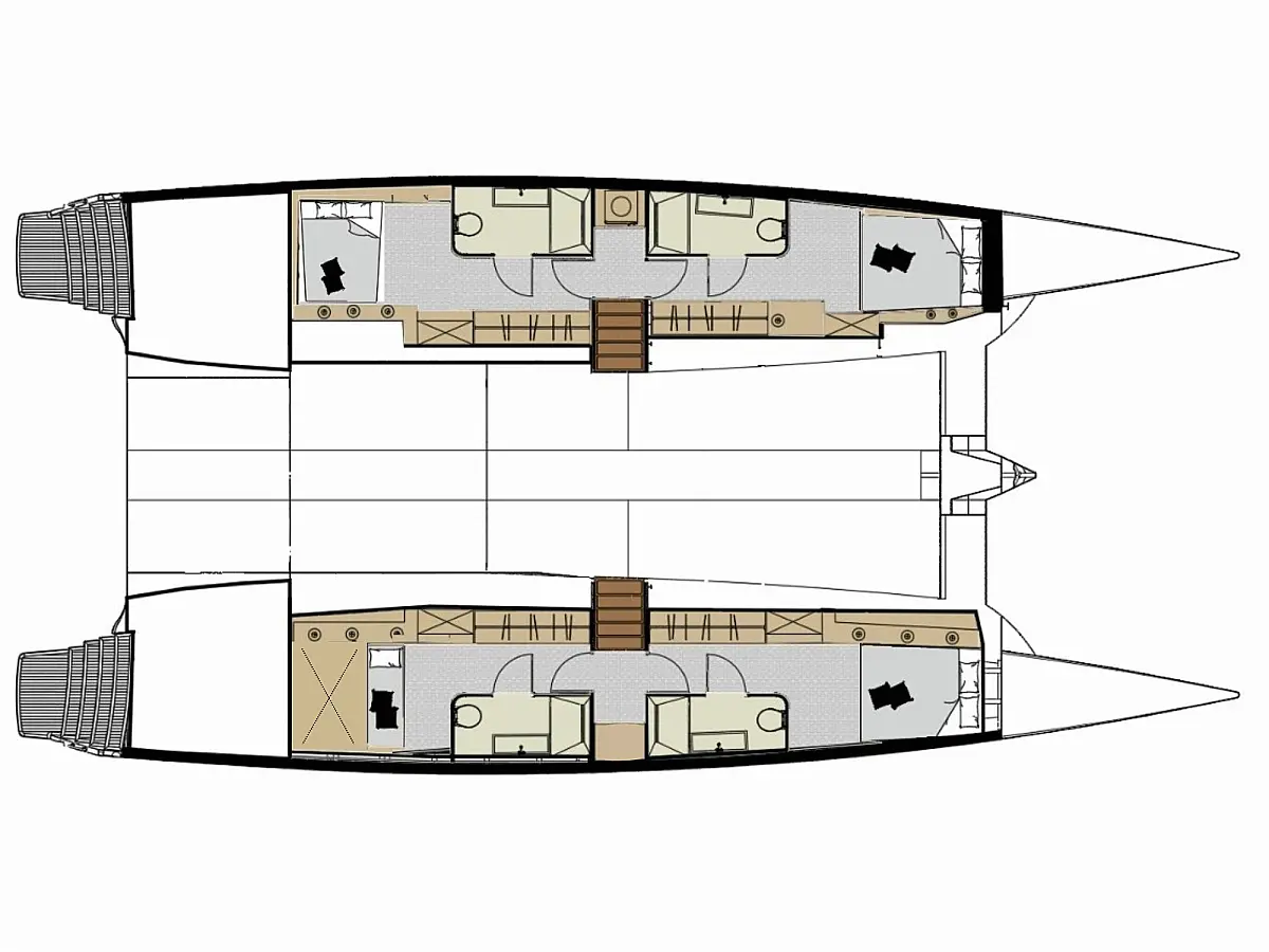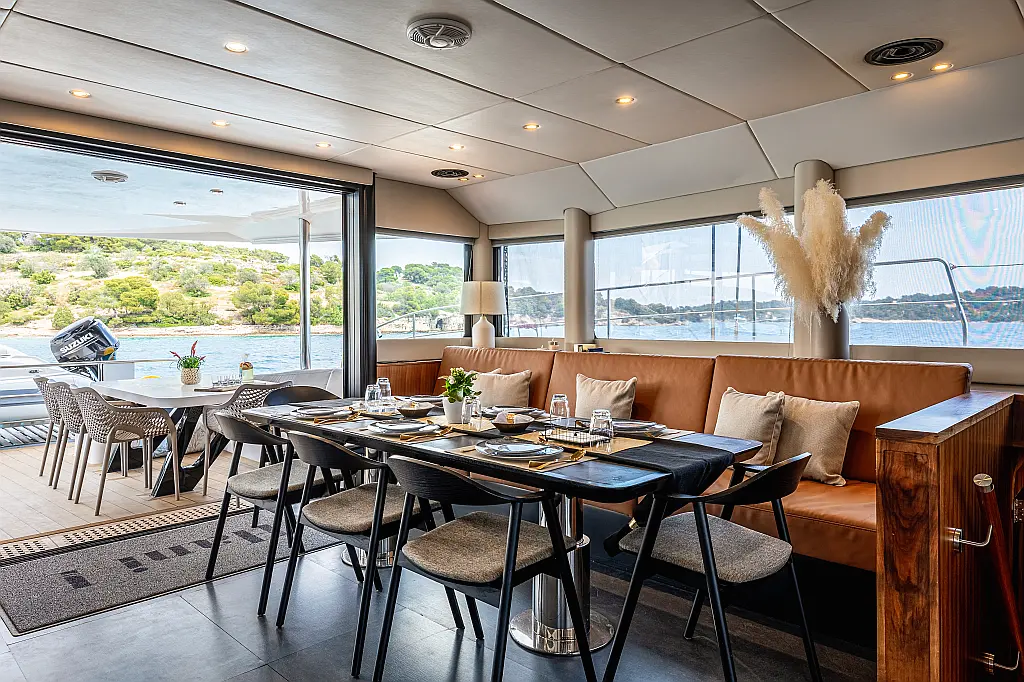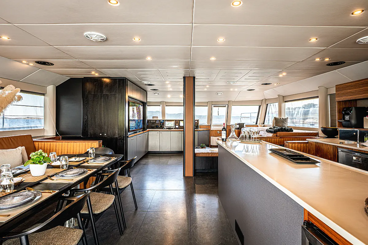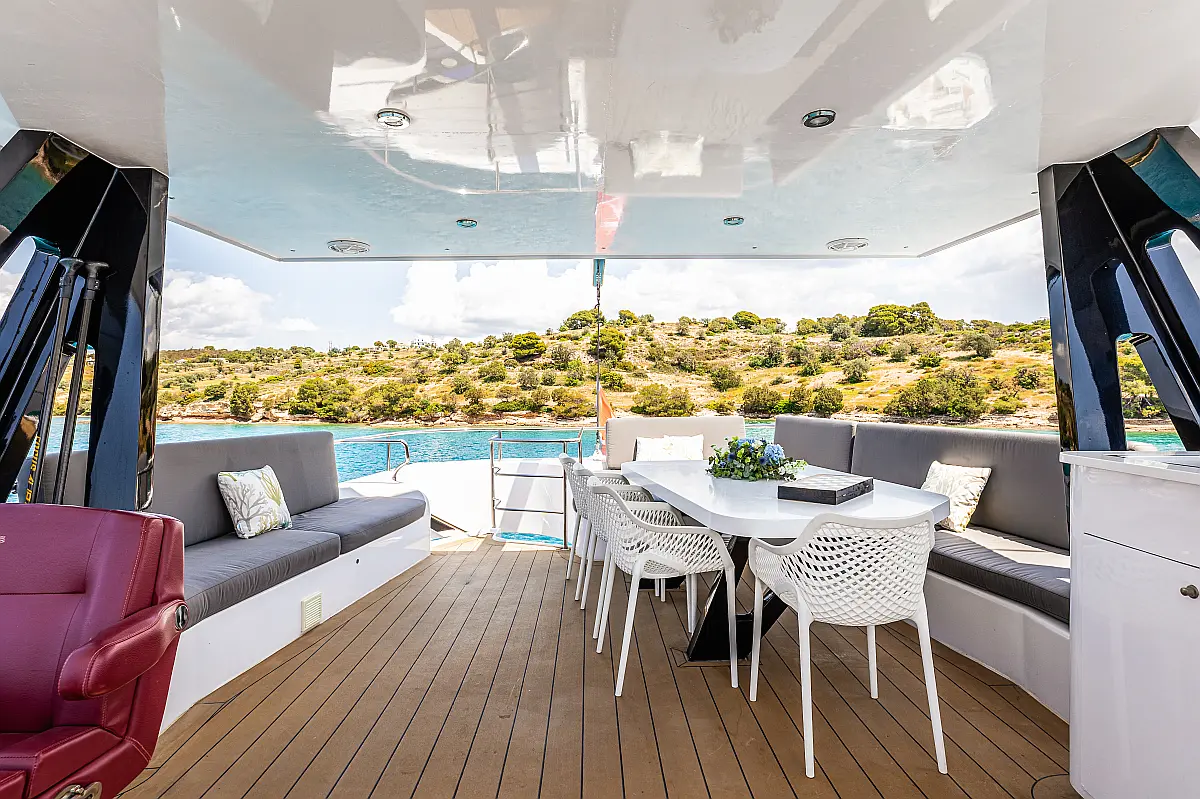 Генератор , Динги , Кондиционер , Гриль в кокпите , Гидравлический трап , Плавательная платформа , Опреснитель морской воды , Солнечные панели