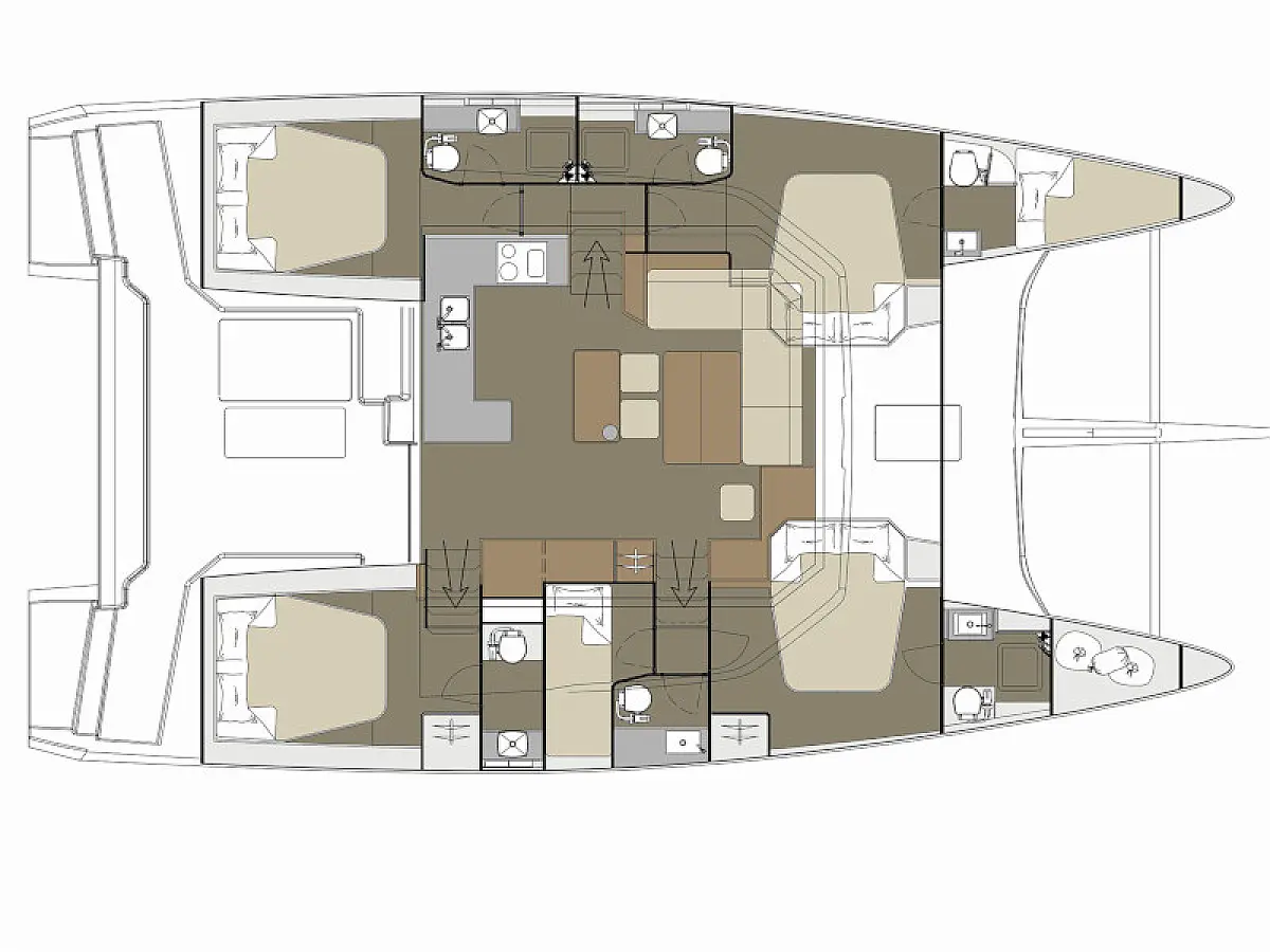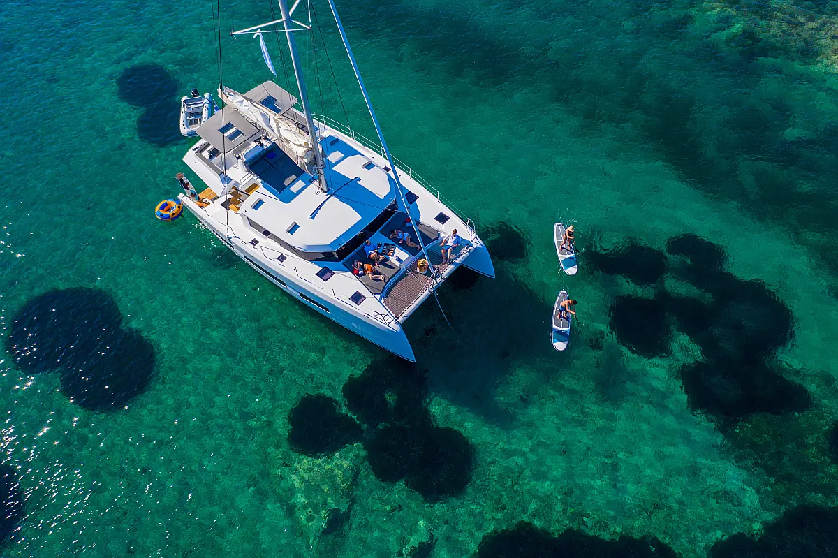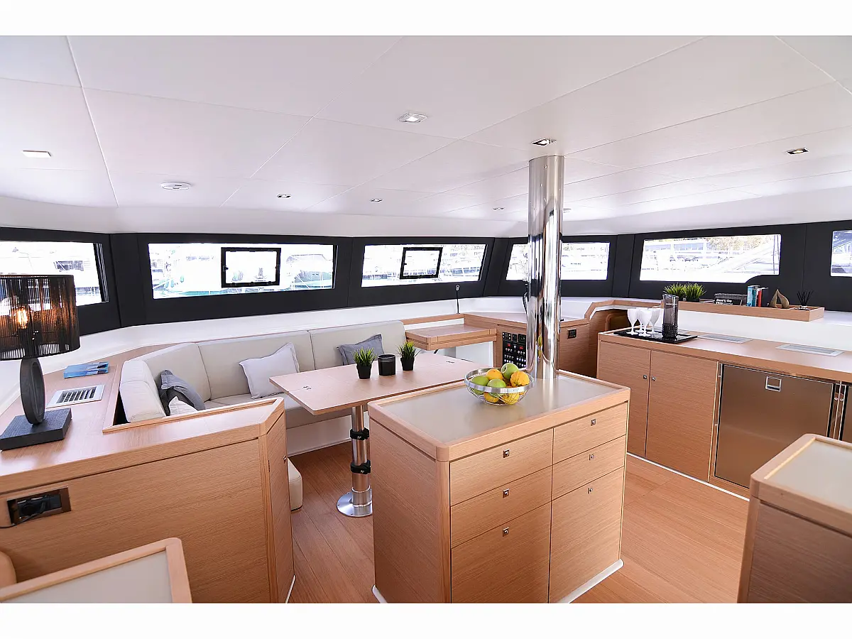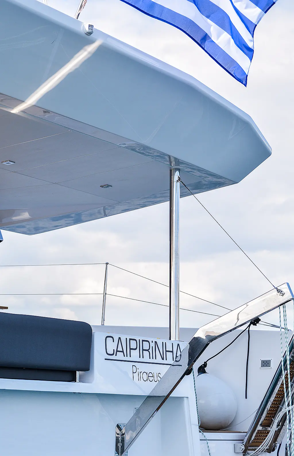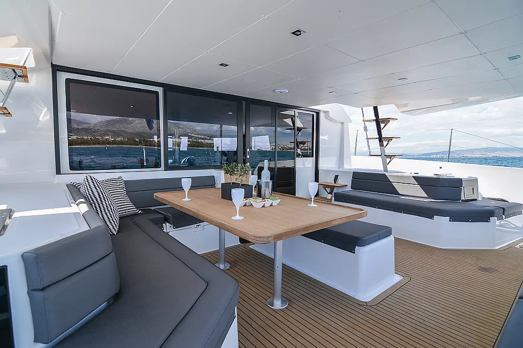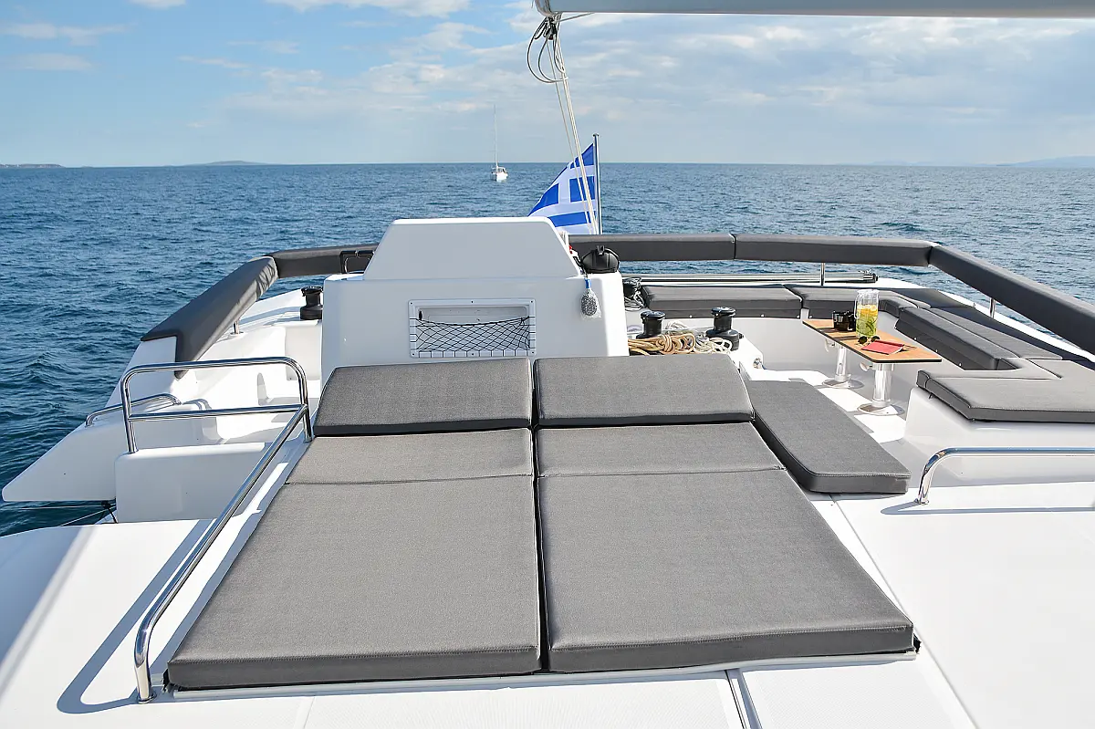 Флайбридж , Гриль в кокпите , Холодильник , Кофеварка , Генератор , Опреснитель морской воды , Инвертор , Бимини , Подвесной мотор , Динги , Кондиционер , Подушки в кокпите , Динамики в кокпите , Тиковый кокпит , Wi-Fi и Интернет