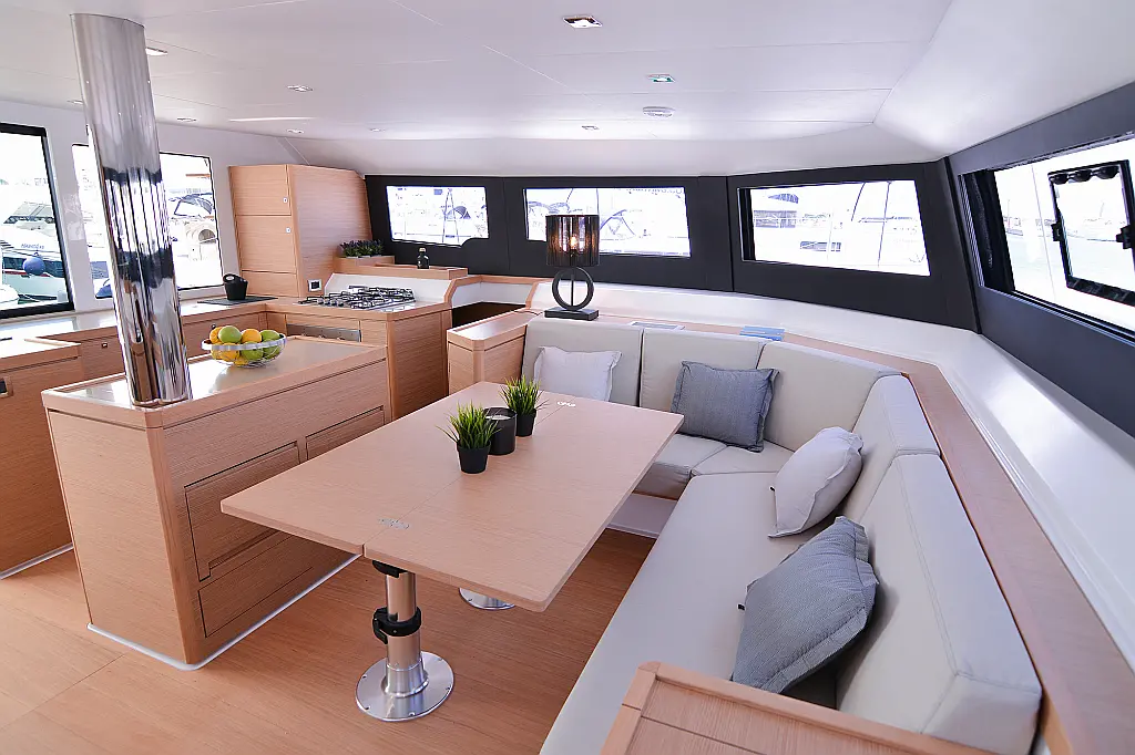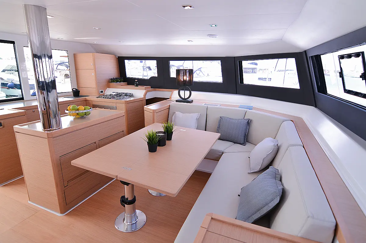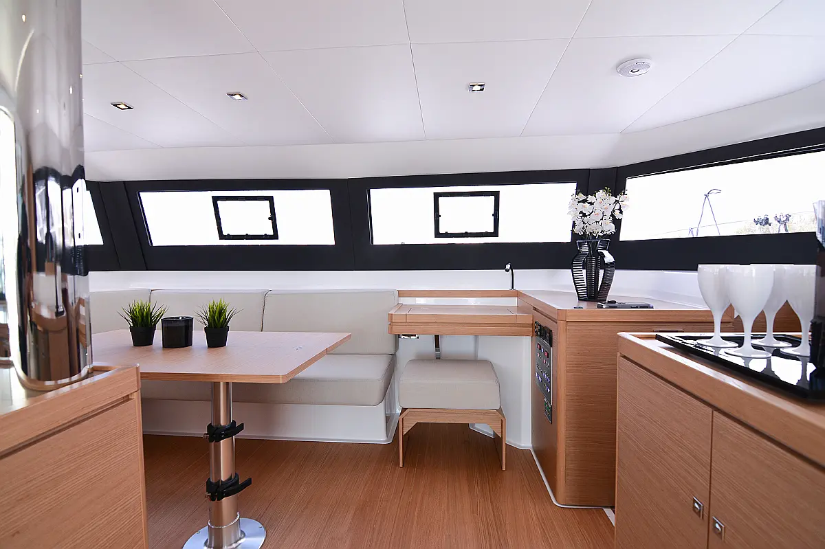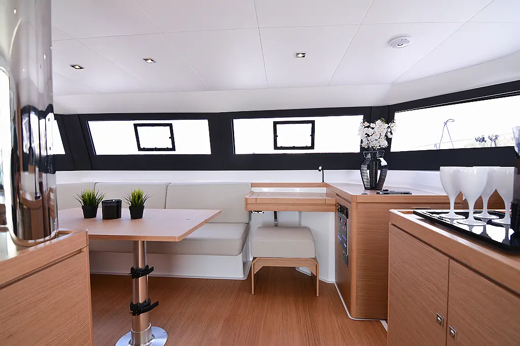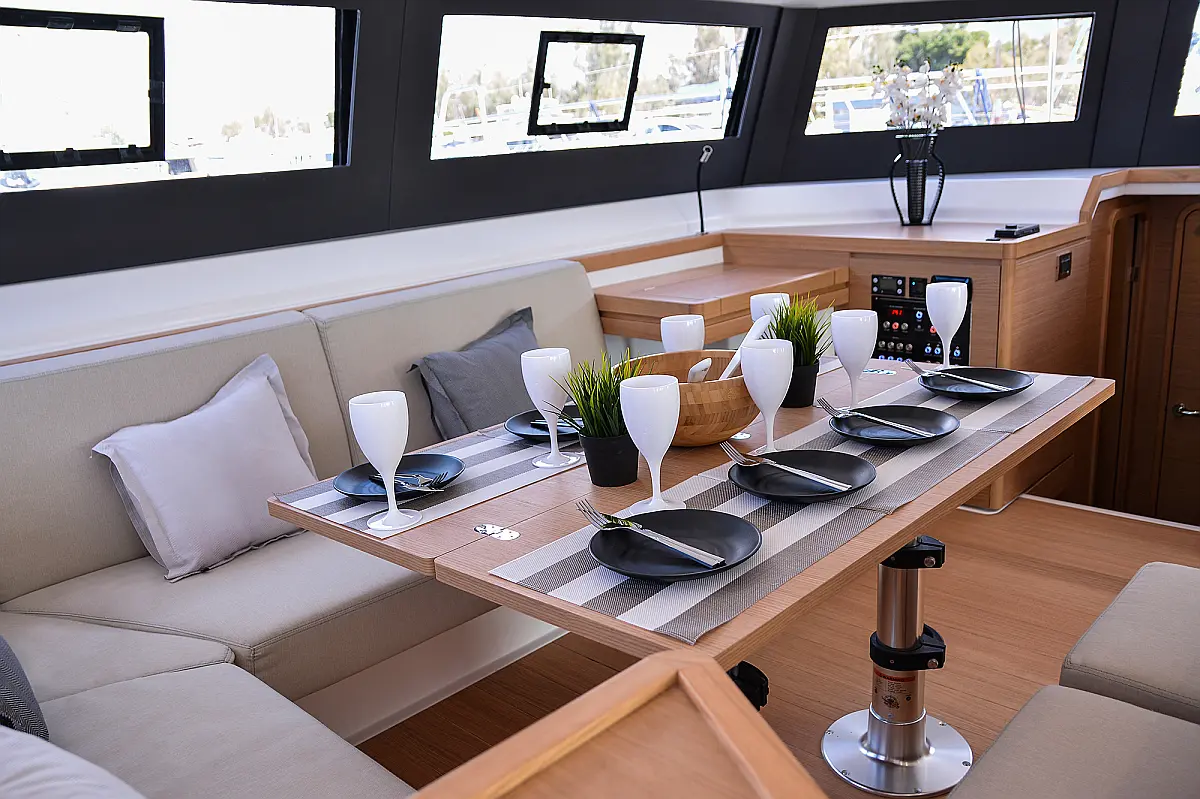 Флайбридж , Гриль в кокпите , Холодильник , Кофеварка , Генератор , Опреснитель морской воды , Инвертор , Бимини , Подвесной мотор , Динги , Кондиционер , Подушки в кокпите , Динамики в кокпите , Тиковый кокпит , Wi-Fi и Интернет