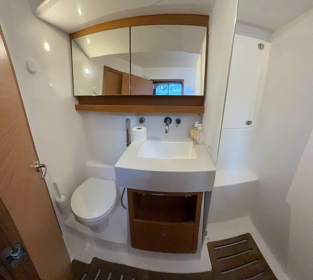 Кондиционер , Бимини , Электрический туалет , Генератор , Спрейхуд , Подушки в кокпите , Кофеварка , Динги