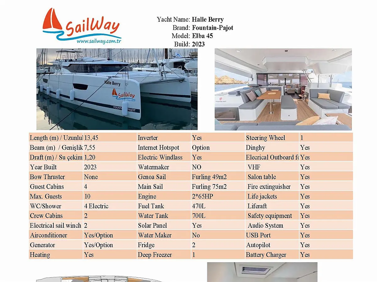 Генератор , Солнечные панели , Подвесной мотор , Холодильник , Динги , Инвертор , Электрический туалет , Отопление , Электрические лебедки , Кондиционер
