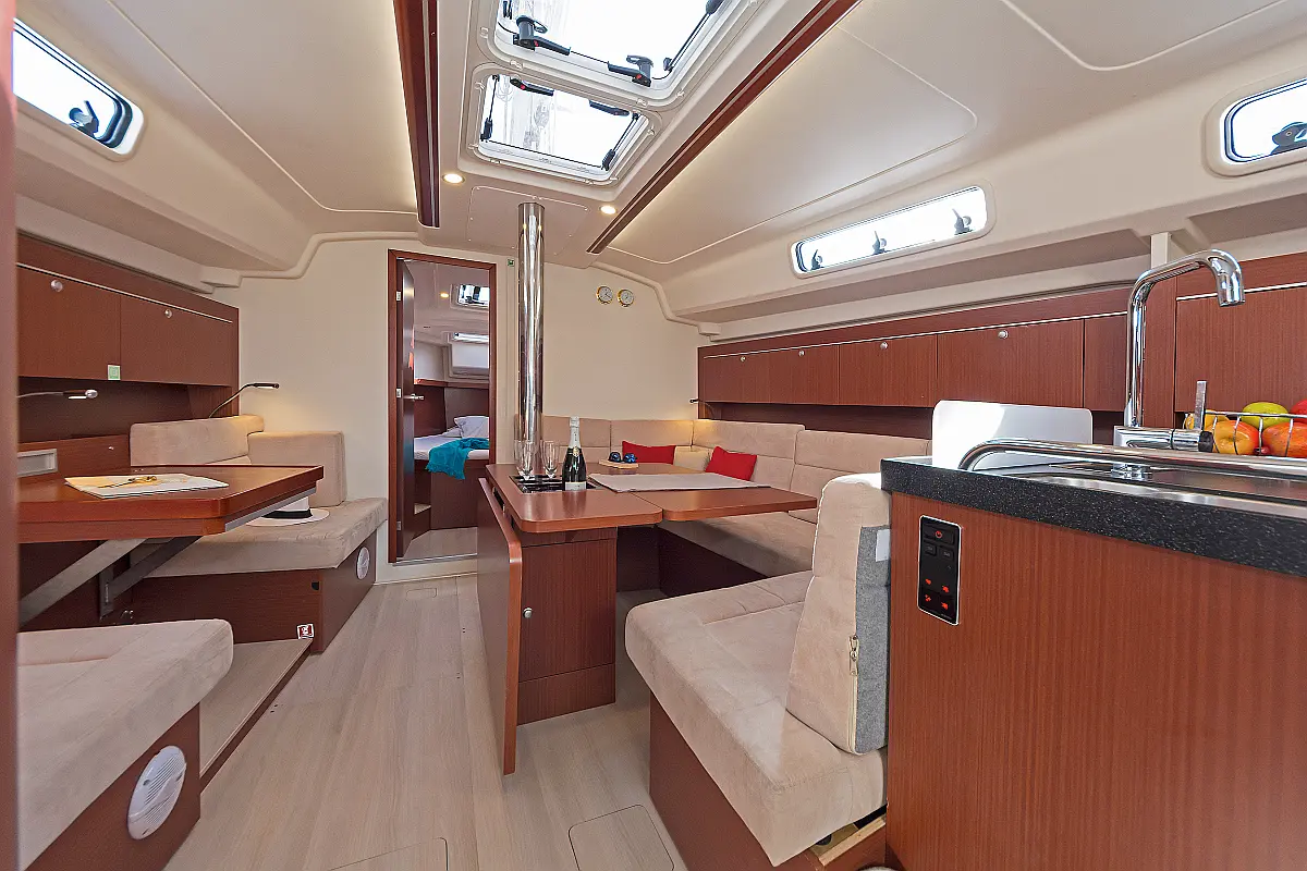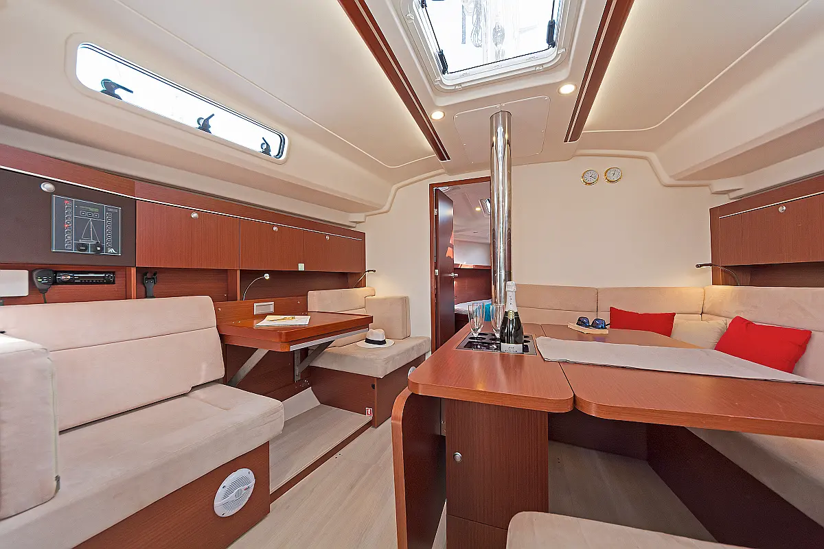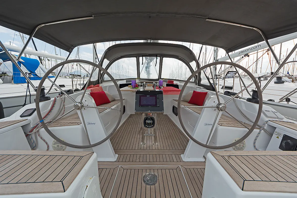 Спрейхуд , Бимини , Динги , Электрический туалет , Холодильник , Подушки в кокпите , Солнечные панели , Динамики в кокпите