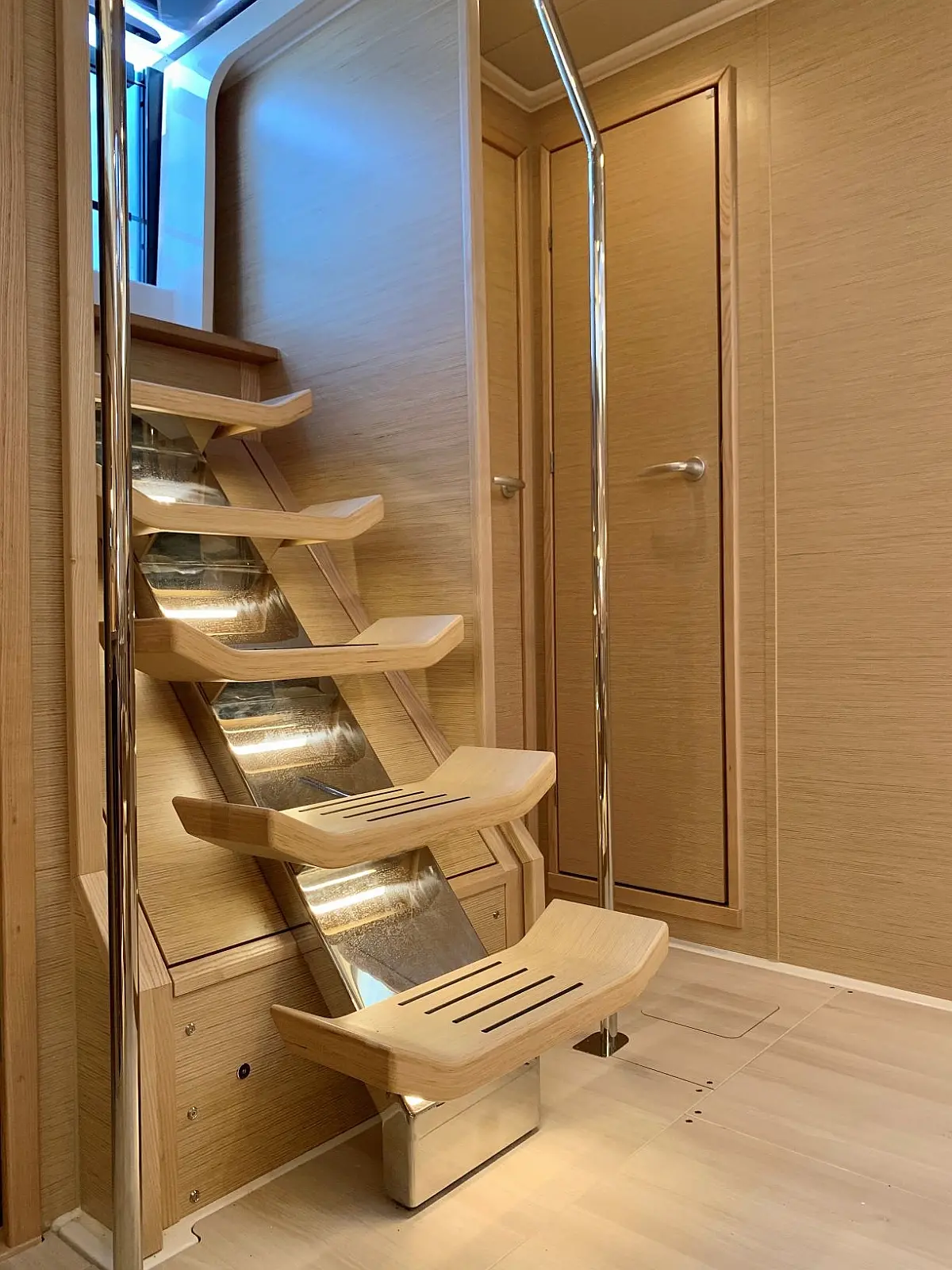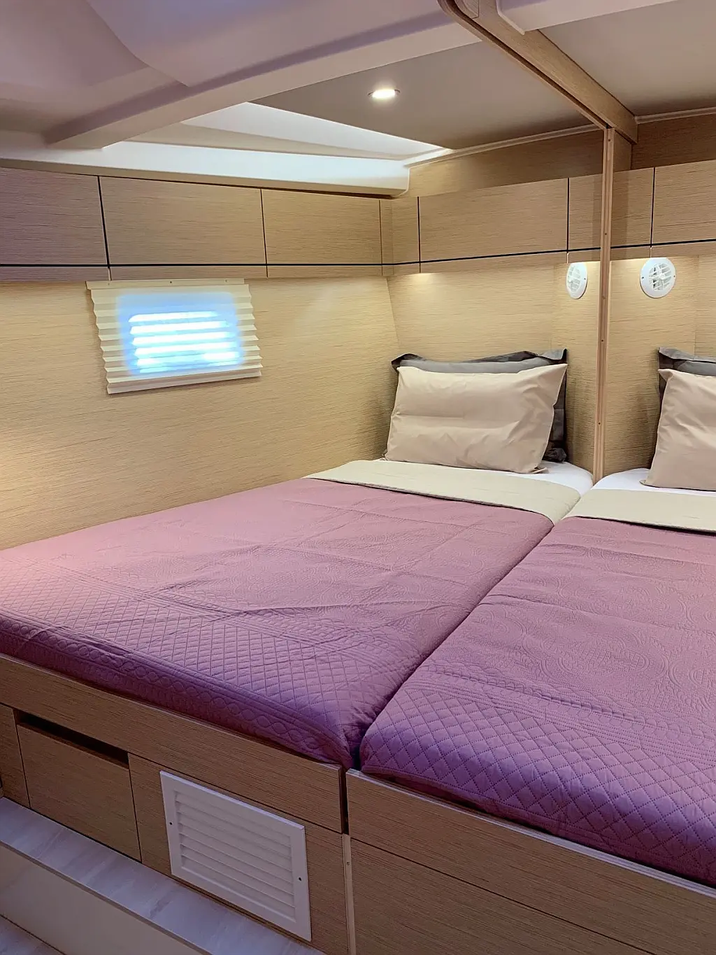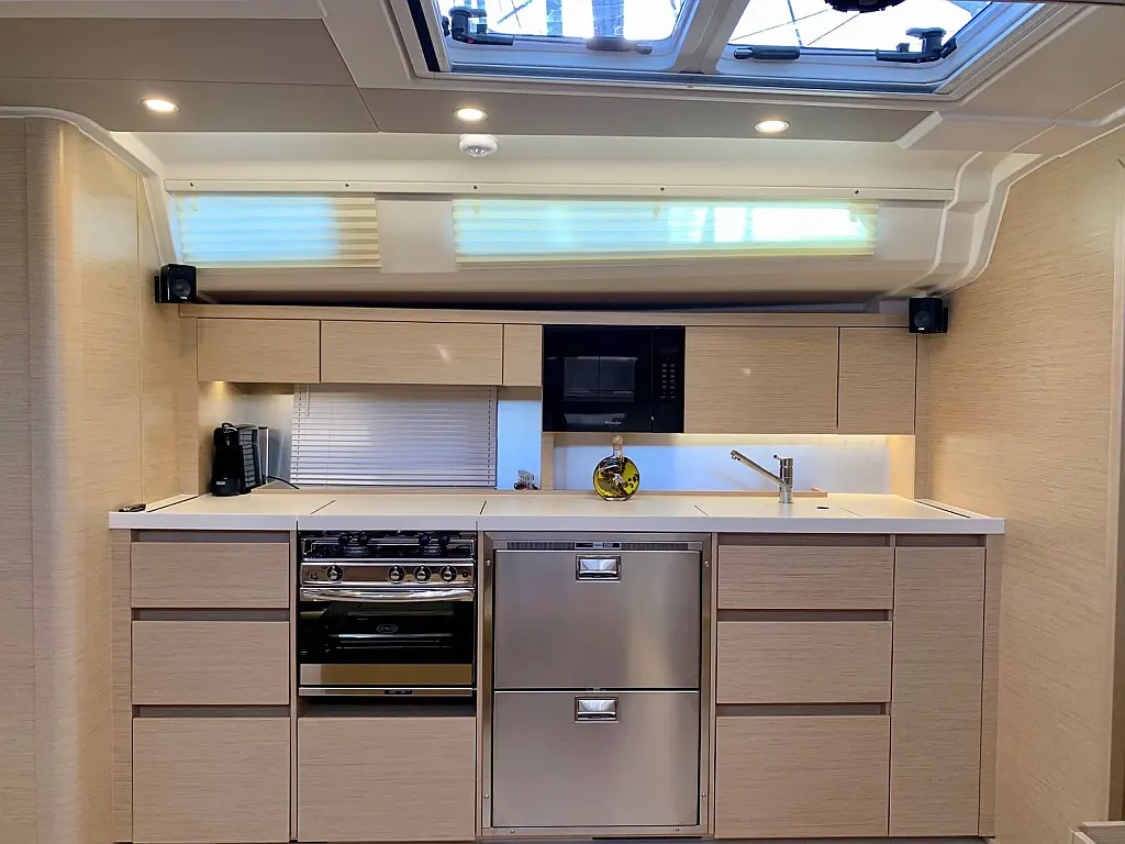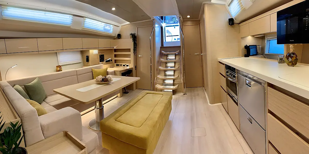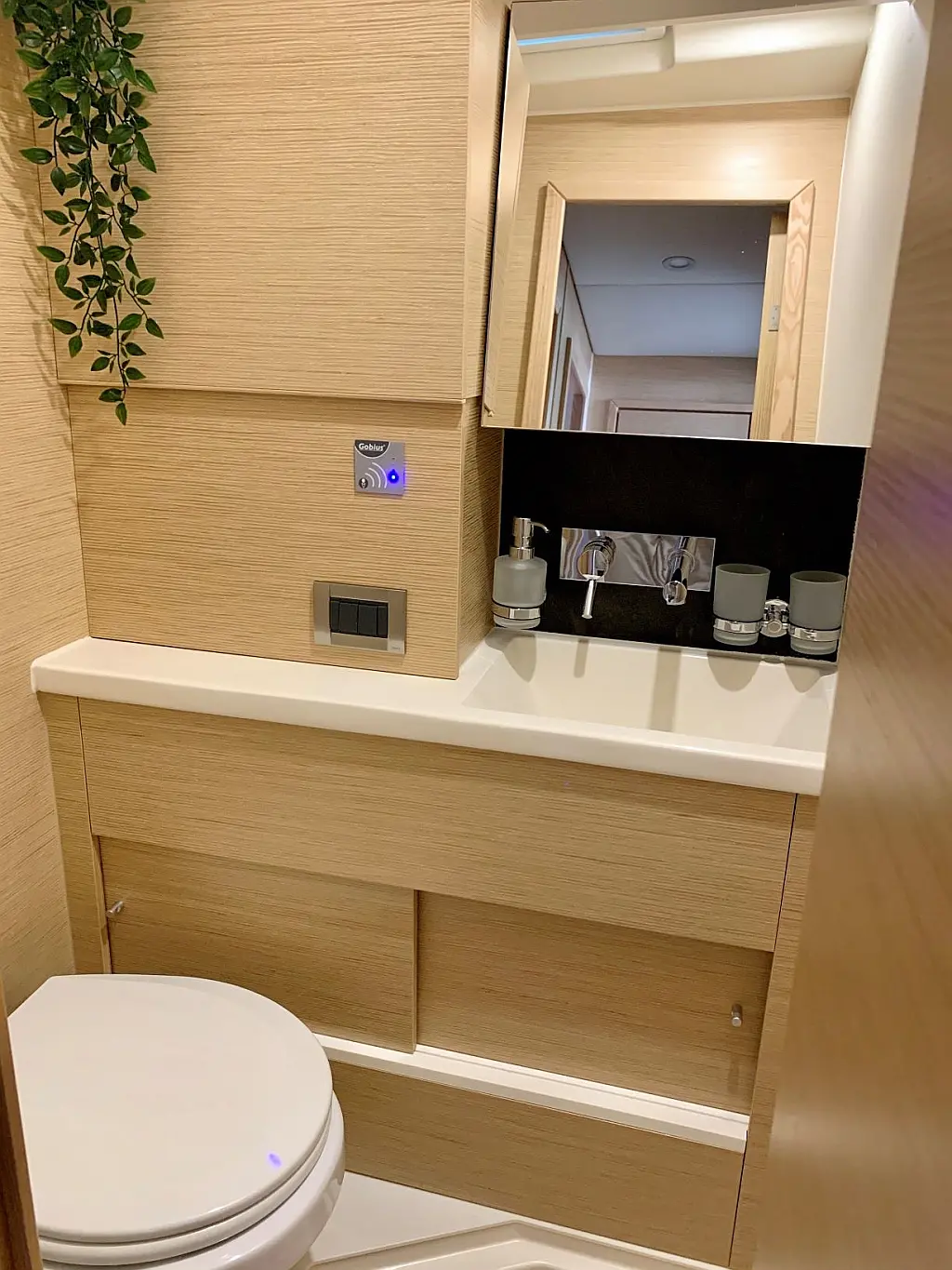 Кондиционер , Бимини , Генератор , Спрейхуд , Электрические лебедки , Динги , Подвесной мотор , Подушки в кокпите , Гриль в кокпите , Холодильник , Электрический туалет , Инвертор , Опреснитель морской воды , Wi-Fi и Интернет , Кофеварка , Сточный бак , Ледогенератор