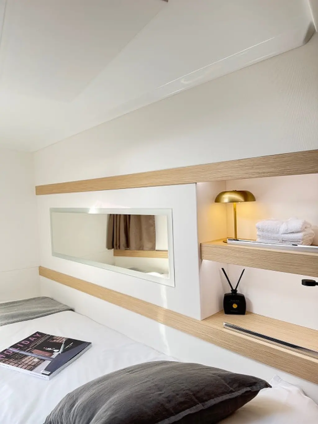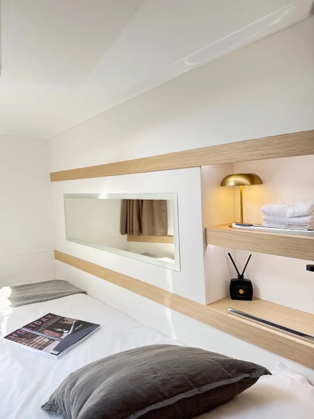 Кондиционер , Динги , Электрические лебедки , Генератор , Холодильник , Тиковая палуба , Опреснитель морской воды