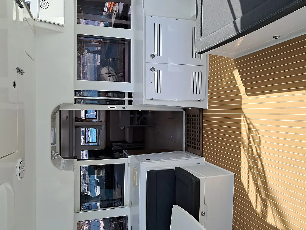 Бимини , Подушки в кокпите , Динги , Электрические лебедки , Электрический туалет , Кофеварка , Флайбридж , Холодильник , Инвертор , Опреснитель морской воды