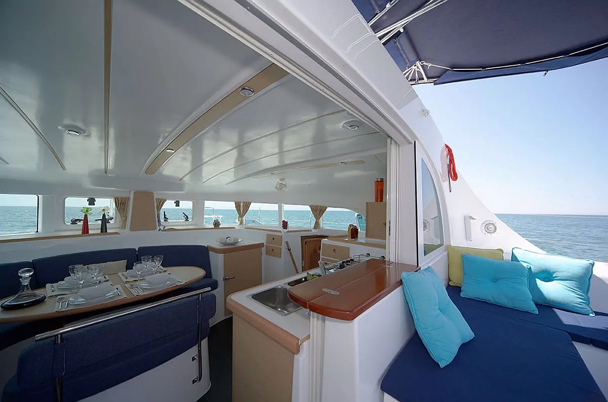 Гриль в кокпите , Бимини , Подушки в кокпите , Опреснитель морской воды , Холодильник , Подвесной мотор , Солнечные панели